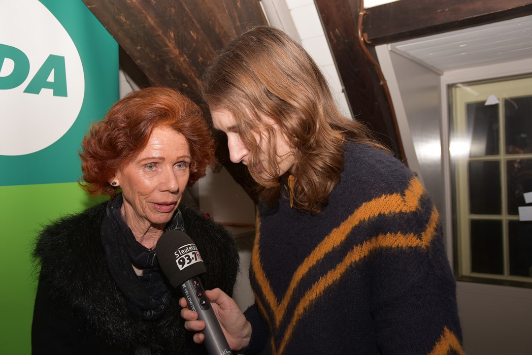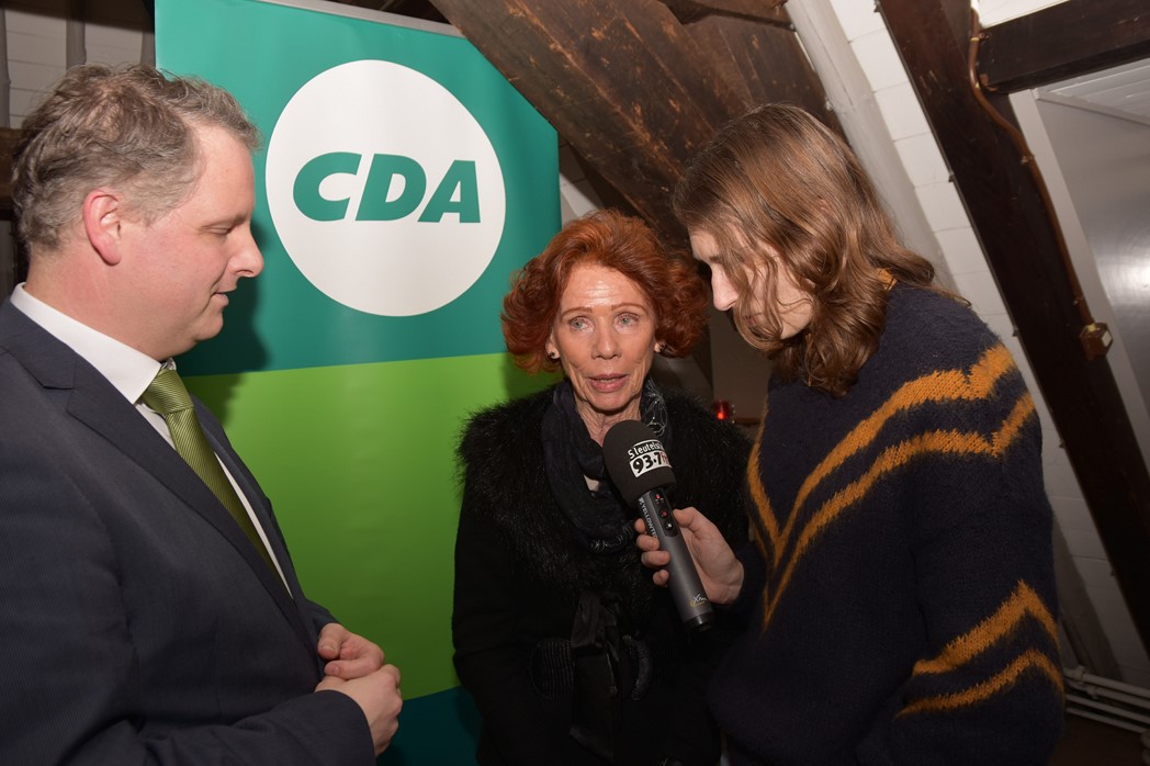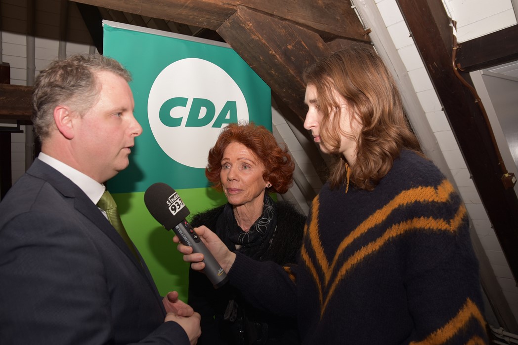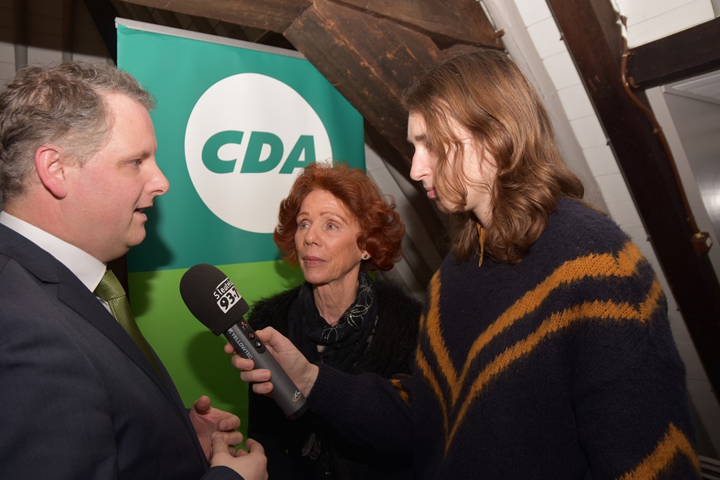Reanne van Kleef in gesprek met fractievoorzitter Joost Bleijie van CDA Leiden en vrijwilligerscoördinator Willeke Wieman van Zorgcentrum Roomburgh over de Walenkamp-Award.