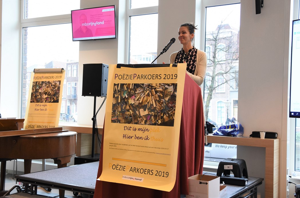 Een gedicht is een taalconcentraat, elke punt telt. Voor Harry Steenvoorden, docent Nederlands aan het mboRijnland, een goede reden om voor de vierde keer het PoëzieParkoers uit te zetten. Studenten gezondheidszorg en welzijn kregen onder andere een workshop van stadsdichter Marianne van Velzen en gingen vooral zelf aan de slag met het thema: Dit is mijn plek, hier ben ik thuis.