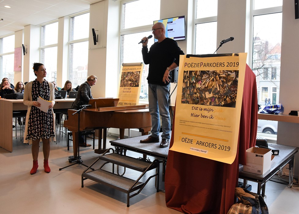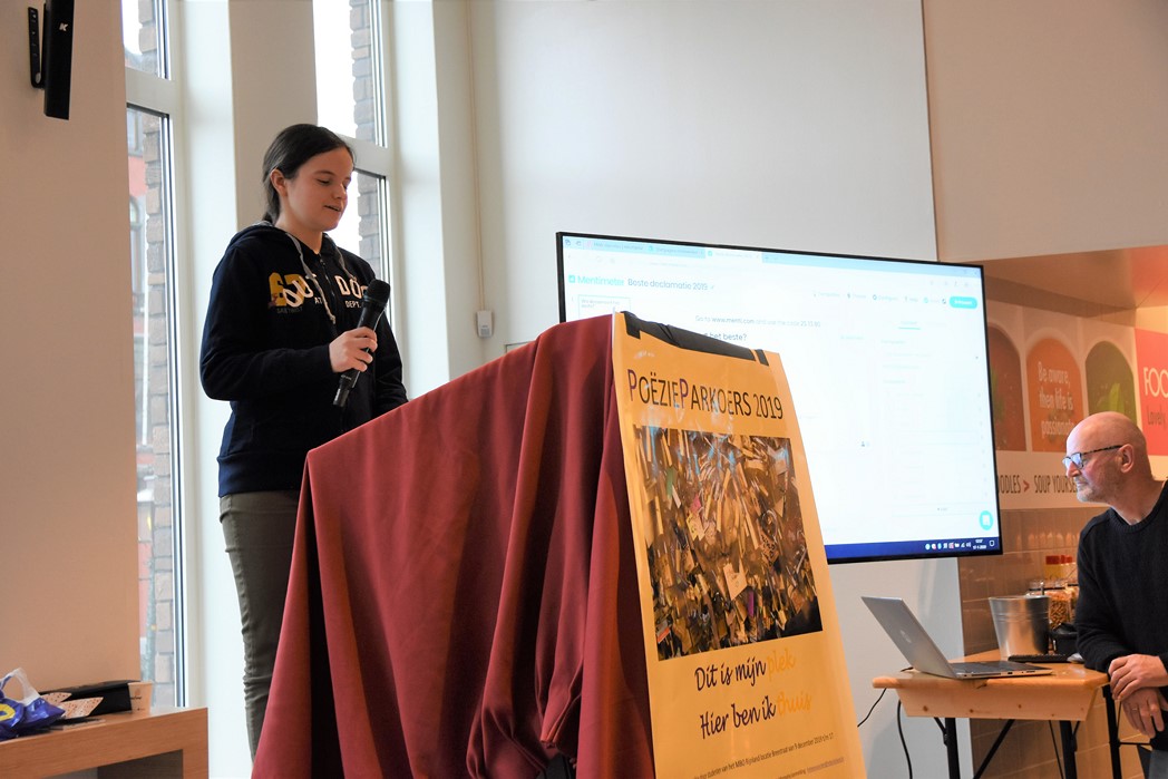 Vrijdag 17 januari werd het Poëzeparkoers feestelijk afgesloten met een declamatiewedstrijd en de bekendmaking van de jury- en publieksprijs voor de 29 deelnemende studenten. Ieder vulde het thema op zijn of haar eigen wijze in. Volgens Harry Steenvoorden is het niet eens zo heel moeilijk om studenten aan het dichten te krijgen. “In het begin is er natuurlijk wel wat weerstand, en dan zeggen ze: wat hebben we daar aan? Maar doordat we er over blijven praten komt er op een gegeven moment een omslagpunt. Een bijna magisch moment en dan komen er uiteindelijk de mooiste gedichten uit.”