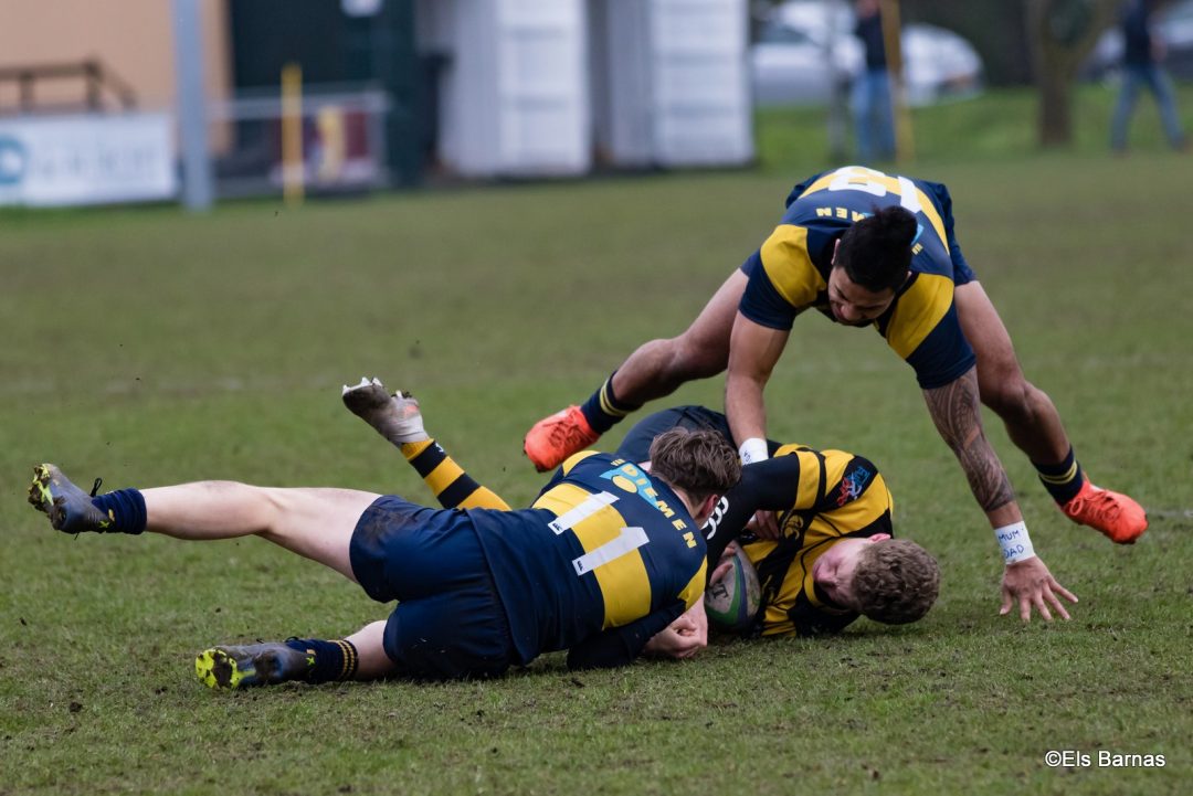 De ploegen geven elkaar weinig ruimte en dan wordt Benjamin Garcia Propato op ongeoorloofde wijze getackeld. De penalty wordt snel genomen en handig benut door Ross Bennie-Coulson. Koenen bepaalt, met een geslaagde conversie, de ruststand op 26-10.