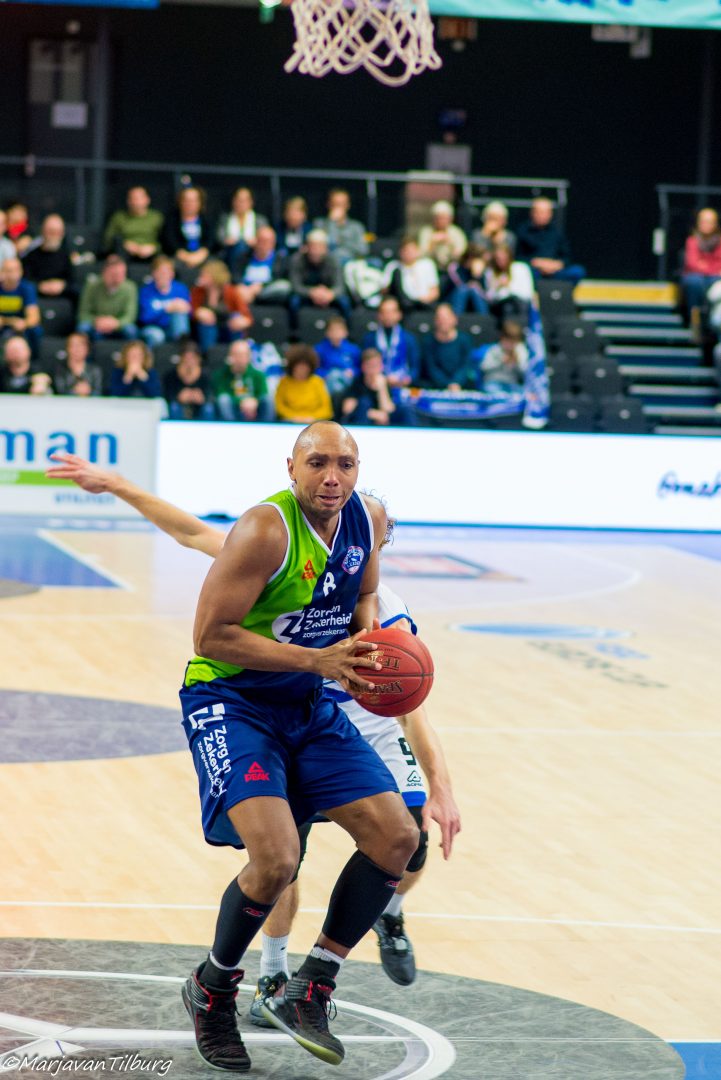 In het tweede bedrijf kwamen de Zwollenaren naast Zorg en Zekerheid Leiden te staan (18-18, 25-25), maar de Leidse ploeg barstte niet. Braxton Huggins kwam in dit kwart door met zeven punten. In de laatste drie minuten voor de pauze sloeg Zorg en Zekerheid Leiden opnieuw een gaatje. Door een driepunter van Huggins, een tip-in van Pasalic en een steal plus dunk van De Jong werd het 28-38. Ralf de Pagter deed nog wat terug met twee scores, maar het was Pasalic die in de buzzer met een drietje de ruststand op 32-41 bracht. Een voorsprong van negen punten, nog zeven te gaan om een verlenging af te dwingen. Minstens zo prettig was het feit dat Nuni Omot weer inzetbaar was. Voor de pauze was hij vooral nog zoekende, wat niet zo vreemd was als je enkele weken aan de kant moet blijven zitten met een blessure. Later in het duel zou de Keniaan nog een opvallende rol gaan spelen.