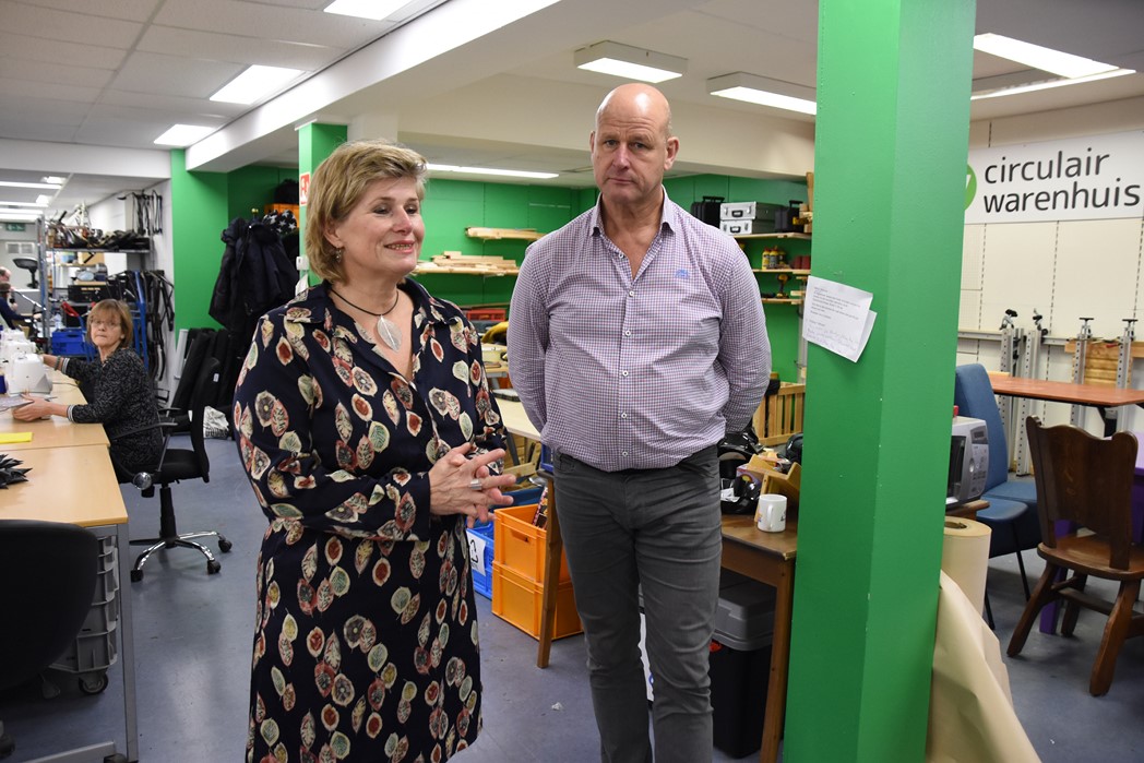 In Leiden is de week gestart met een werkbezoek van wethouder Werk, Inkomen, Economie & Cultuur Yvonne van Delft (GroenLinks) aan het Circulair Warenhuis in de Haarlemmerstraat, waar ze werd ontvangen door de medewerkers en door Ron Praag (directeur stichting Kringloopbedrijf Het Warenhuis). Van Delft herhaalde de ambities van Leiden om ook circulair te gaan werken. In 2030 moeten we als Leiden een heel eind op streek zijn. En zoiets als een Circulair Warenhuis klinkt dan als een mooie stap.