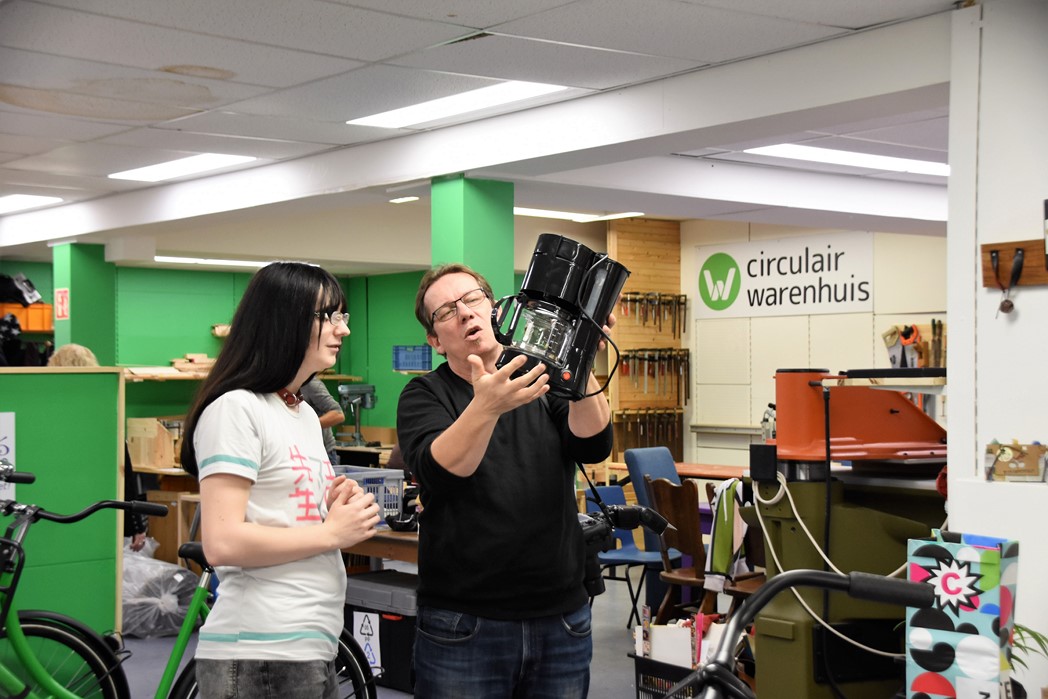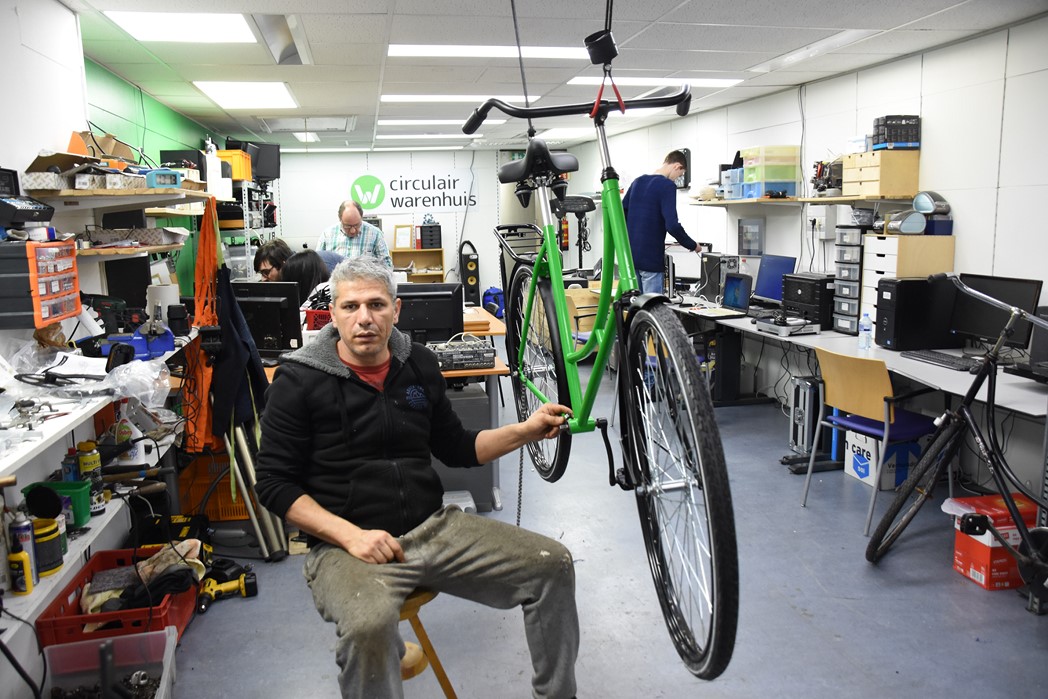 Daaraan merk je dat het Circulair Warenhuis wel degelijk serieuze stappen richting dat circulaire zet. Er worden geen fietsen verhuurd, maar mobiliteit. De fiets komt uiteindelijk weer terug. En mocht u er iets kopen; ook dan komt u in aanraking met circulair denken, want u krijgt een terugkoopgarantie. Het Circulair Warenhuis koopt tezijnertijd uw aankoop terug voor 20% van de aankoopwaarde.
