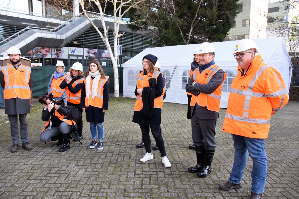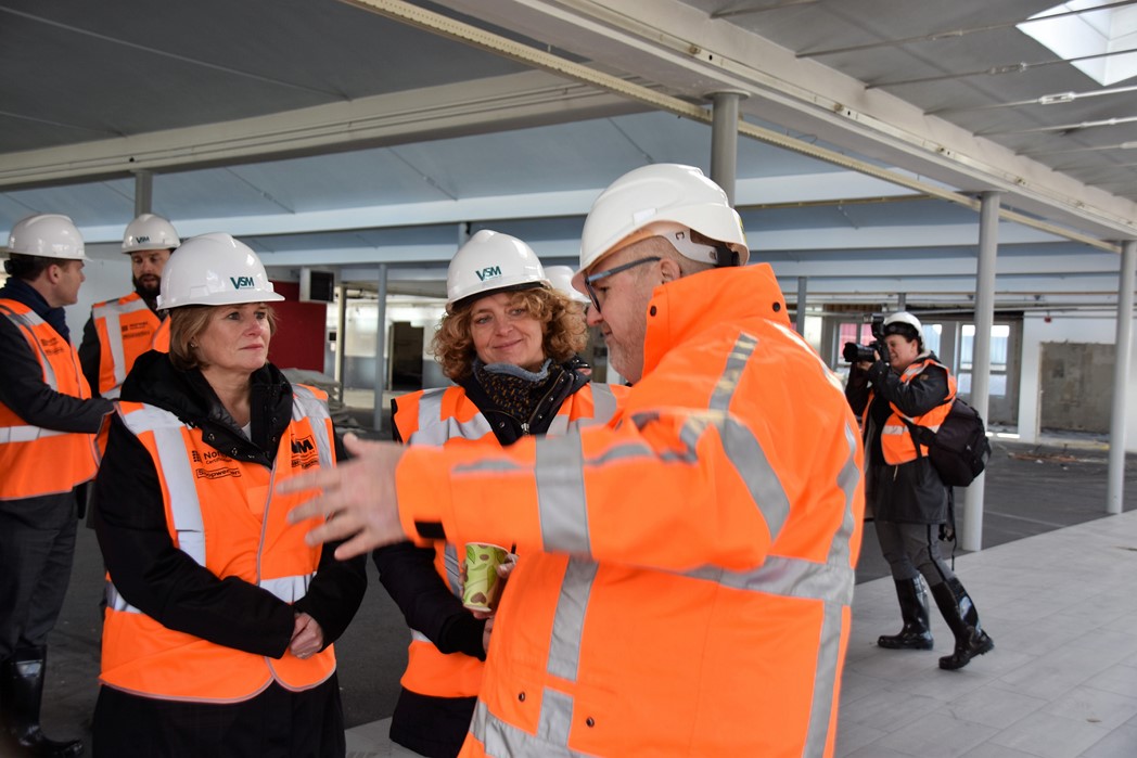 Kim van Niekerk in gesprek met ambassadeur Jacqueline Cramer en wethouder Yvonne van Delft over Betonakkoord Leiden.