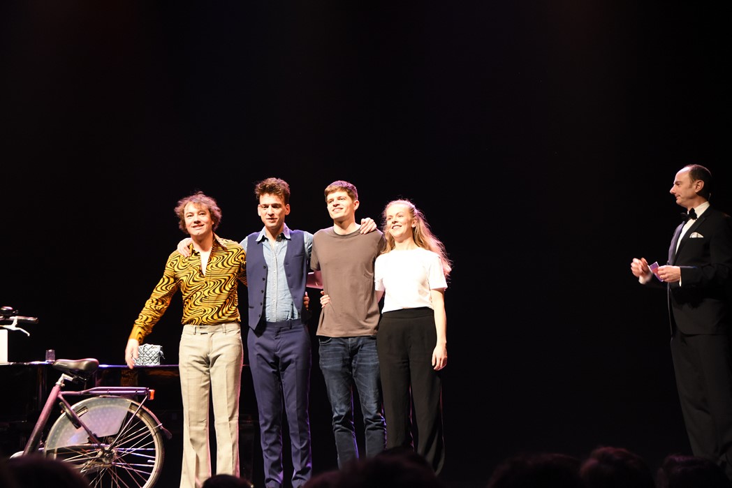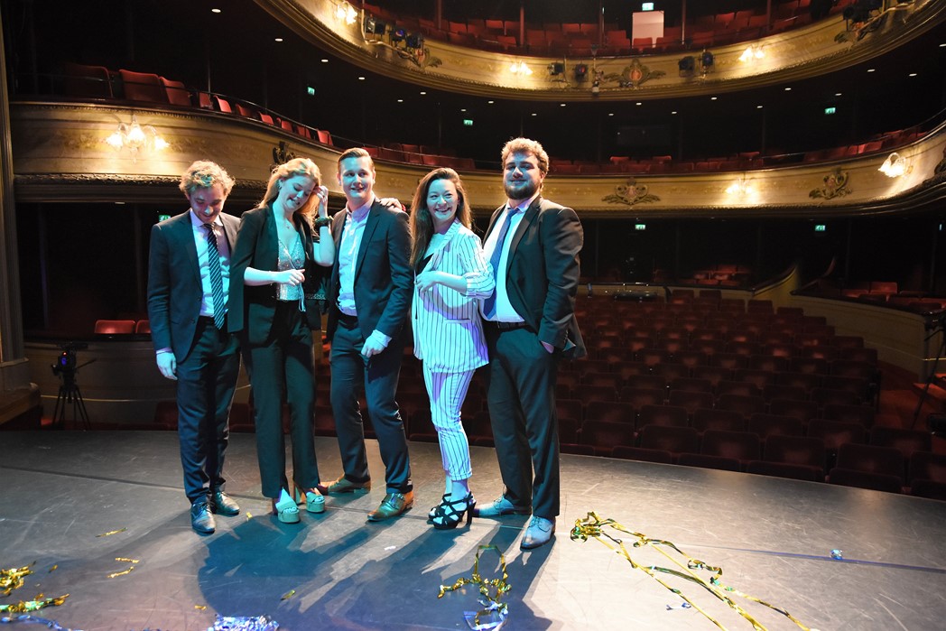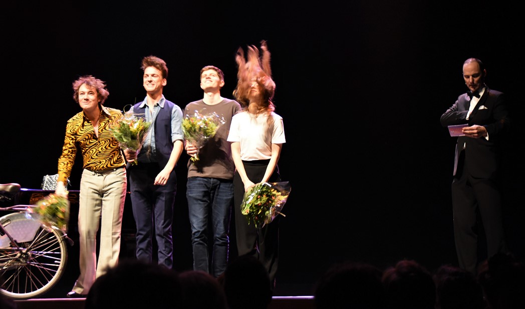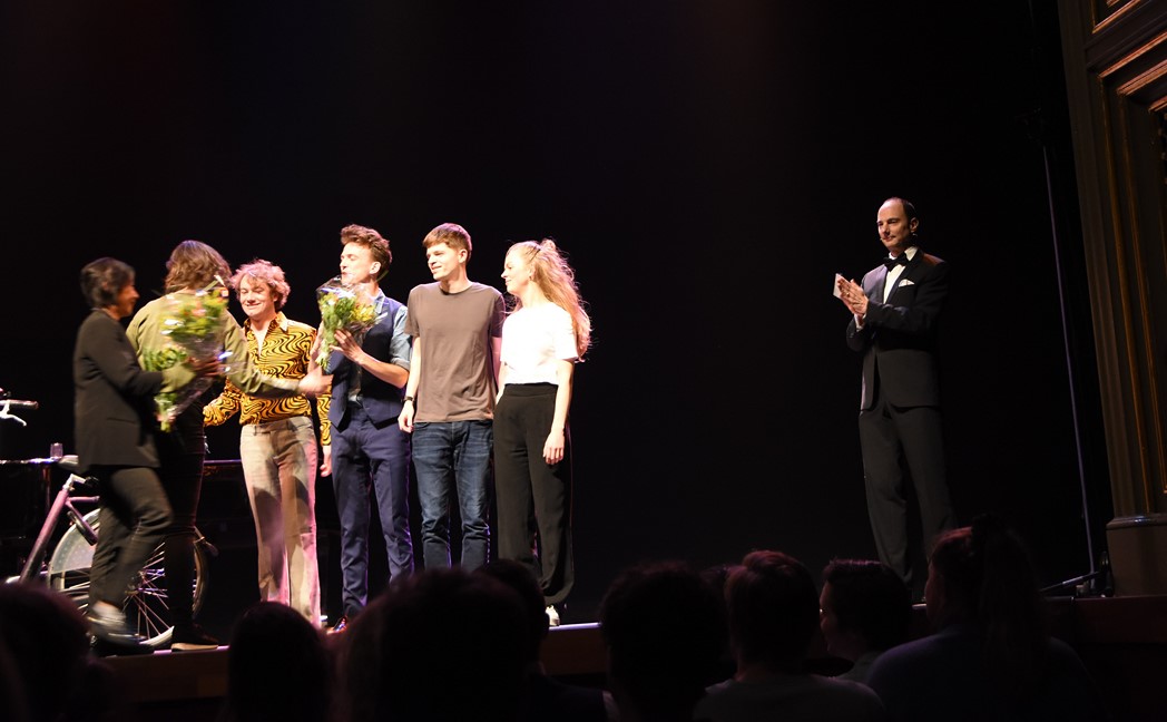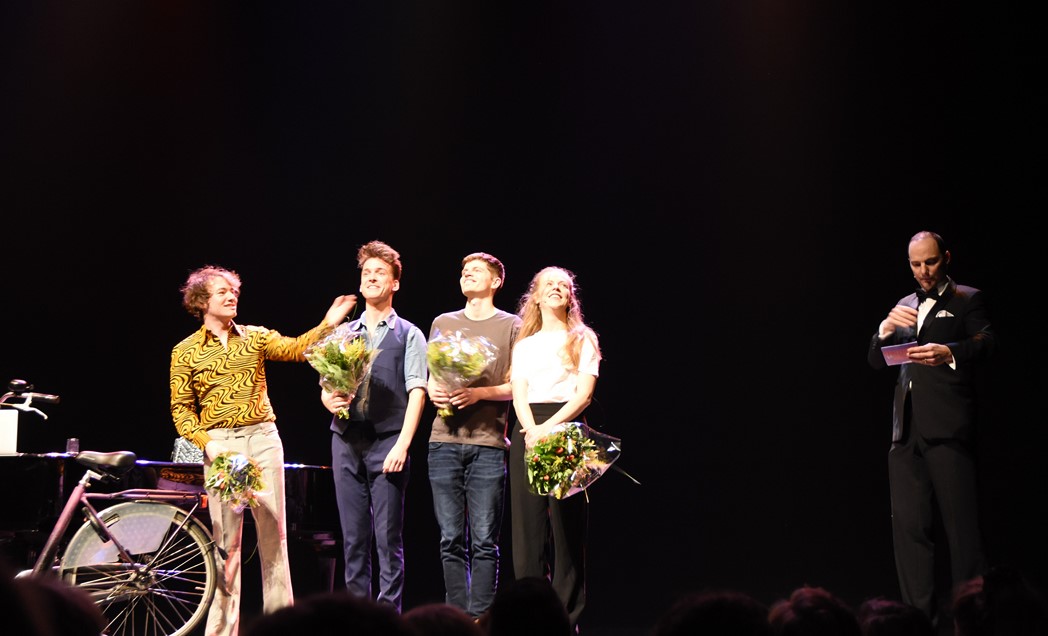 Gistermiddag schoven de finalisten in de Leidse Schouwburg ook al aan bij het radioprogramma Spijkers met Koppen. (Foto: Chris de Waard).