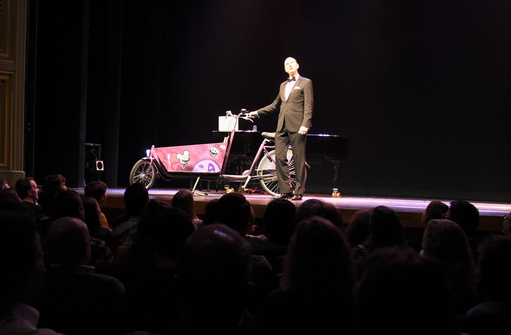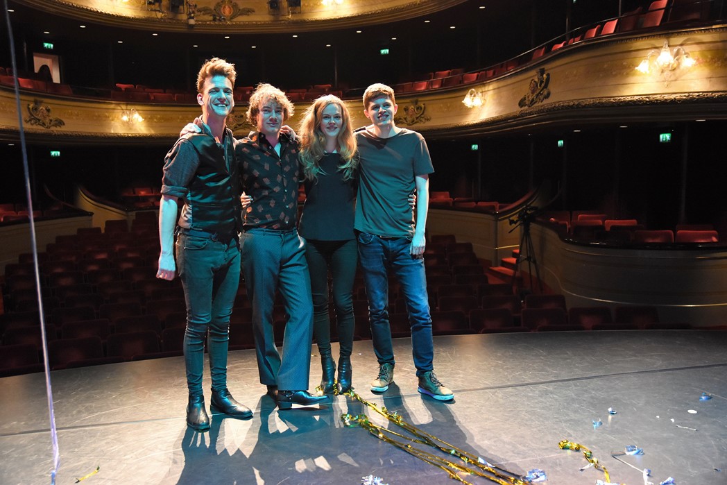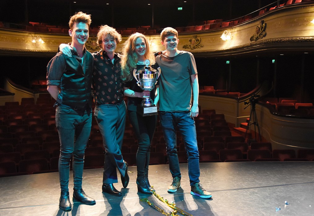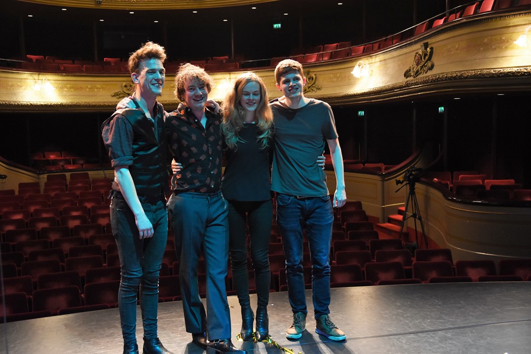 Gistermiddag schoven de finalisten in de Leidse Schouwburg ook al aan bij het radioprogramma Spijkers met Koppen. (Foto: Chris de Waard).