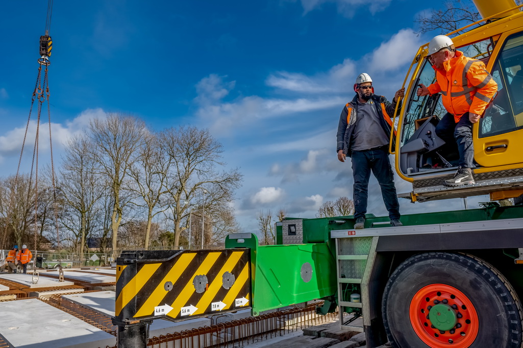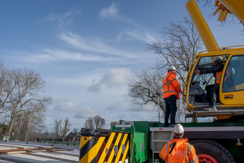 Het laatste verbindingsstuk van de Driegatenbrug in Leiderdorp werd vanmiddag door wethouders Daan Binnendijk en Rik van Woudenberg geplaatst. De brug bleek er bij een technische inspectie in 2018 slecht aan toe te zijn en moest worden vervangen. Samen met omwonenden en ondernemers is er een plan gemaakt. Dat resulteert nu in een hogere en sterkere brug, die buiten het zomerseizoen om is gebouwd. Medio april is de brug helemaal af. Dan moet hij honderd jaar meegaan.