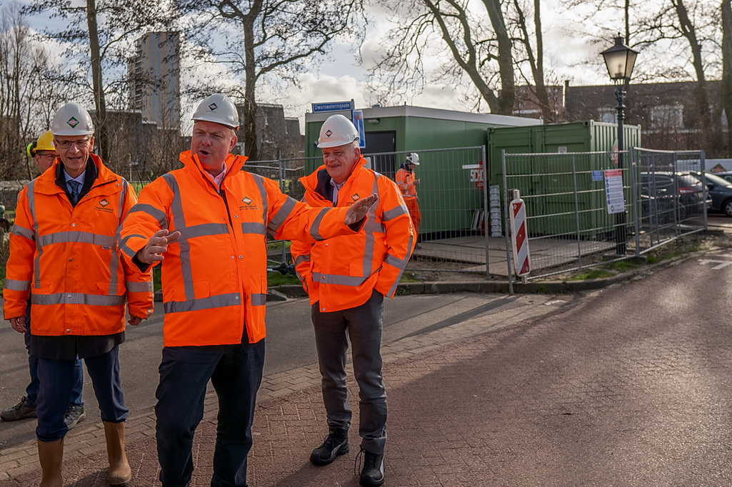 Wethouders Daan Binnendijk en Rik van Woudenberg over Driegatenbrug in Leiderdorp.