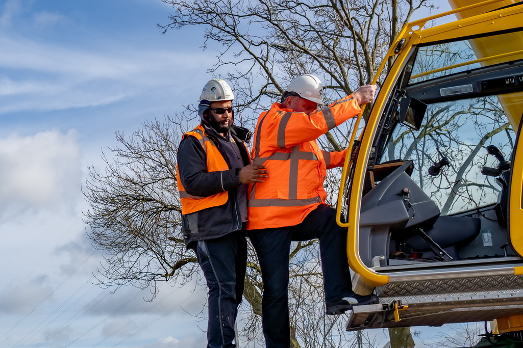 Reanne van Kleef in gesprek met projectleider en directeur Rijk Vinke van aannemersbedrijf Gebr. Schouls over Driegatenbrug in Leiderdorp.