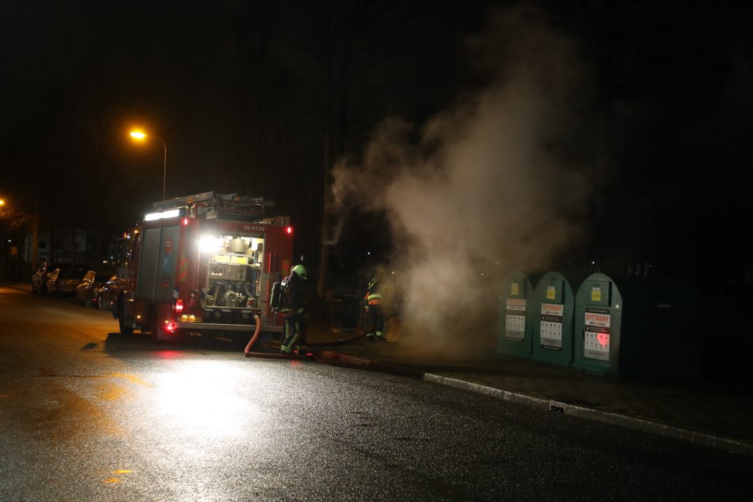 Aan de Hofbrouckerlaan in Oegstgeest werd gisteravond rond 20.45 uur een flinke rookontwikkeling waargenomen die uit een van de ondergrondse containers kwam. Daarop werd de brandweer ingeschakeld die de brandende container vol liet lopen met water.