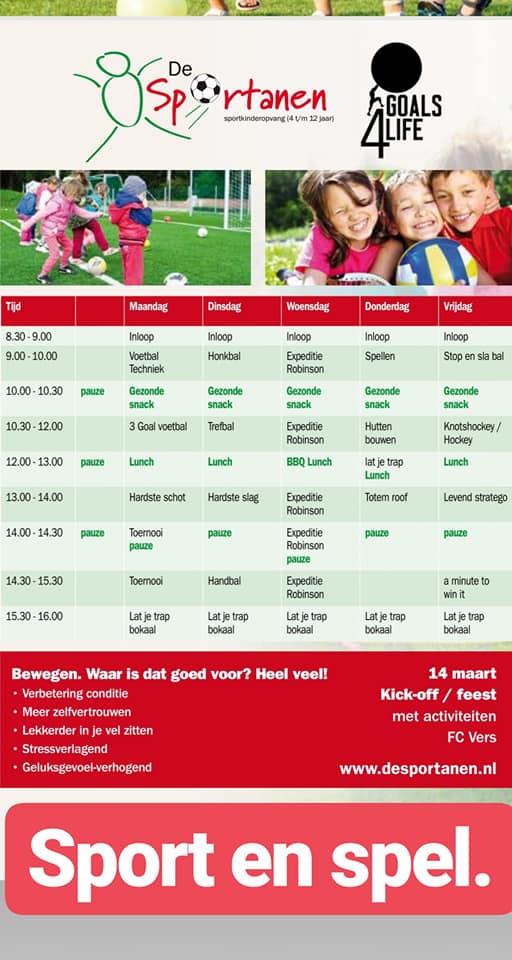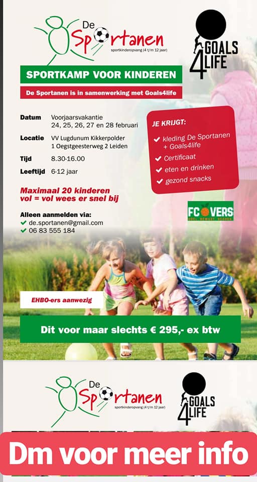 Goals4Life en sportkinderopvang De Sportanen organiseren van 24 tot en met 28 februari een sportkamp op het terrein van voetbalvereniging Lugdunum. Kinderen van vier tot en met 12 jaar kunnen de hele week onder begeleiding verschillende sporten en spellen doen. Met het sportkamp willen de twee organisaties kinderen stimuleren om meer te bewegen.