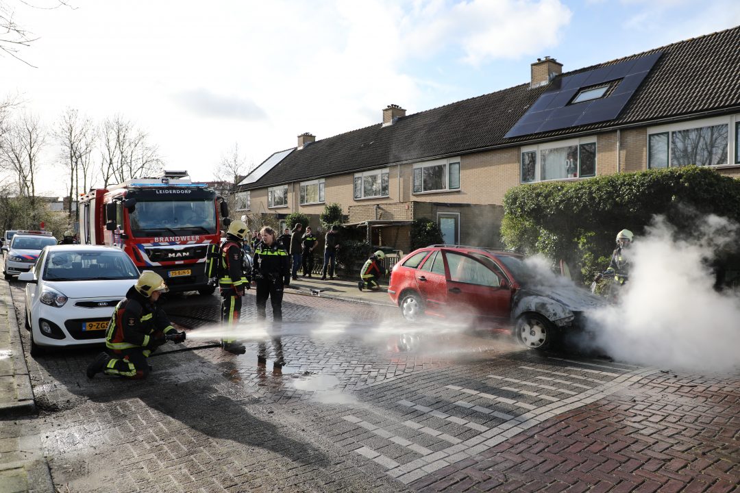 Een automobilist kreeg rond 15.15 uur de schrik van zijn leven toen hij in de Marjoleintuin in Leiderdorp zijn auto stapte en zijn voertuig startte. De auto begon te roken en vloog spontaan in brand. De brandweer werd gealarmeerd en bluste het voertuig. Er kon niet worden voorkomen dat er flinke schade ontstond.