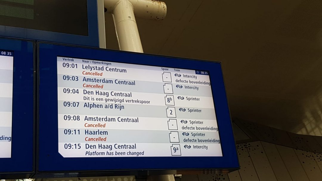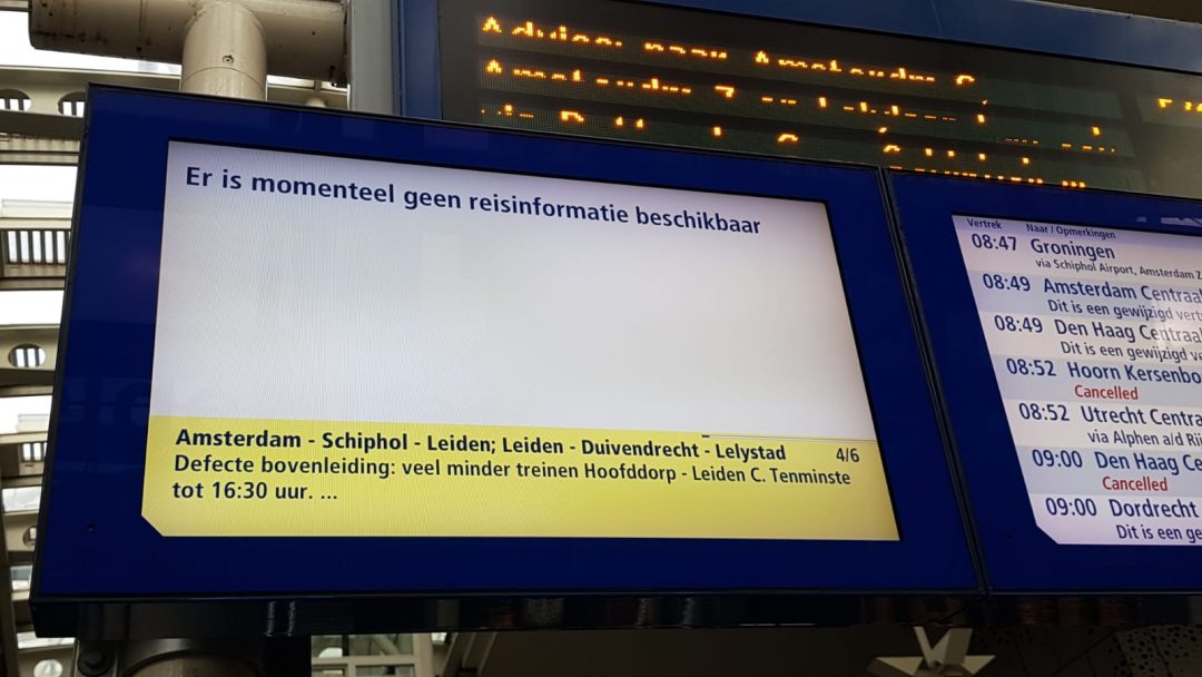 Tussen Hoofddorp en Leiden Centraal rijden vandaag veel minder treinen dan normaal. Oorzaak is een defecte bovenleiding. De NS verwacht dat herstel tot tenminste 16.30 uur gaat duren. Er rijden stopbussen tussen Leiden Centraal, Sassenheim, Nieuw Vennep en Hoofddorp. Ook het treinverkeer tussen Haarlem en Den Haag heeft te leiden onder het defect.