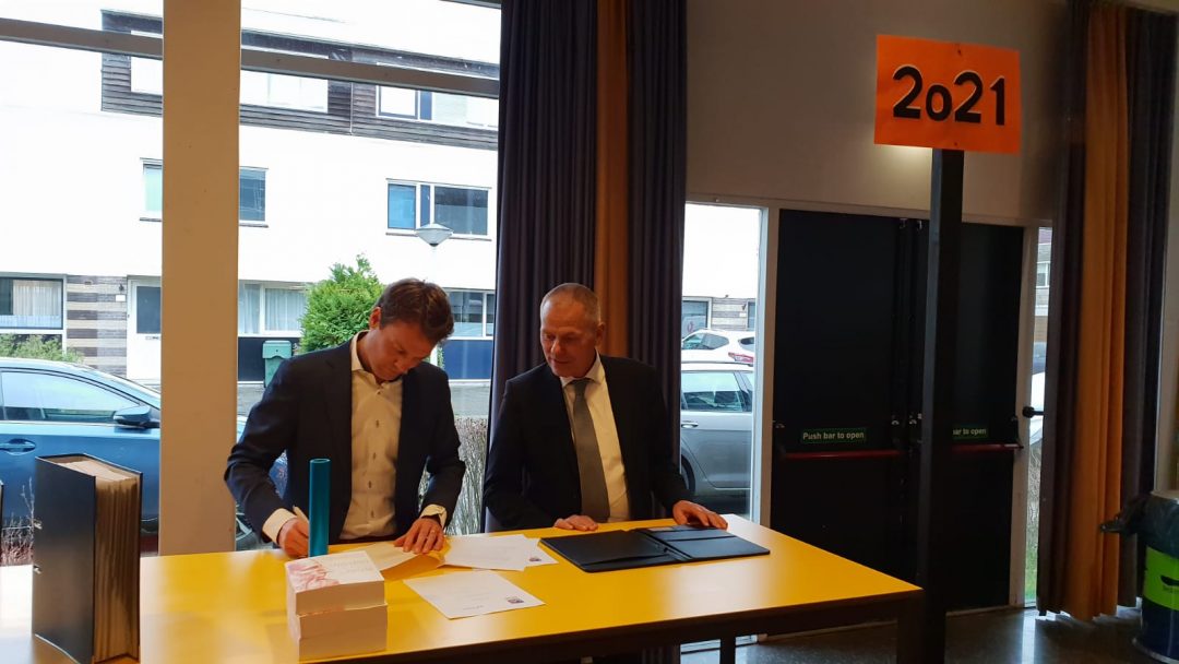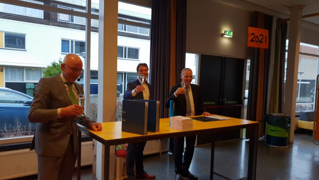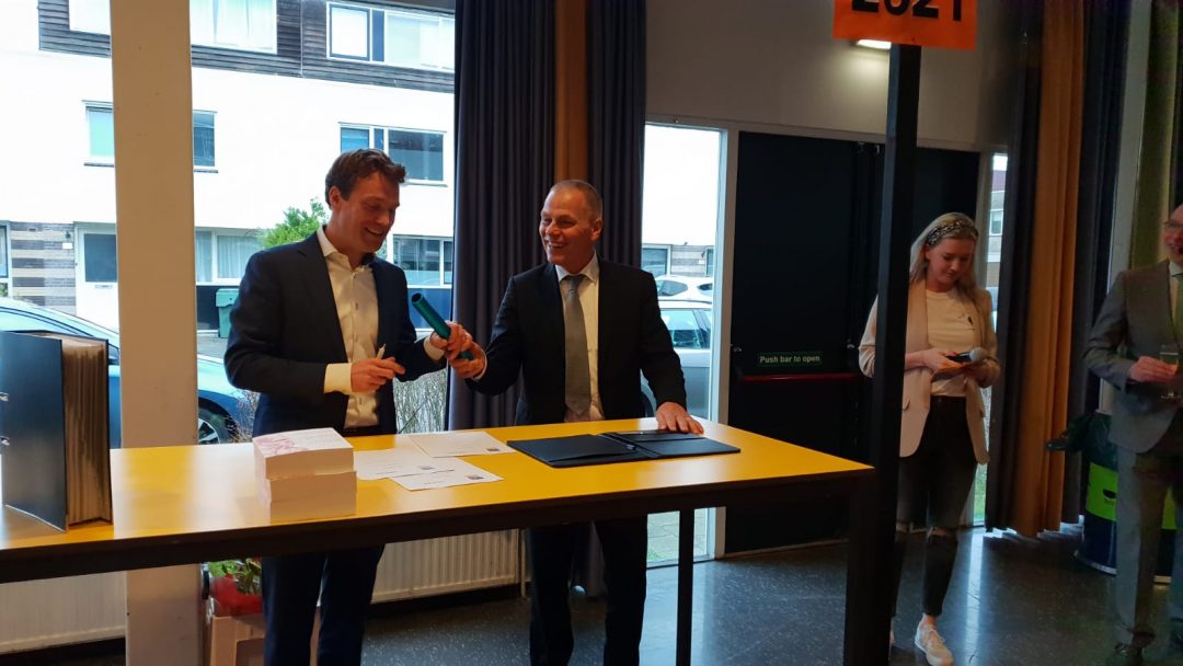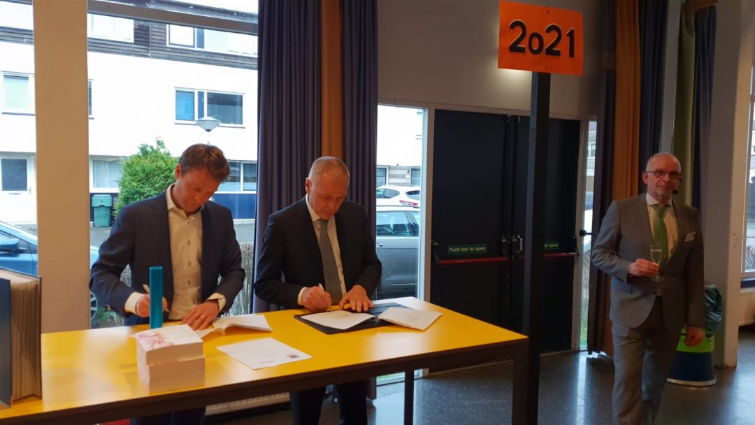 Na een slepend traject van zestien jaar is deze week het officiële startschot gegeven voor de nieuwbouw van het Leonardo College in Leiden. Wethouder Paul Dirkse, Ronald Gase van het Leonardo College en Michiel Wijnen van Zenzo maatschappelijk vastgoed tekenden de benodigde contracten. Via een symbolische estafette werd de beschikbare zestien miljoen euro doorgegeven van gemeente, naar school, naar bouwer. Het is de bedoeling dat het Leonardo College het nieuwe gebouw aan de Telderskade vanaf 1 augustus 2021 in gebruik neemt.