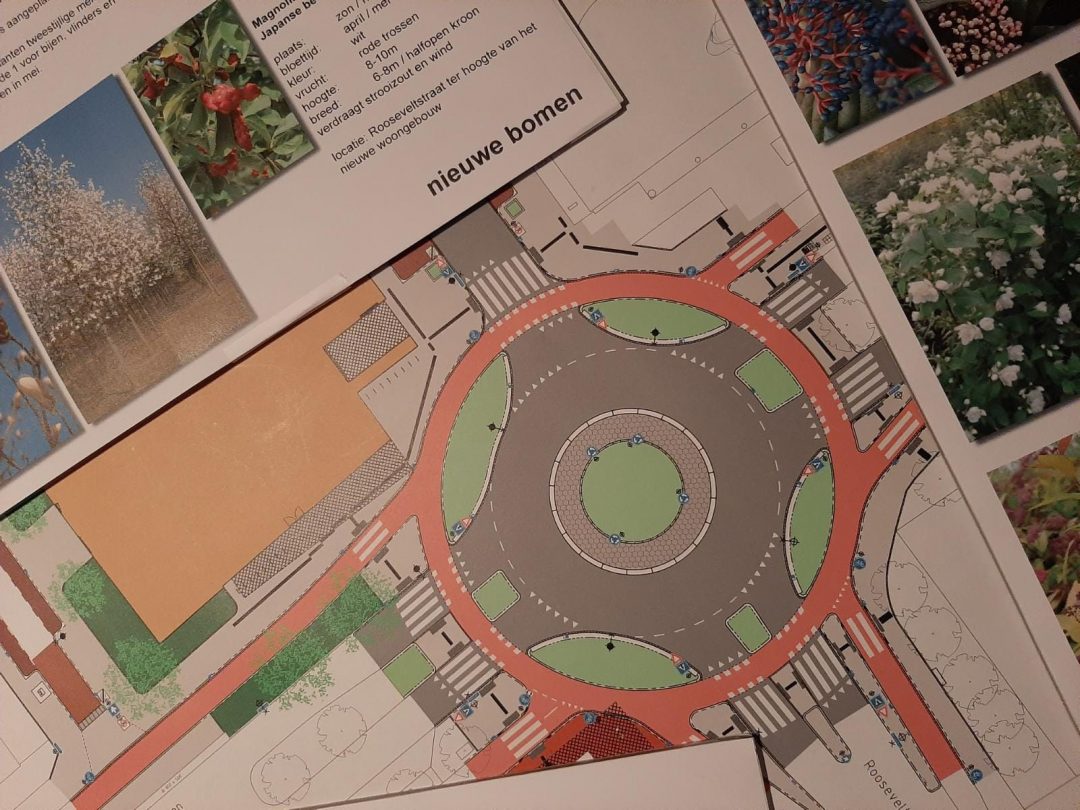 De rotonde wordt in de nieuwe situatie iets verlegd. Daardoor ontstaat meer ruimte, vooral bij de hoek waar autoverkeer vanaf de Vijf Meilaan rechtsaf de Rooseveltstraat in slaat. Daar neemt het gebouw van de LIDL supermarkt wat zicht weg, waardoor hier nogal eens aanrijdingen ontstaan tussen afslaande auto’s en langzaam verkeer.