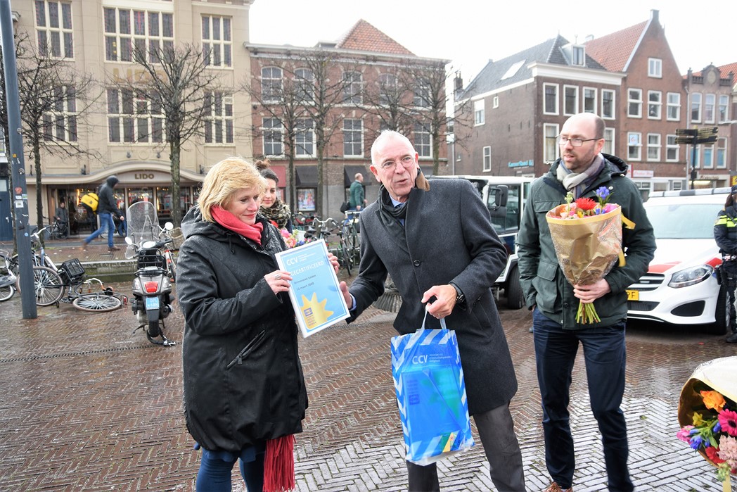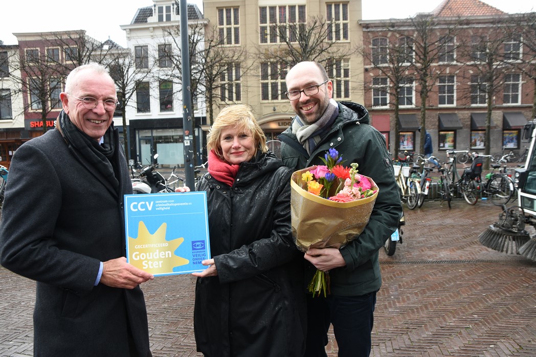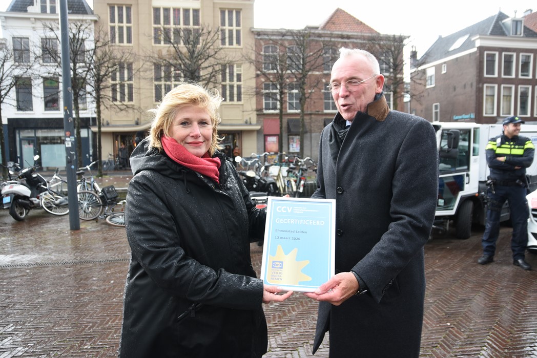 De Leidse binnenstad heeft donderdagmiddag de gouden ster uitgereikt gekregen van het Keurmerk Veilig Ondernemen (KVO). Het keurmerk werd uitgereikt door het Centrum voor Criminaliteitspreventie en Veiligheid aan wethouder Yvonne van Delft en de KVO-werkgroep, waarvan personeel van Brandweer, Politie, Handhaving, Stedelijk Beheer aanwezig waren. De Leidse ondernemers werden vertegenwoordigd door het Centrummanagement.