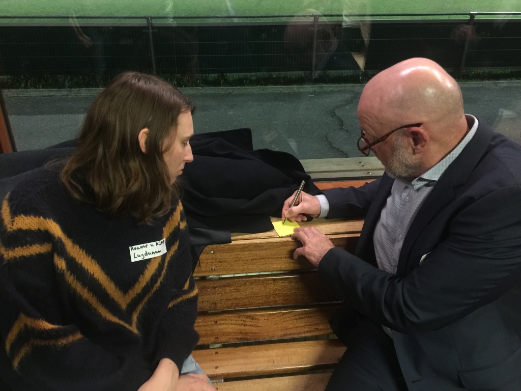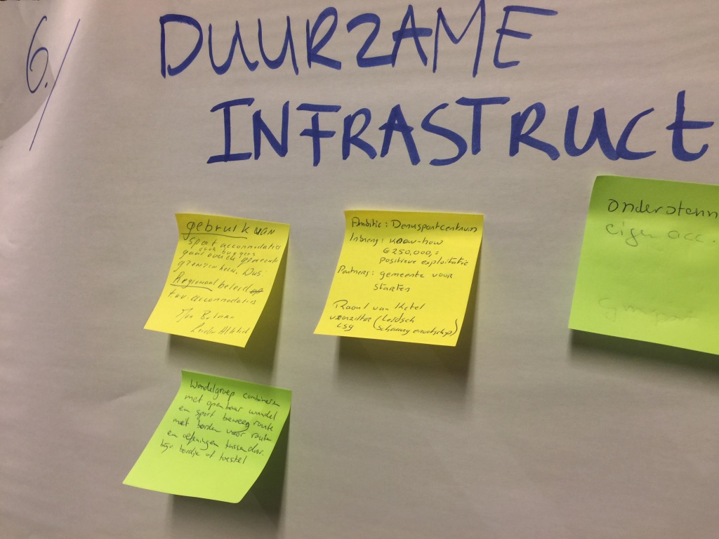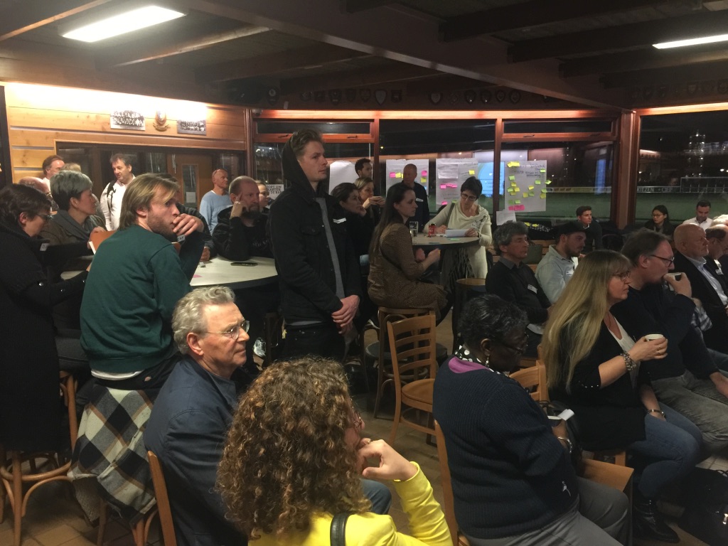 Sommige posters bleven in eerste instantie nog wat leeg, maar al snel werden ze allemaal redelijk goed gevuld. Na een korte pauze namen de gespreksleiders van diverse ’tafels’ die posters mee en kon iedereen aan een tafel naar zijn of haar keuze aanschuiven.
