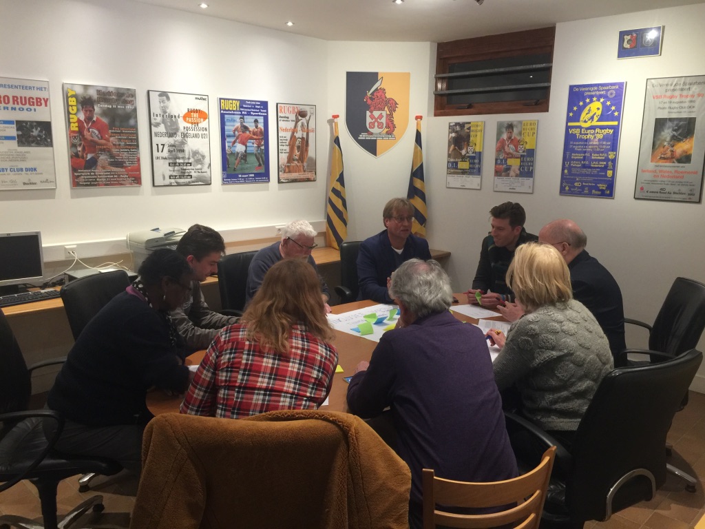 Bestuurders van sportverenigingen, buurtcoaches, een kinderopvangaanbieder en een flinke groep ambtenaren van de gemeente Leiden kwamen deze week samen in de kantine van rugbyclub DIOK. Ze spraken daar hun ideeën en wensen uit over wat er allemaal in het Leidse sportakkoord moet komen. Verantwoordelijk wethouder Paul Dirkse trapte ‘De eerste helft’ af.