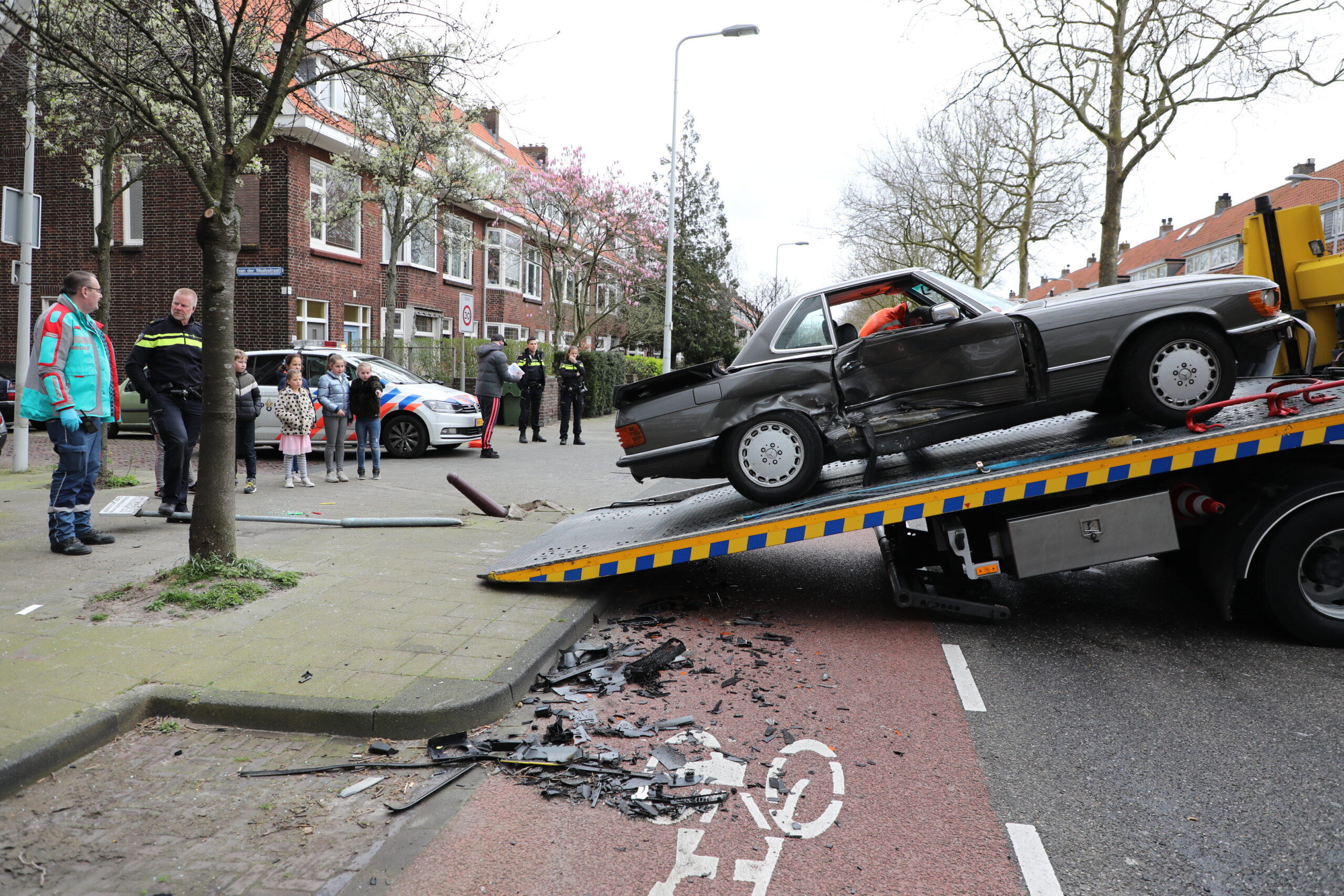 Bij een flinke aanrijding tussen een oude Mercedes en een peperdure Audi RS6, gistermiddag op de hoek van de De Sitterlaan en de Van der Waalstraat in Leiden, zijn allebei de voertuigen ernstig beschadigd geraakt.