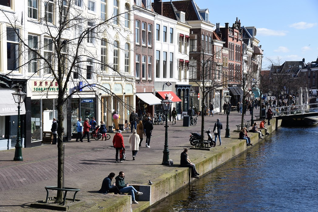 Terwijl de markt niet door ging, veel winkels hun deuren gesloten hielden en de horeca dicht is, was het zaterdag toch nog redelijk druk in het centrum. Vooral op de Nieuwe Rijn en de Aalmarkt liep veel publiek. Een enkeling stond verbaasd te kijken dat er geen markt was, maar bij de meeste mensen was dit wel bekend.