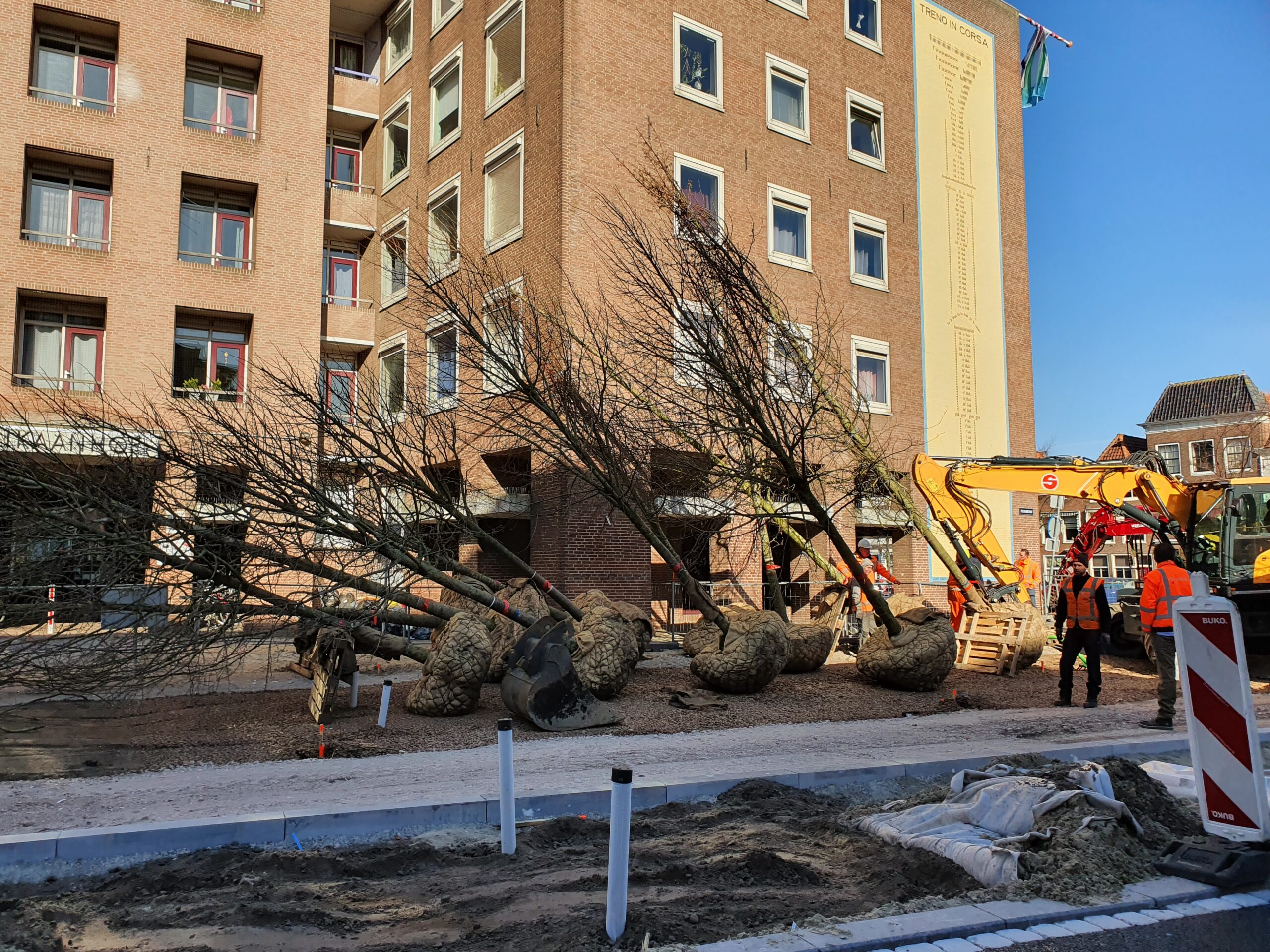 Over een maand worden de werkzaamheden van de eerste fase naar verwachting afgerond. Dat is het deel tussen de Klokpoort en de Ir. Driessenstraat. Het Plein bij de Pelikaanstraat is inmiddels opnieuw aangelegd en ook de rijbaan die diezelfde zijde is klaar. Momenteel wordt er gewerkt aan de kant van de Pelikaanhof. Deze week worden ook bomen aangeplant.