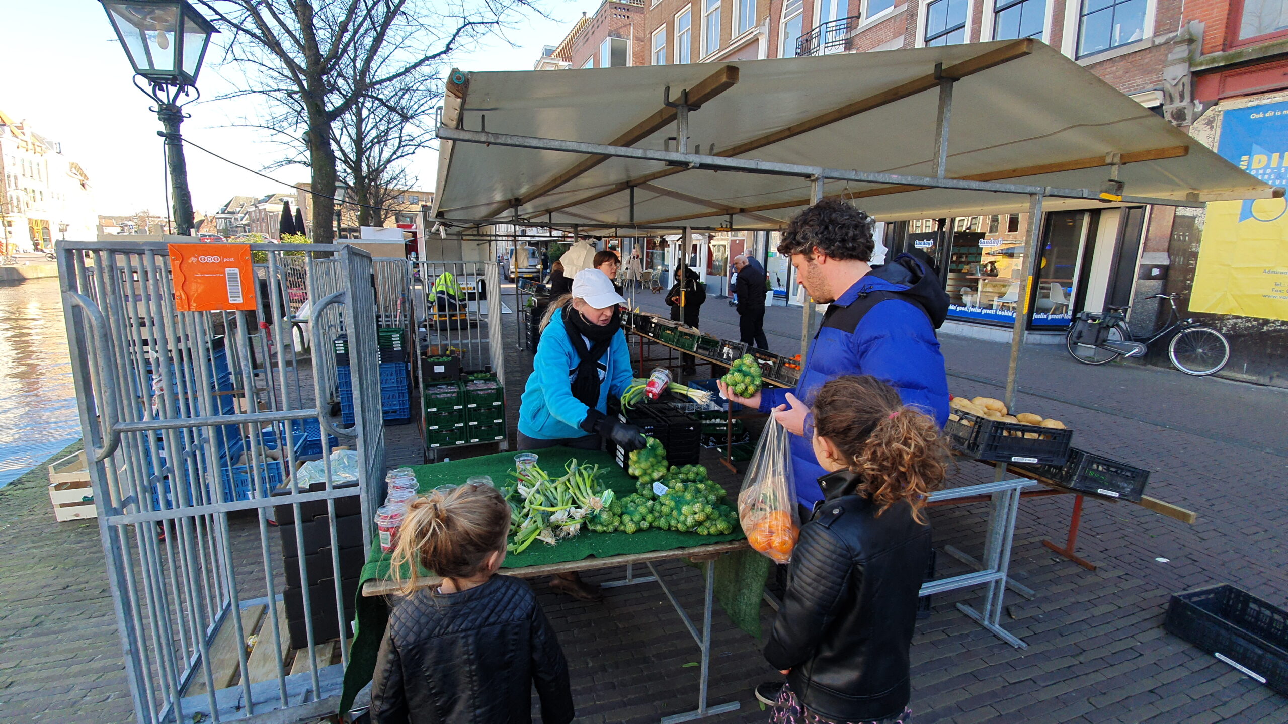 “Zo gaat het de hele middag al, ik deel het maar uit want weggooien is zonde”, zegt Sandy Sira van Sandy’s Leiden. Ze staat op de Botermarkt met haar groente- en fruitkraam. “Ik kan het zout in de pap niet verdienen!” Een voorbijganger krijgt een gratis netje spruitjes in de handen gedrukt. Een ander radijsjes. “Mag ik er een tasje bij?’ wordt gevraagd. “Ja Hoor. Vijf euro! Ik mot het toch ergens mee verdienen”, zegt Sandy terwijl ze alweer de volgende passant aanspreekt: “Hier, radijsjes. Voor je teckel. Geen bosui geven hoor. Daarvan gaat ie aan de… nee dat ga ik niet zeggen.”