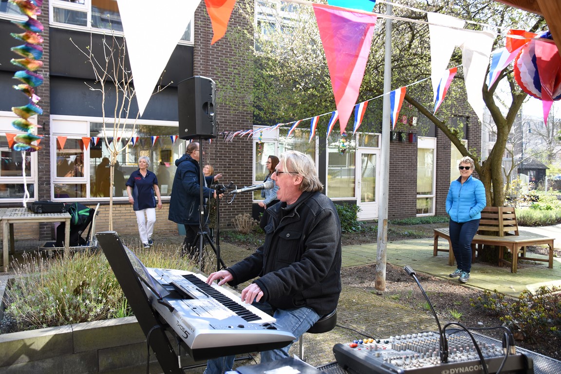 Bart van Schoonderwoerd Den Bezemer is al jaren een bekende verschijning in de Leidse muziekwereld. Hij doet deze weken allebei. Huisconcerten met piano, accordeon of gitaar en op donderdag 26 maart een exclusief optreden voor de bewoners en de medewerkers van het verzorgingstehuis Rijn en Vliet. De zanger bracht een repertoire van Nederlandstalige klassiekers van de Zangeres zonder Naam, Koos Alberts en Frans Duijts.