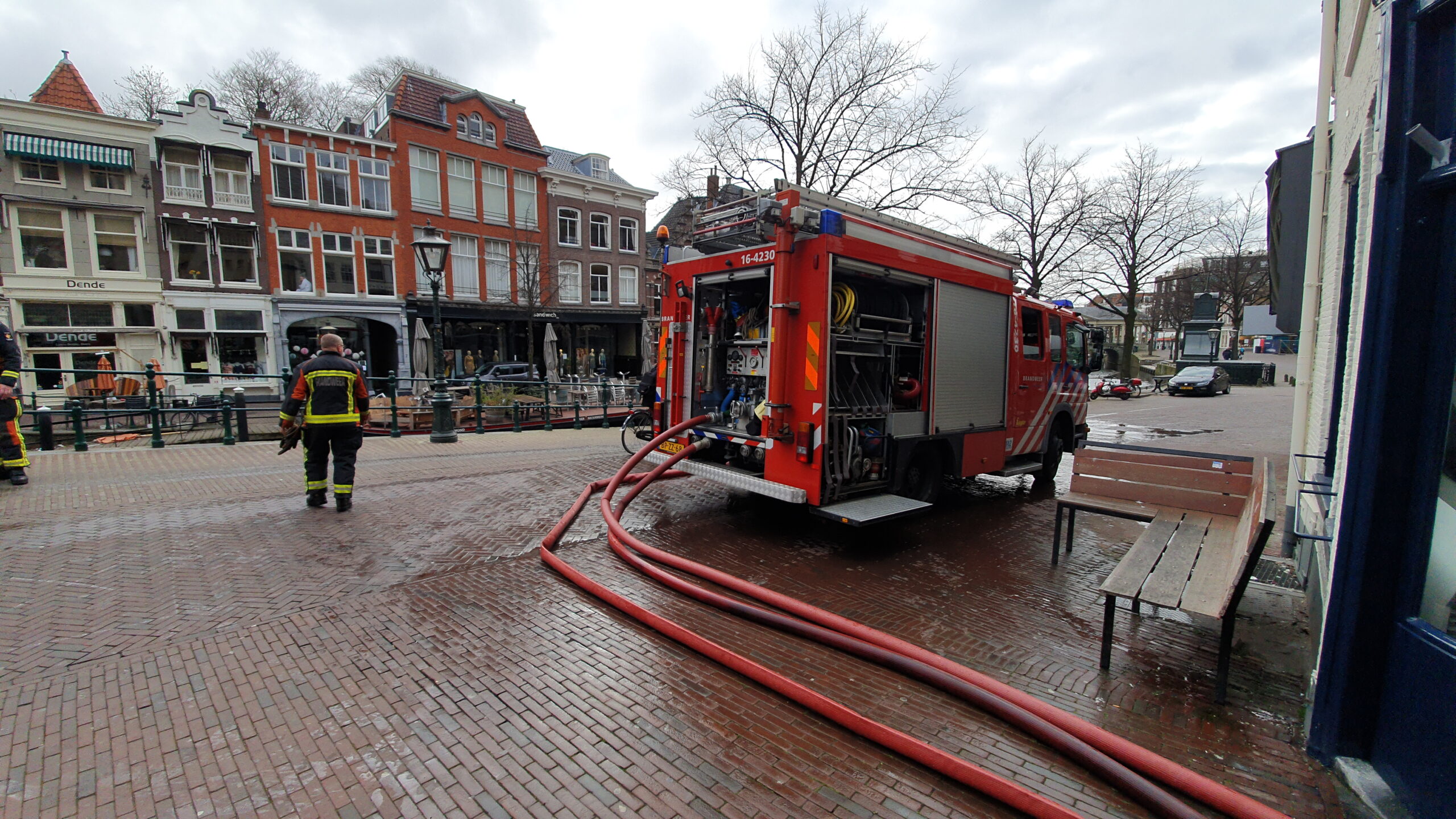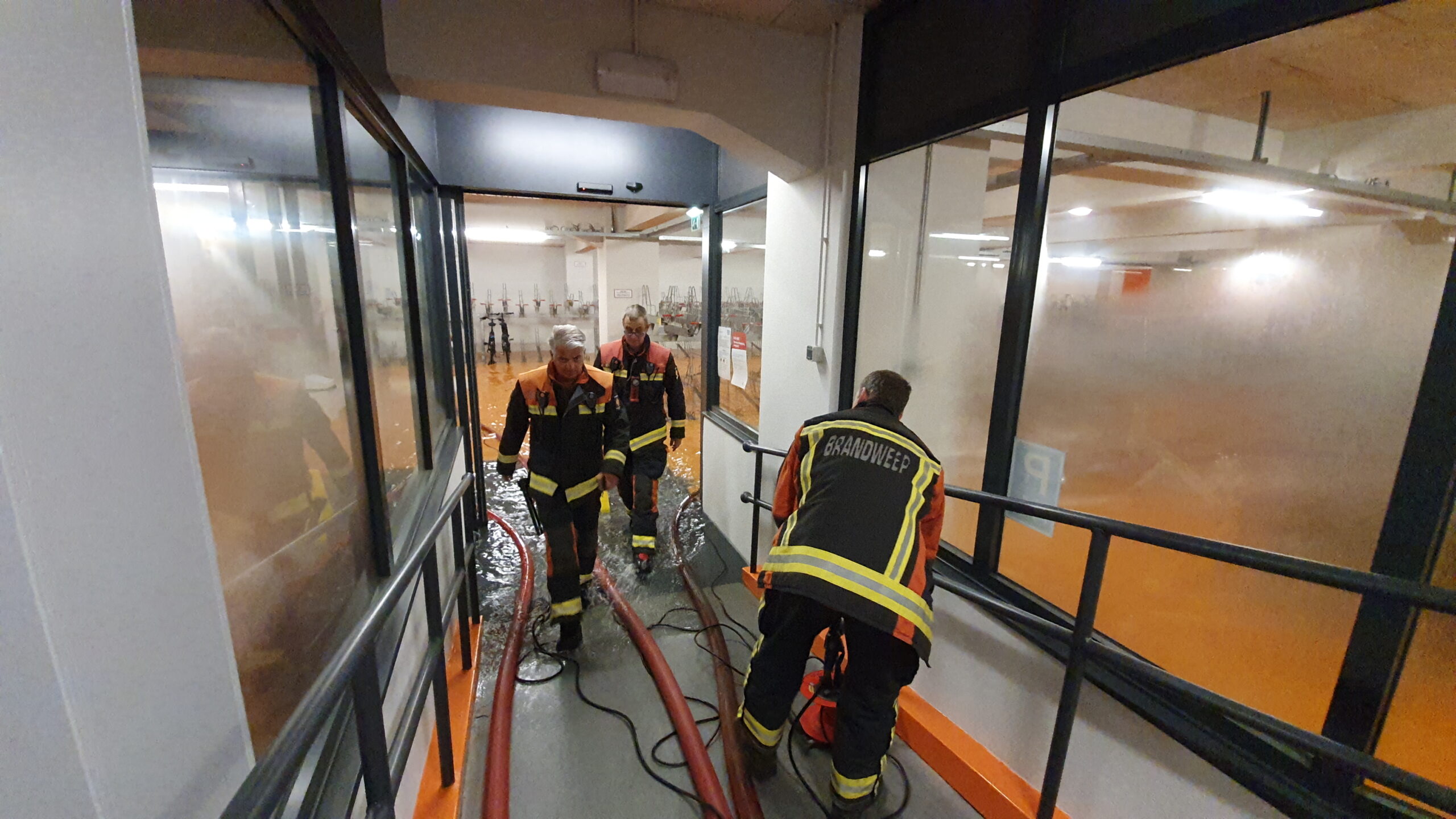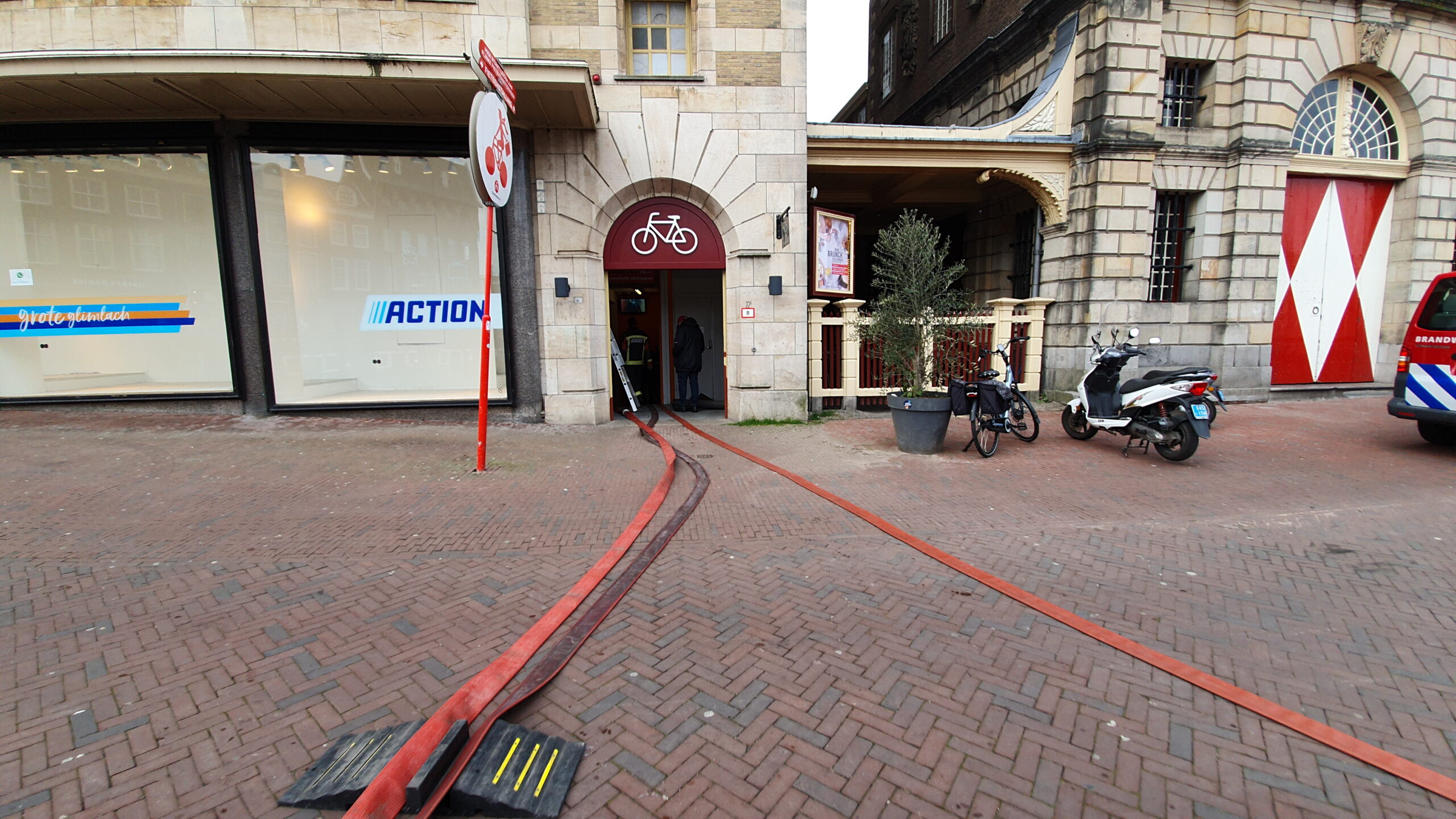 “Het lijkt wel De Overdekte”, het grapje dat verwijst naar het binnenbad dat vroeger in de Haarlemmerstraat was gevestigd, wordt meerdere keren gemaakt door omstanders die op de Aalmarkt staan te kijken naar de verrichtingen van de brandweer. Die hebben een flinke klus, want in het leegstaande warenhuis is een waterleiding gesprongen. Naar verluidt die van de cv en de sprinklerinstallatie. In het souterrain staat zo’n anderhalve meter water en eenzelfde lot is de Waagstalling beschoren. “Kom je je fiets halen? Dan hoop ik dat je een zwemdiploma hebt!”