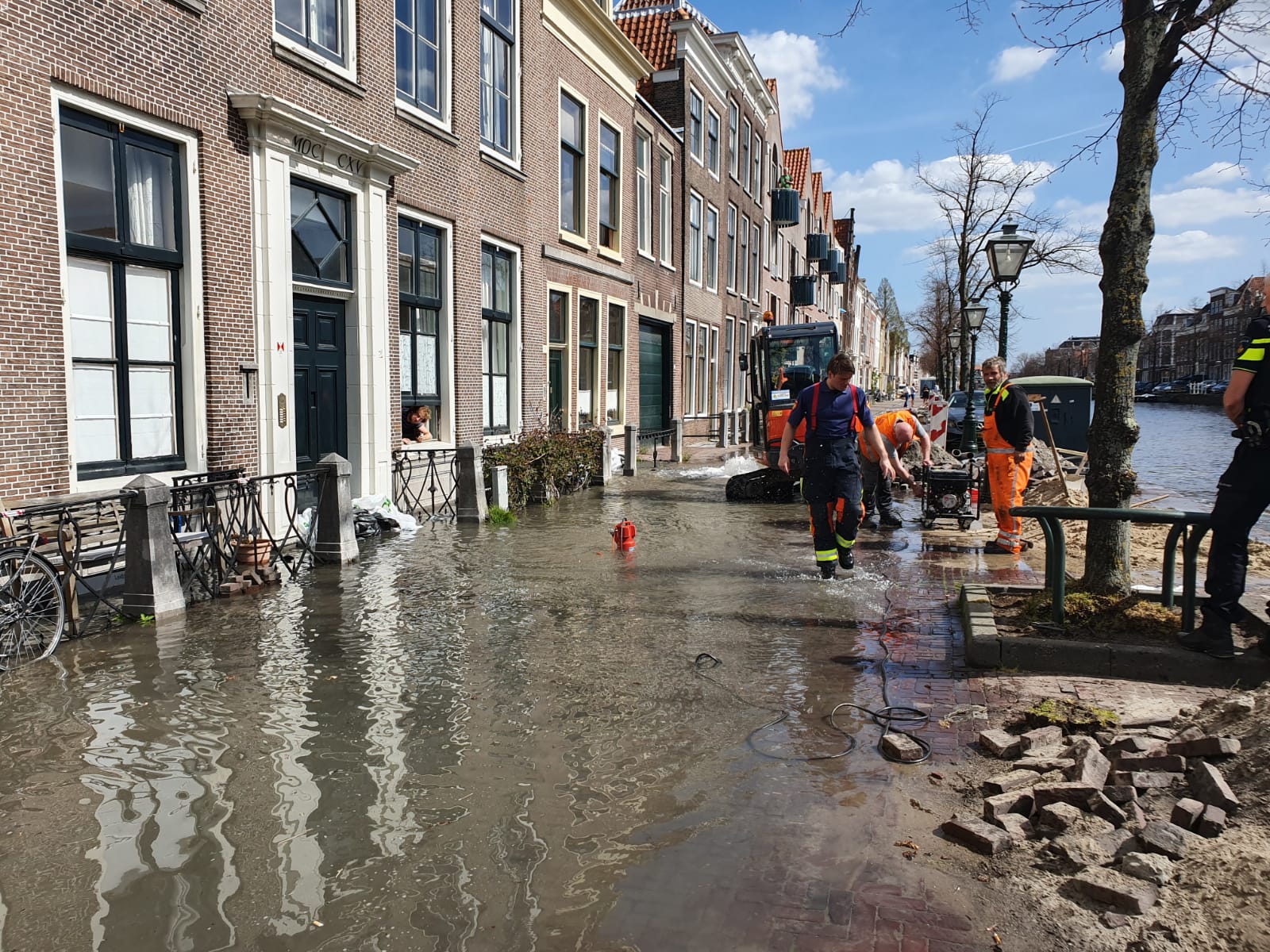 Bij graafwerkzaamheden op de Oude Singel in Leiden is dinsdagmiddag rond 13.30 uur een waterleiding geraakt. De brandweer is ter plaatse om het water weg te pompen en de schade aan omliggende huizen zoveel mogelijk te beperken.