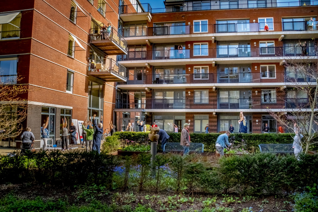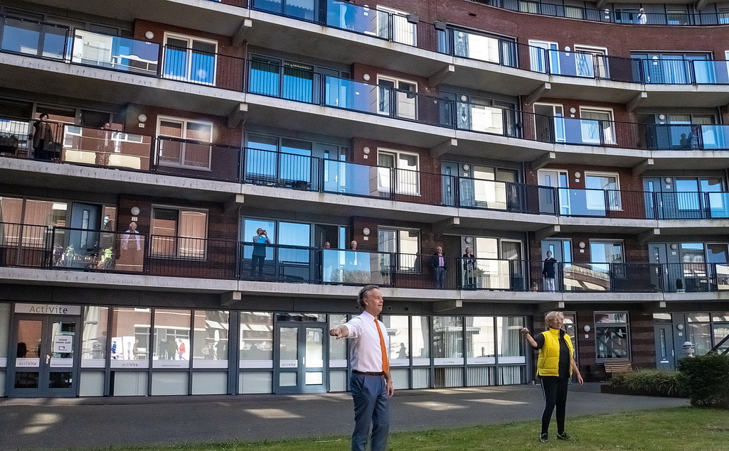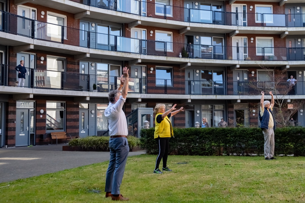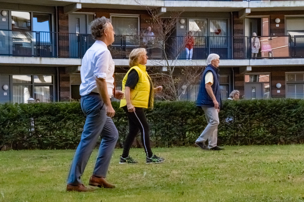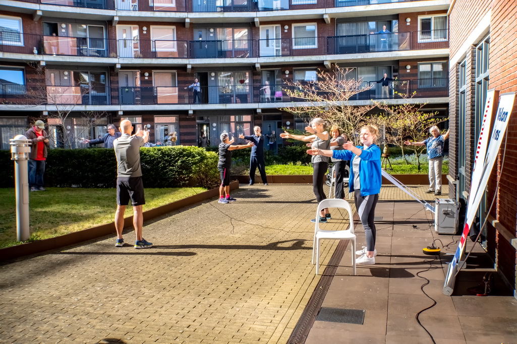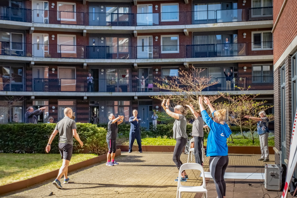 De Leiderdorpse burgemeester Laila Driessen deed vrijdagochtend mee met het gymnastiekuurtje voor de bewoners van woonzorgcentrum De Ommedijk. Het zogenaamde ‘BalkonBewegen’ is in het leven geroepen door Clubhuis De Derde Helft, nu de senioren niet meer elke woensdag en donderdag naar Alecto en RCL kunnen om met elkaar te bewegen. Ook sportwethouder Willem Joosten was van de partij.