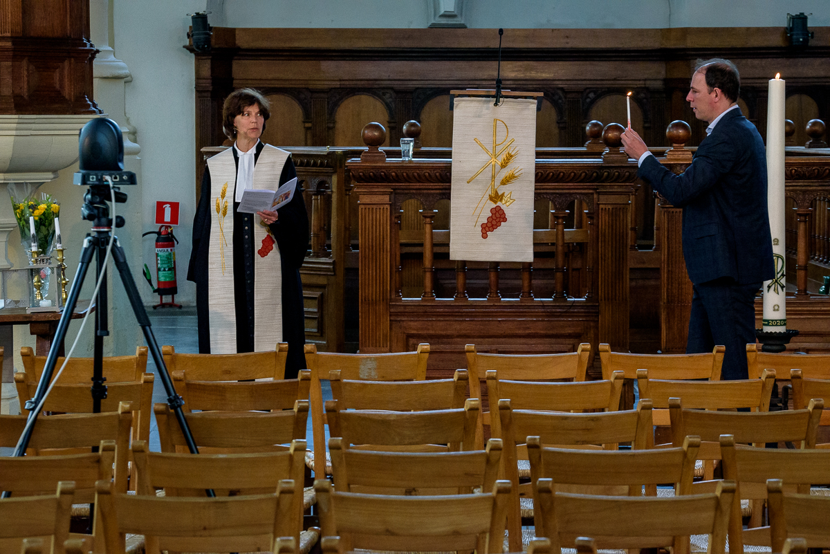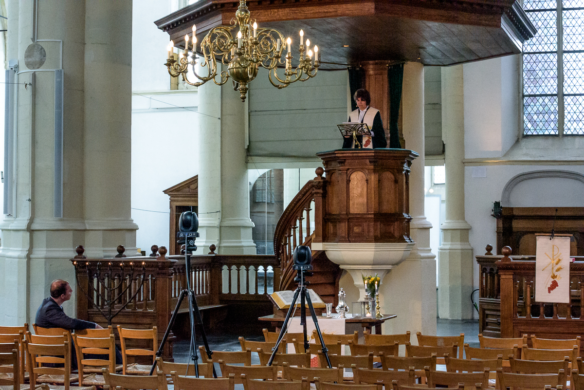 Pasen brengt ieder jaar veel mensen bij elkaar in de kerk. Door de uitbraak van het coronavirus is dat dit jaar niet mogelijk. De Leidse Binnenstadsgemeente bedacht een oplossing: voor 7500 euro werd er streamingapparatuur aangeschaft en al snel werden de kerkdiensten vanuit de Hooglandse Kerk, waaronder de Paasdienst, bij de mensen thuis gebracht.