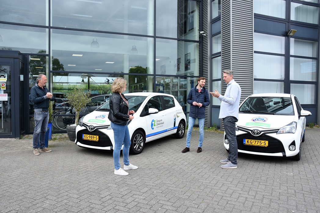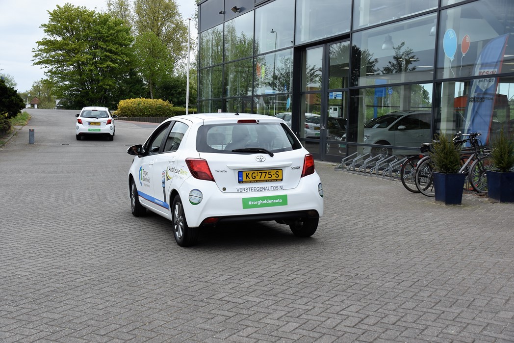 De twee auto’s zijn zaterdagochtend bij Versteegen Auto’s in Zoeterwoude overhandigd aan Matthijs in ’t Veld en Juultje Martens, beiden werkzaam in de zorg en woonachtig in de Leidse regio. Zij ondervonden veel moeite bij het reizen naar hun werkplekken in respectievelijk Amsterdam en Gouda. De komende drie maanden mogen ze gratis gebruik maken van de voertuigen. “Alleen de benzine is voor eigen rekening. En de bekeuringen natuurlijk, maar die krijgen ze vast niet”, grapte Pieter Versteegen na het overhandigen van de sleutels.