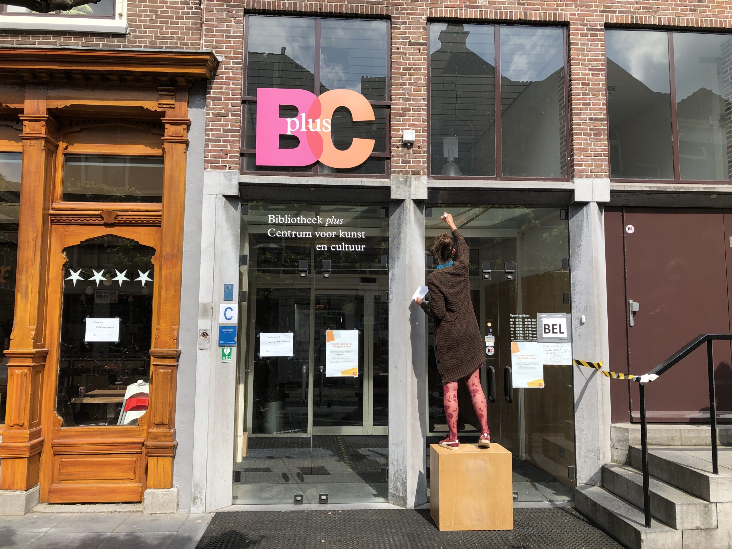 Stadsdichter Marianne van Velzen heeft woensdagmiddag gedichten geschreven op de ramen van de BplusC bibliotheek aan de Nieuwstraat in het centrum van Leiden. De gedichten maakte van Velzen in de uren voor haar actie in het bibliotheekgebouw dat momenteel, als gevolg van de coronamaatregelen, voor het publiek gesloten is. Van Velzen liet zich eerder vandaag opsluiten door de cultuurcoaches van BplusC, waarna ze de stilte en de boeken om zich heen gebruikte als inspiratie voor het dichten.
