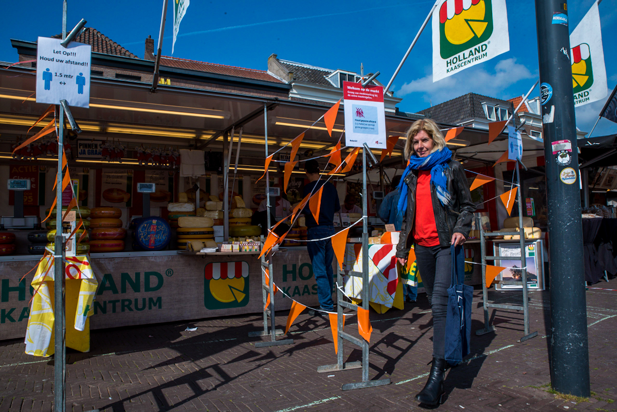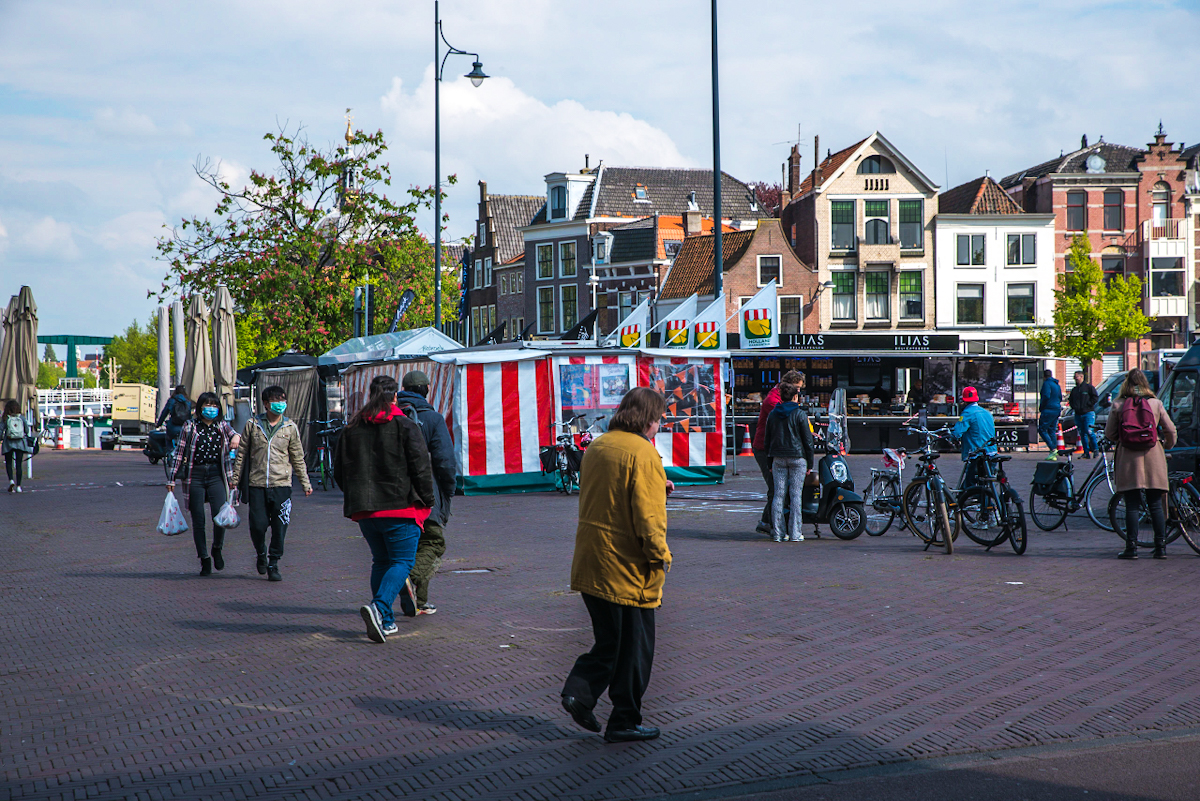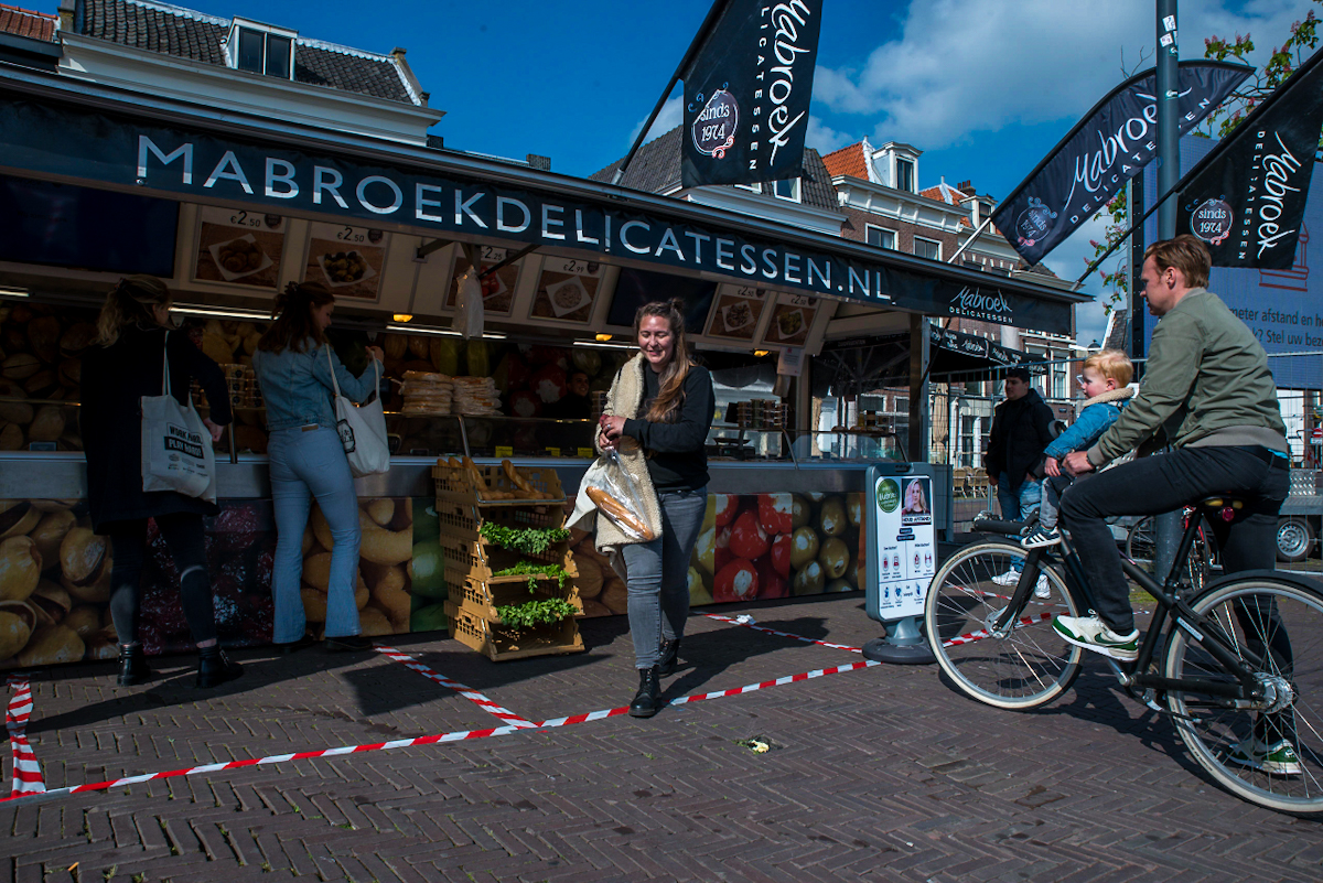 Wethouder Yvonne van Delft bij een marktkraam op de verplaatste woensdagmarkt naar de Lammermarkt & Beestenmarkt Leiden 2020-04-29 @delft1_y #coronavirus @GemeenteLeiden #woensdagmarkt #Leiden #nieuwerijn #botermarkt #vismarkt #aalmarkt #weekmarkt pic.twitter.com/prkt7Pv56F