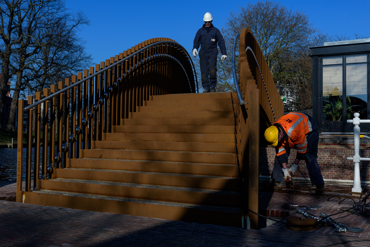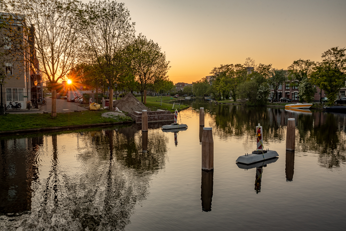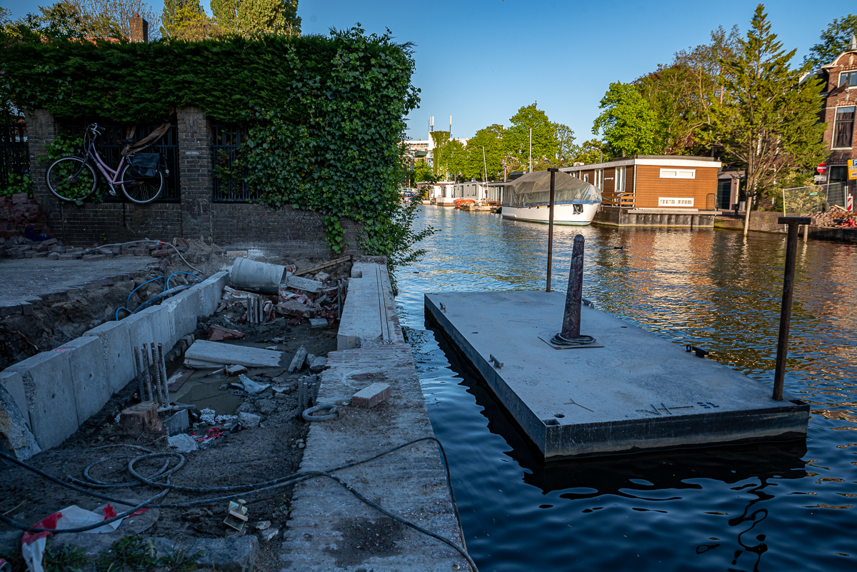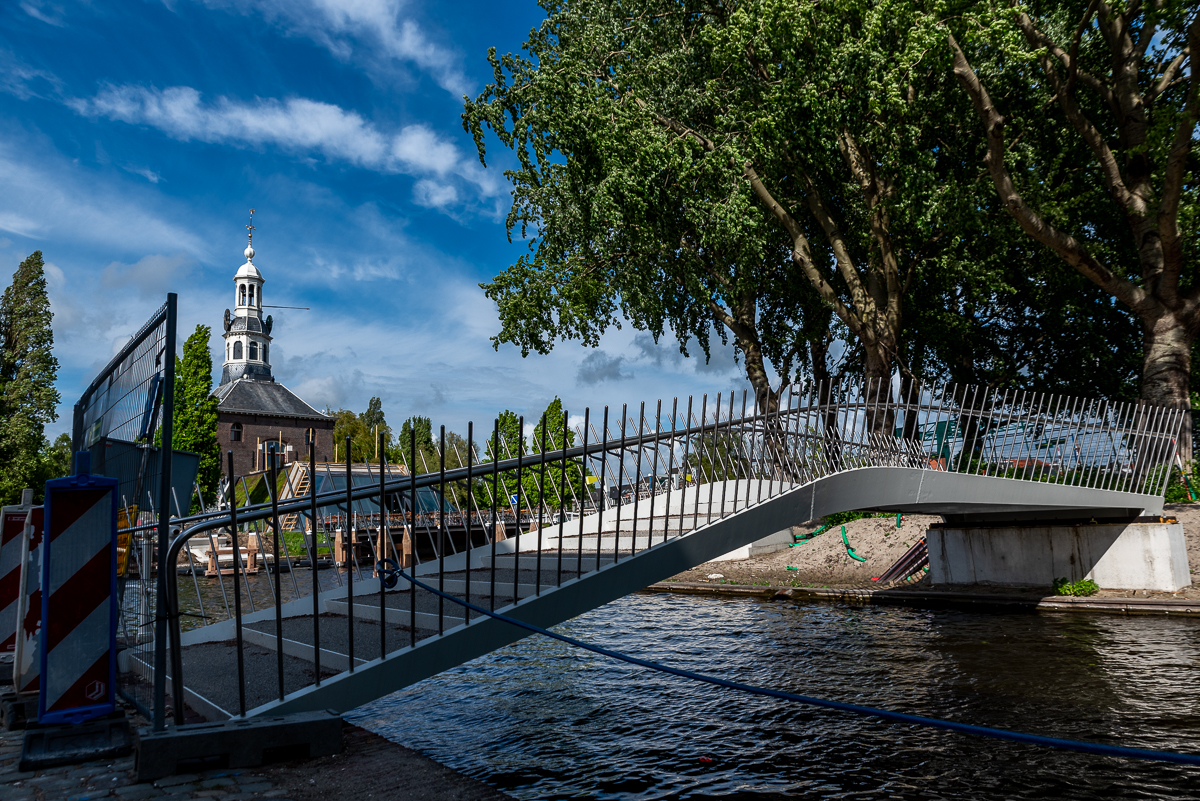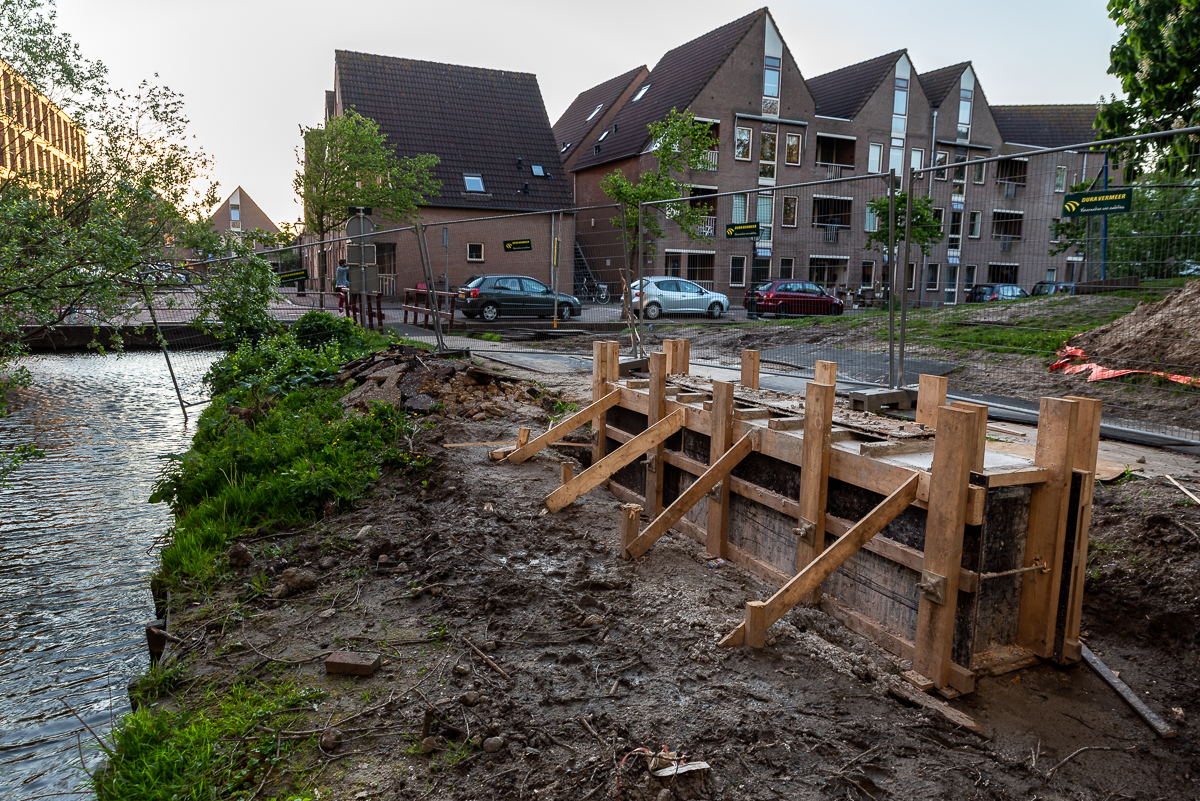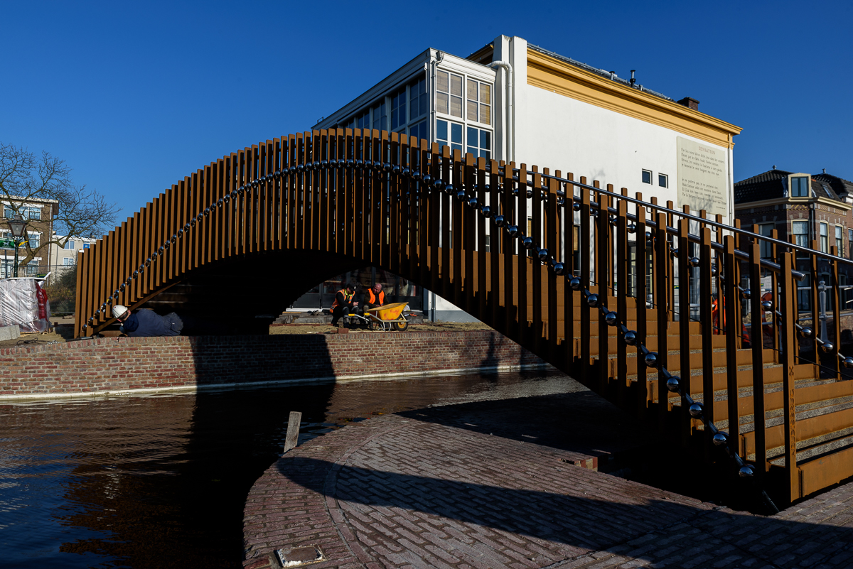 Op verschillende plekken langs de Leidse singels wordt hard gewerkt aan de aanleg van de Singelparkbruggen. (Foto’s: Rob van Dullemen).