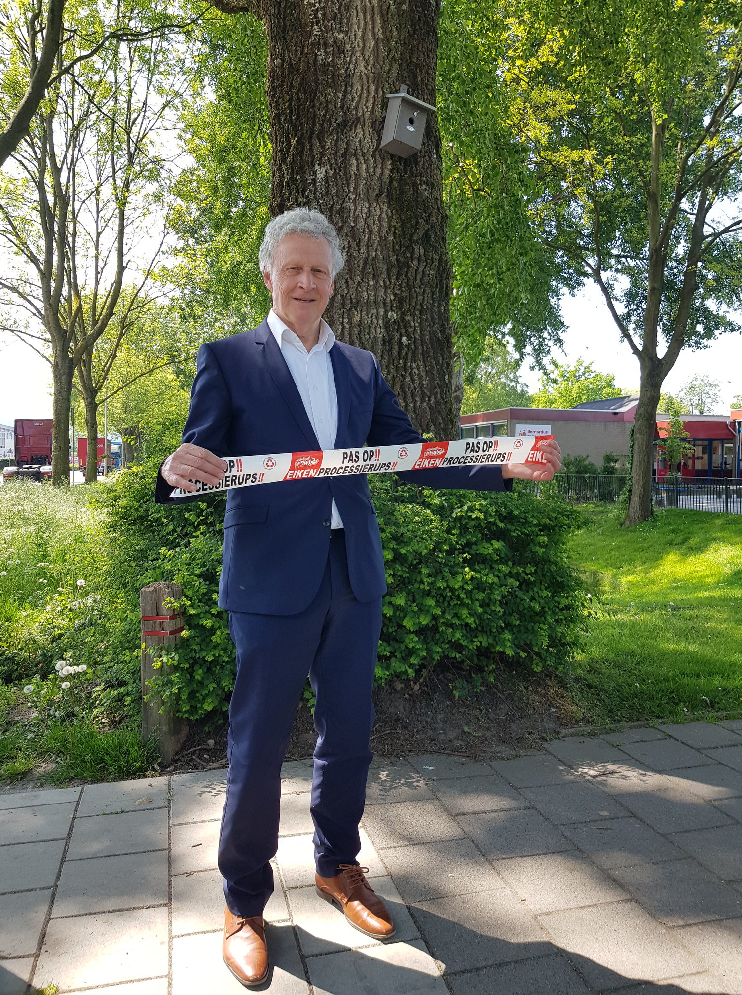 “Uiteraard inspecteren we de eikenbomen in het dorp ook regelmatig”, verklaart wethouder Ruud Bouter. “Wanneer we een nest in een boom aantreffen wordt deze met een opvallend lint afgezet zodat het voor iedereen duidelijk is dat je er uit de buurt moet blijven.”