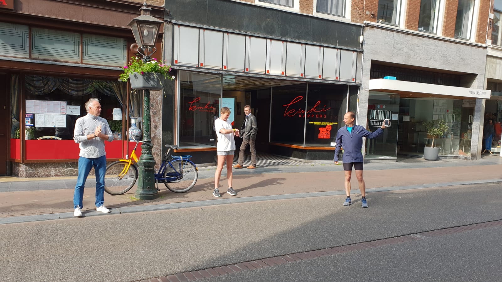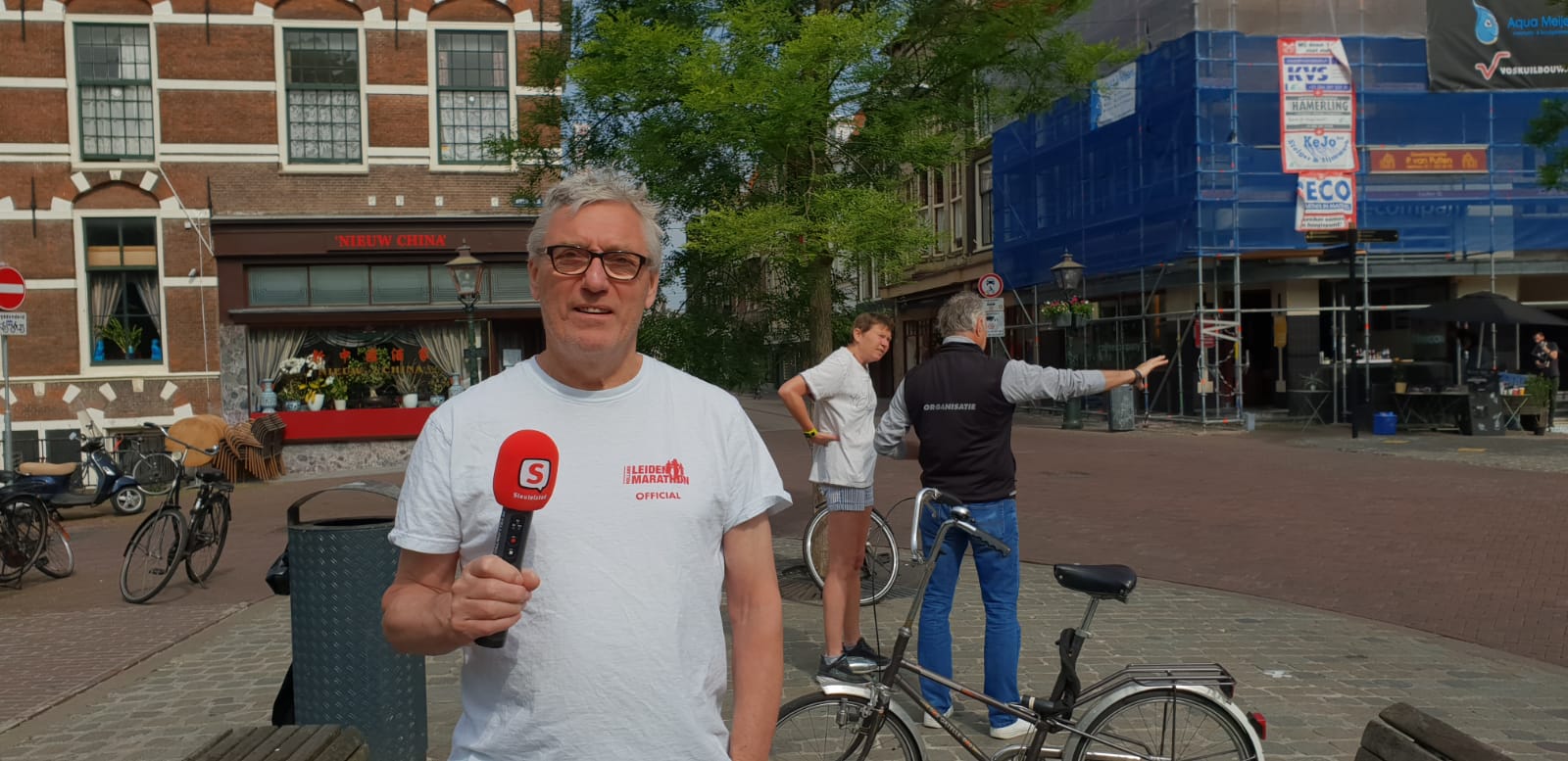 De organisatie van de Leiden Marathon zat vanmorgen vlak voor 10.00 uur klaar op de hoek van de Breestraat en het Gangetje. Uiteindelijk verscheen alleen ‘Running Ronald’ aan de start, hij loopt op eigen houtje de 42 kilometer lopen. Omdat er geen sprake was van een samenscholing, mocht hij onder luid applaus van de organisatie van start.