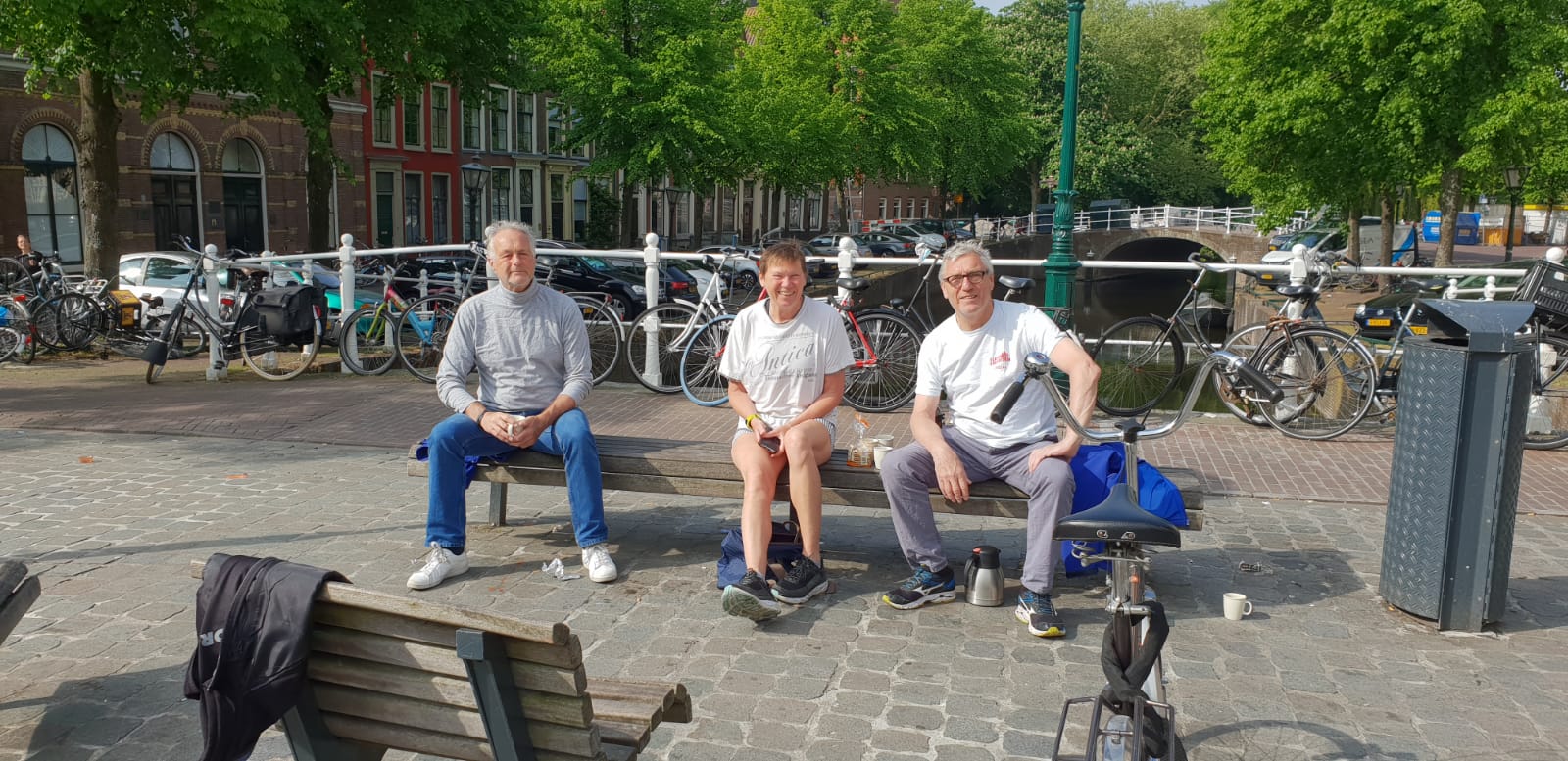 Ronald Meijer vertelt dat hij de Leiden Marathon altijd erg gezellig vindt en ook graag dit jaar de hele marathon wilde lopen. Er zaten wel wat organisatorische problemen in het plan, zoals het ponton over de Oude Rijn dat er nu niet ligt. Dat heeft hij opgelost met behulp van een rubberbootje. “Het is een heel eenvoudig bootje voor één persoon. Gistermiddag heb ik even bij mijn huis in een slootje gevaren, onder een bruggetje door. Dus die dertig meter naar de overkant bij de Oude Rijn moet ook wel lukken.”