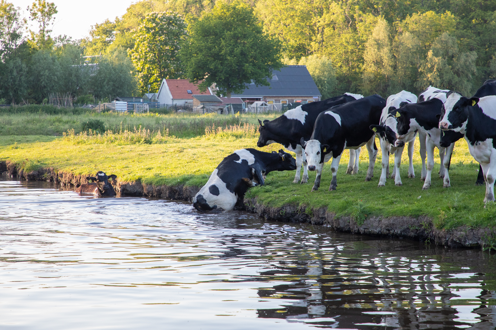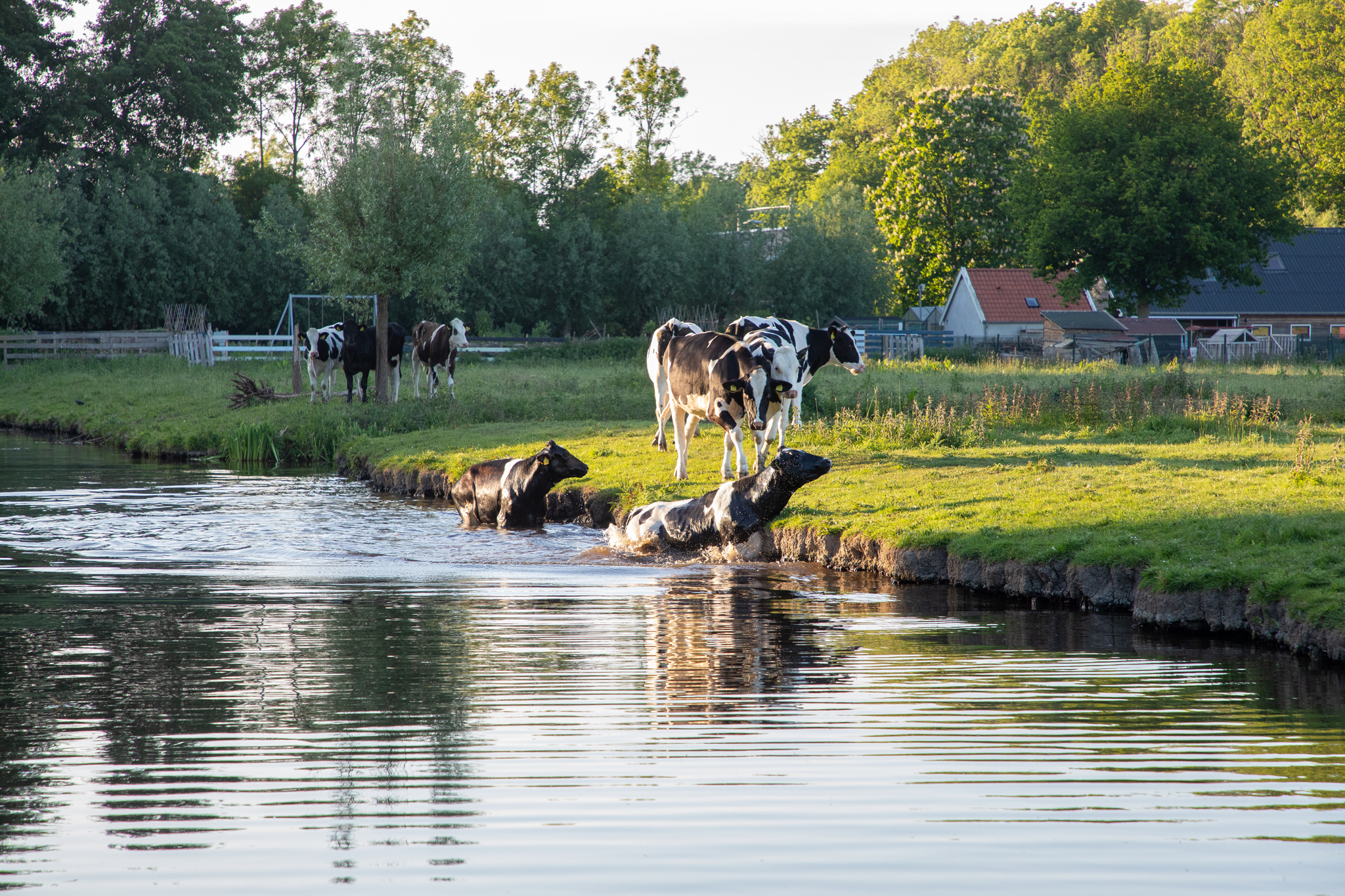 In Polderpark Cronesteyn in Leiden zijn dinsdagavond twee koeien het water in gesprongen. Toen rond 19.30 uur een koe in het water was geraakt, werd de brandweer gewaarschuwd.