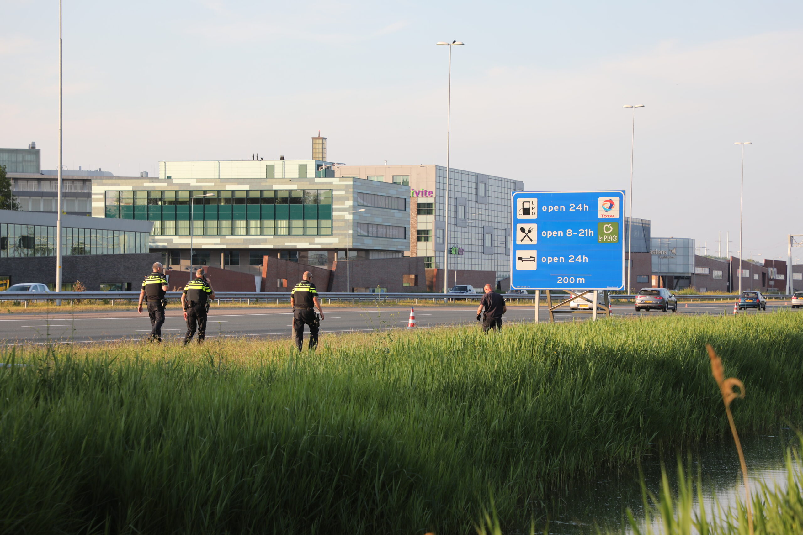 De politie heeft een verdachte aangehouden, deze persoon is overgebracht naar het politiebureau. Omdat er bij het incident mogelijk iets uit het raam van een voertuig zou zijn gegooid heeft de politie in overleg met Rijkswaterstaat een rijstrook afgesloten. Politieagenten hebben samen met een speurhondengeleider vanaf het Limesaquaduct op de A4 bij Leiderdorp tot aan het Total tankstation langs de kant en in de berm gezocht naar dat wat uit het raam zou zijn gegooid. Uit nader onderzoek moet blijken wat er zich precies heeft voorgevallen.
