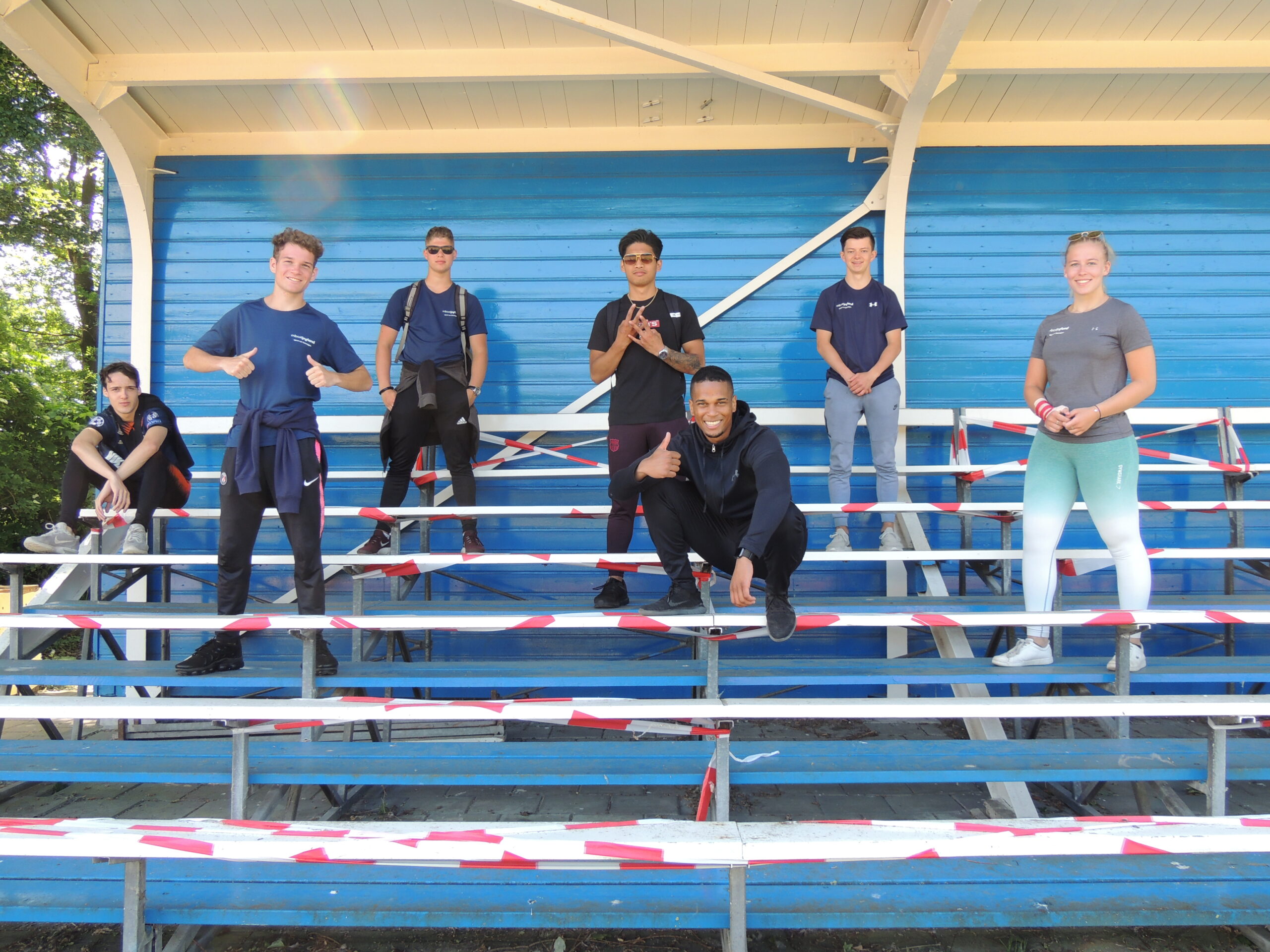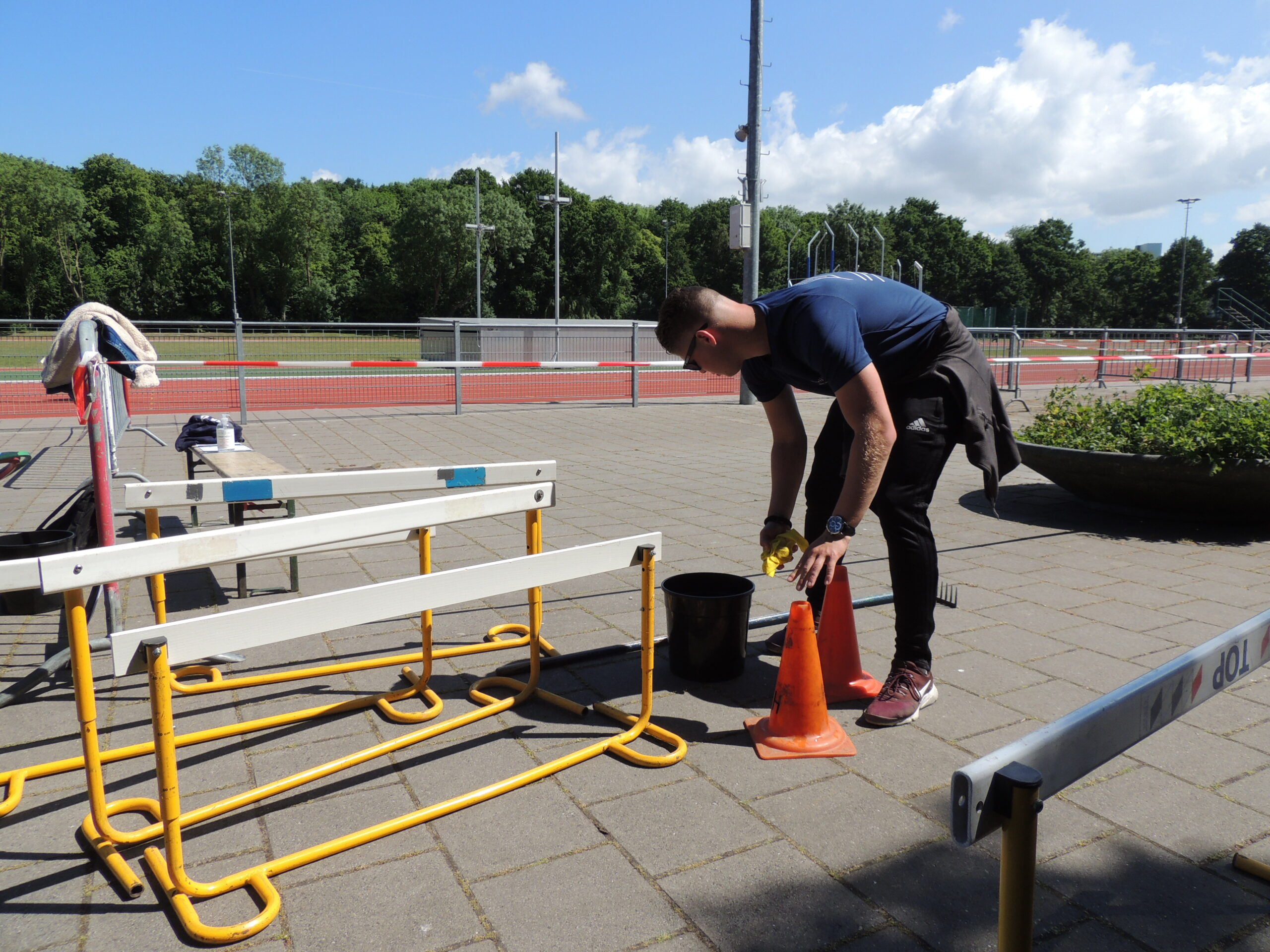 Voor Ricardo is het zo’n beetje voor de eerste keer in twee maanden dat hij weer naar buiten kan. Hij volgt bij mboRijnland de fitness-opleiding en hij loopt stage bij Sander en Sjoerd. Meehelpen bij het organiseren van deze sportdagen is daar een onderdeel van en een welkome afwisseling. “Ik heb gelukkig geen achterstand opgelopen omdat de lessen online wel doorgingen, maar soms is het gewoon niet zo praktisch om alles vanachter het beeldscherm te doen.” Een dagje in de zon op de atletiek met een kleine honderd enthousiaste schoolkinderen is dan weer extra fijn. “Het is zeker geen corvee om hier buiten met de kinderen bezig te zijn. Het is belangrijk dat kinderen zich motorisch blijven ontwikkelen, rennen en lopen en zichzelf ontdekken.”