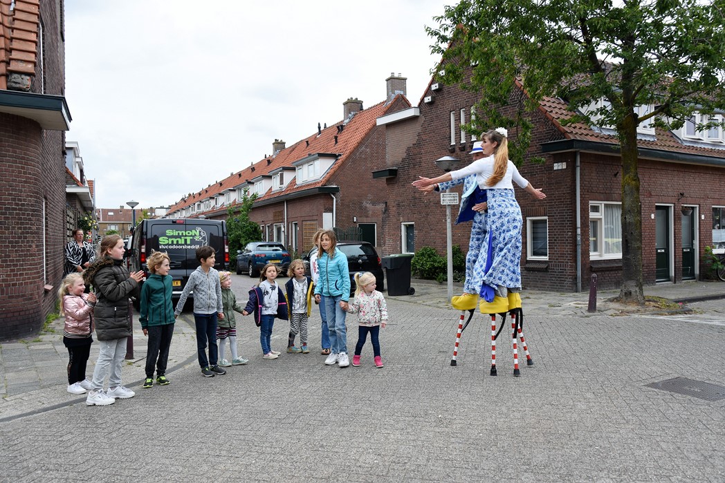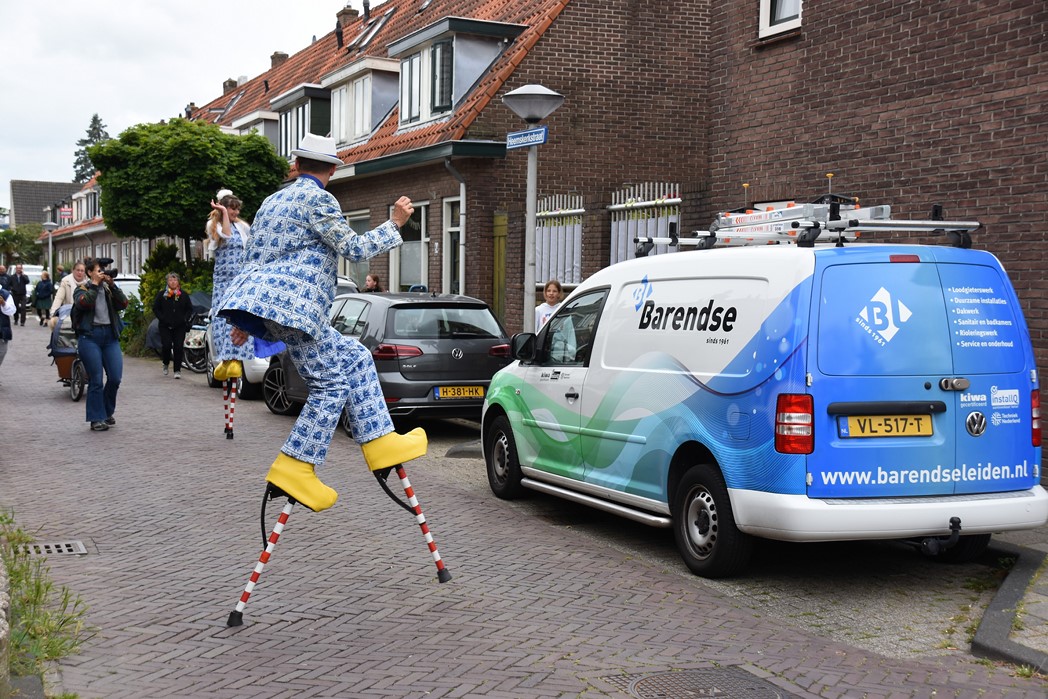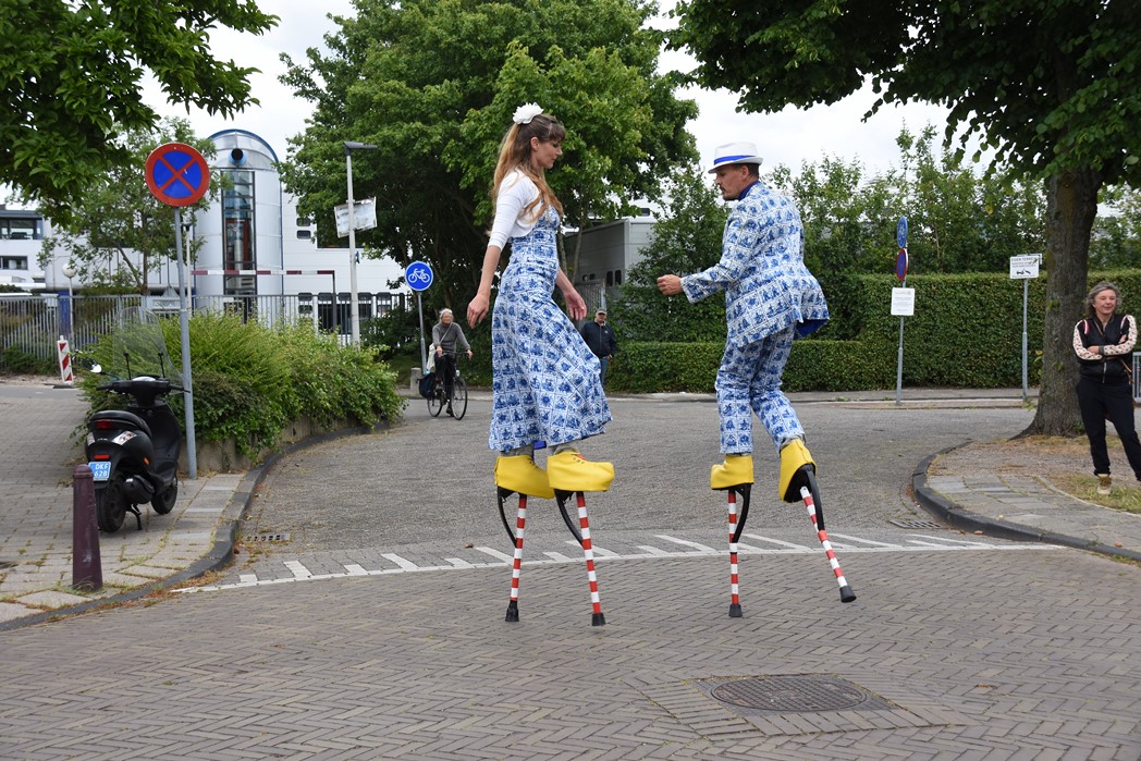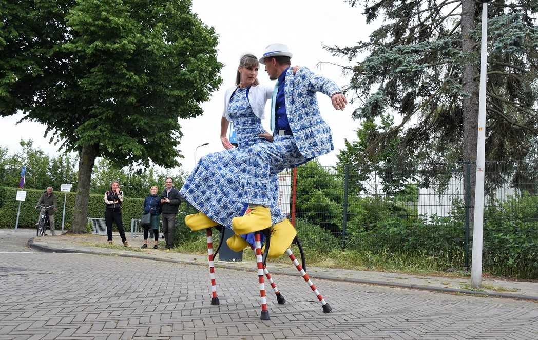 Op hoge stelten, met klompen en kleding in Delfts blauwe motieven brachten de dansers van Levend Lijf dit weekend een bijzondere tango naar De Kooi en de Zeeheldenbuurt. Onder het motto als de straat niet naar het theater kan komen, komt het theater naar de straat. Buurtbewoners werden uitgenodigd mee te lopen en mee te dansen door de wijk.