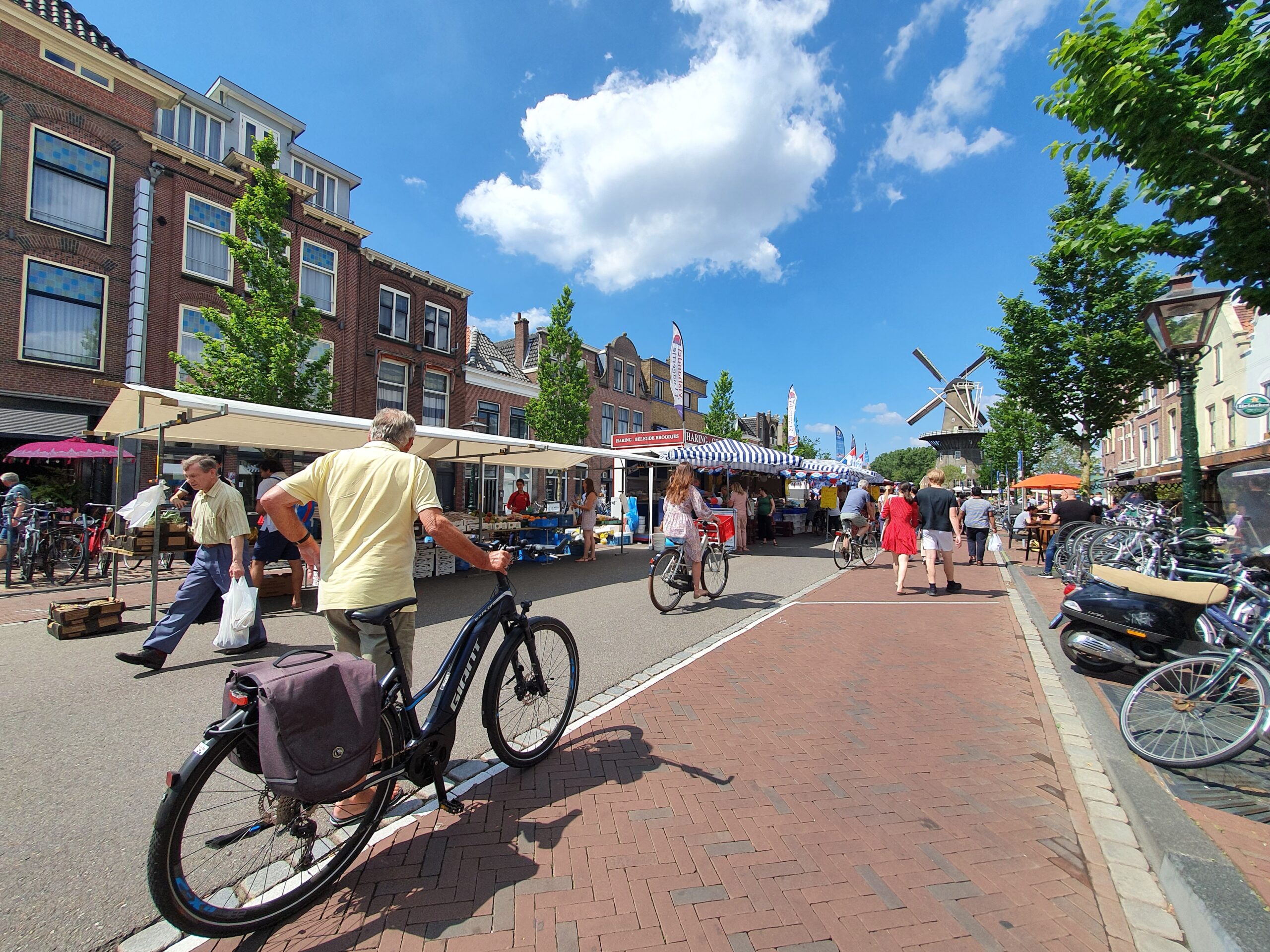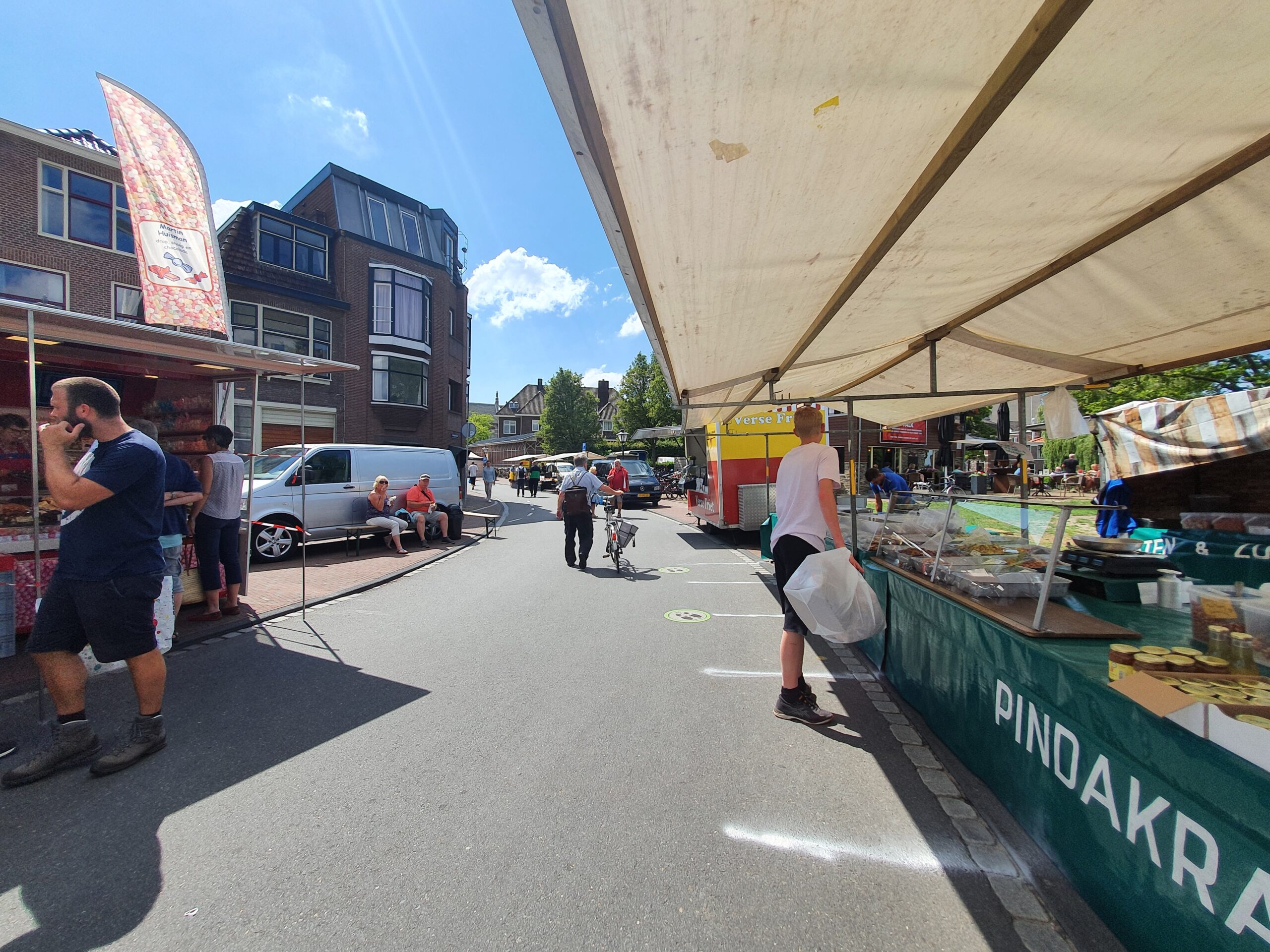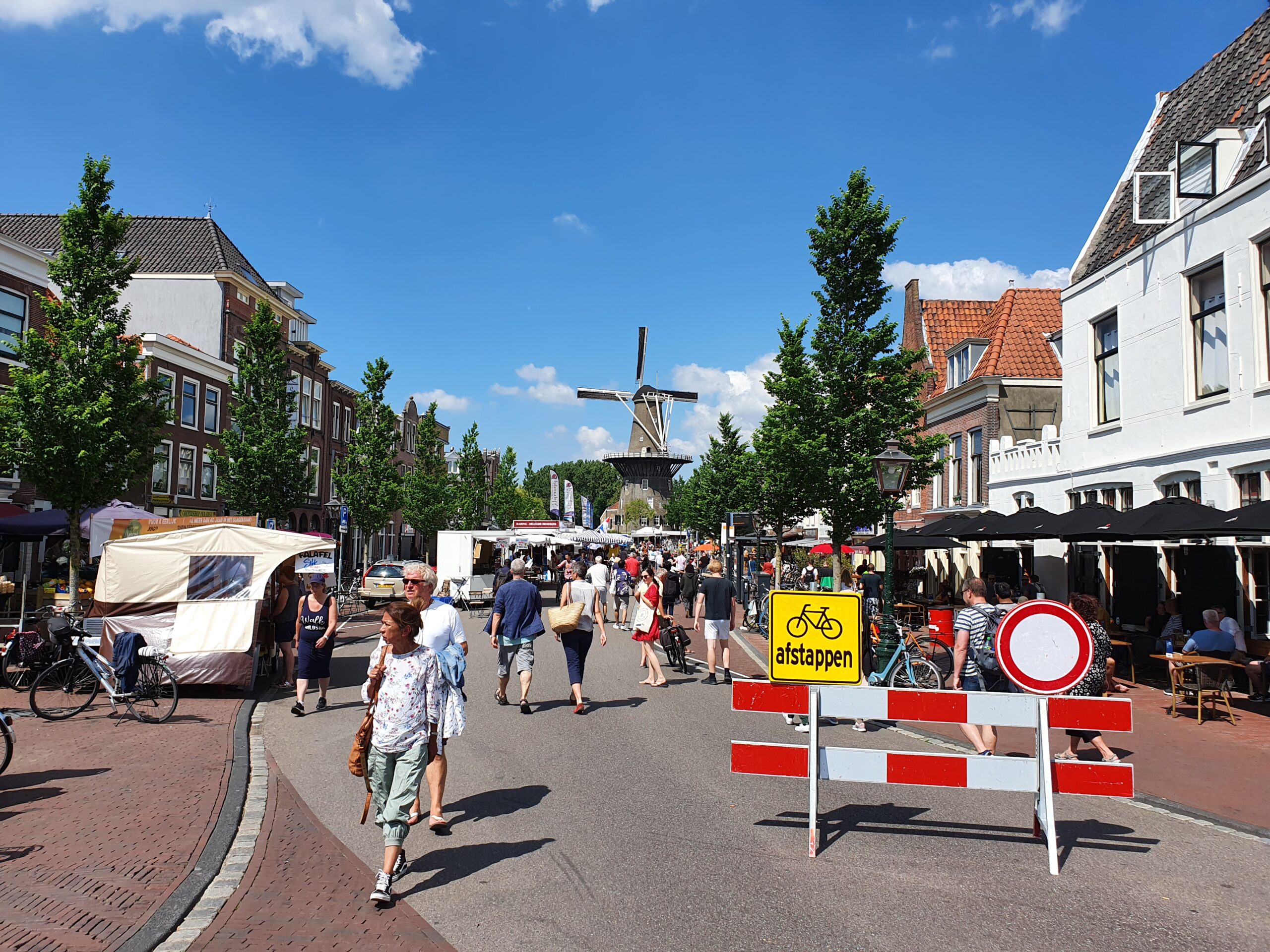 Het was vandaag drukker dan de afgelopen weken op de Leidse zaterdagmarkt. Die was voor het eerst uitgebreid met de Vismarkt, de 2e Binnenvestgracht en de Nieuwe Beestenmarkt. Die laatste twee straten vormen nu ook een verbinding tussen de twee tijdelijke marktpleinen: de Beestenmarkt en de Lammermarkt.
