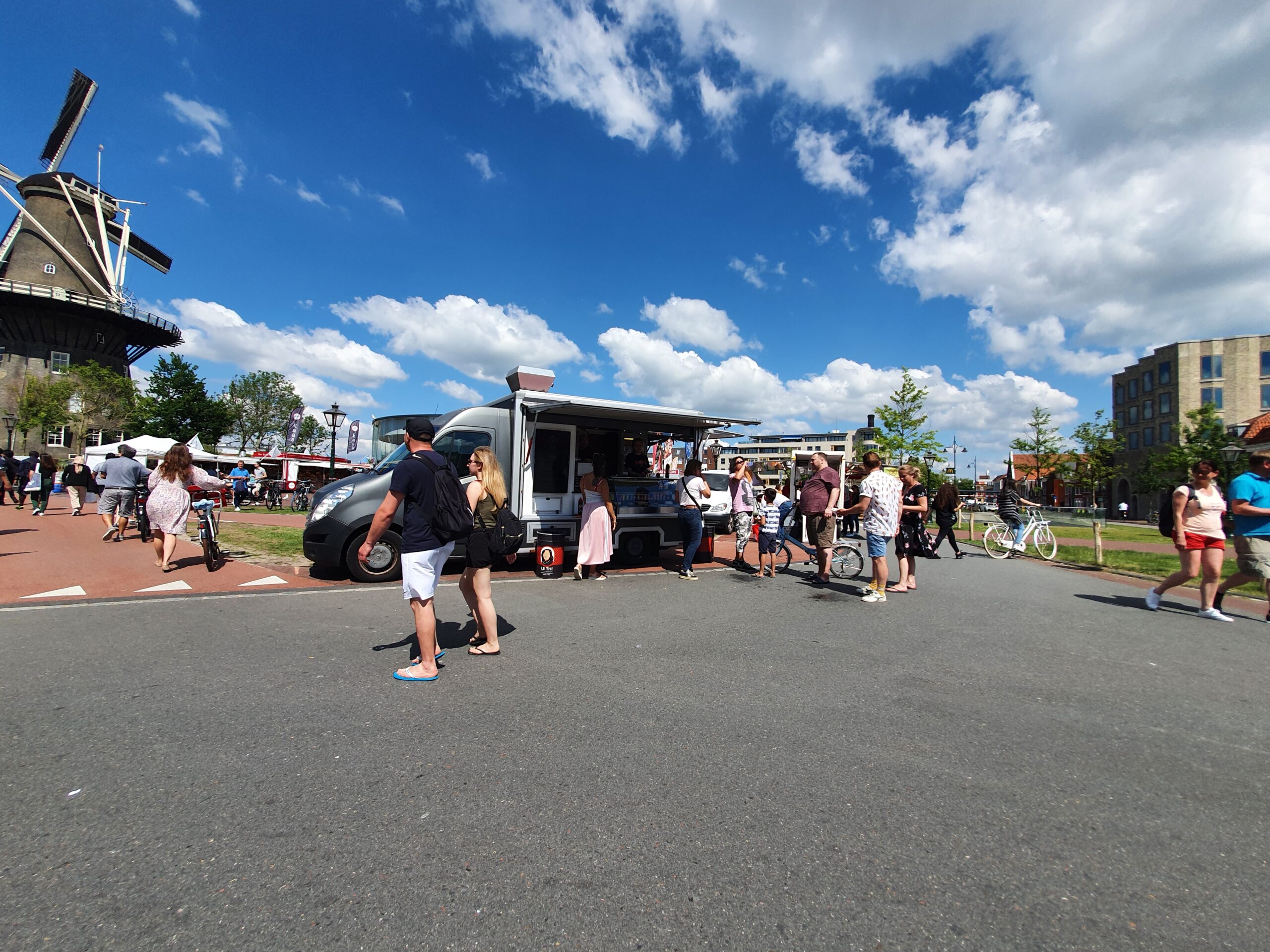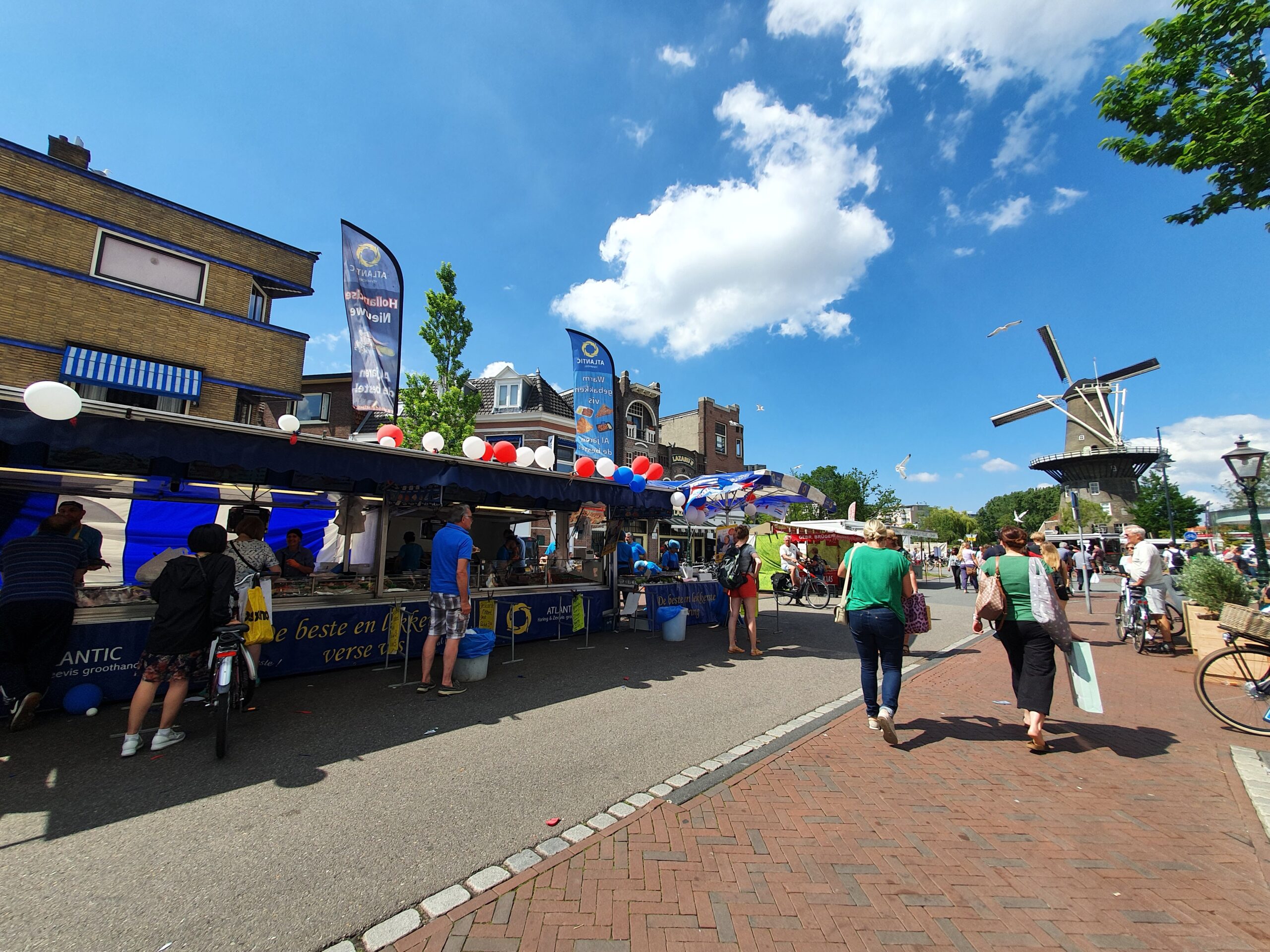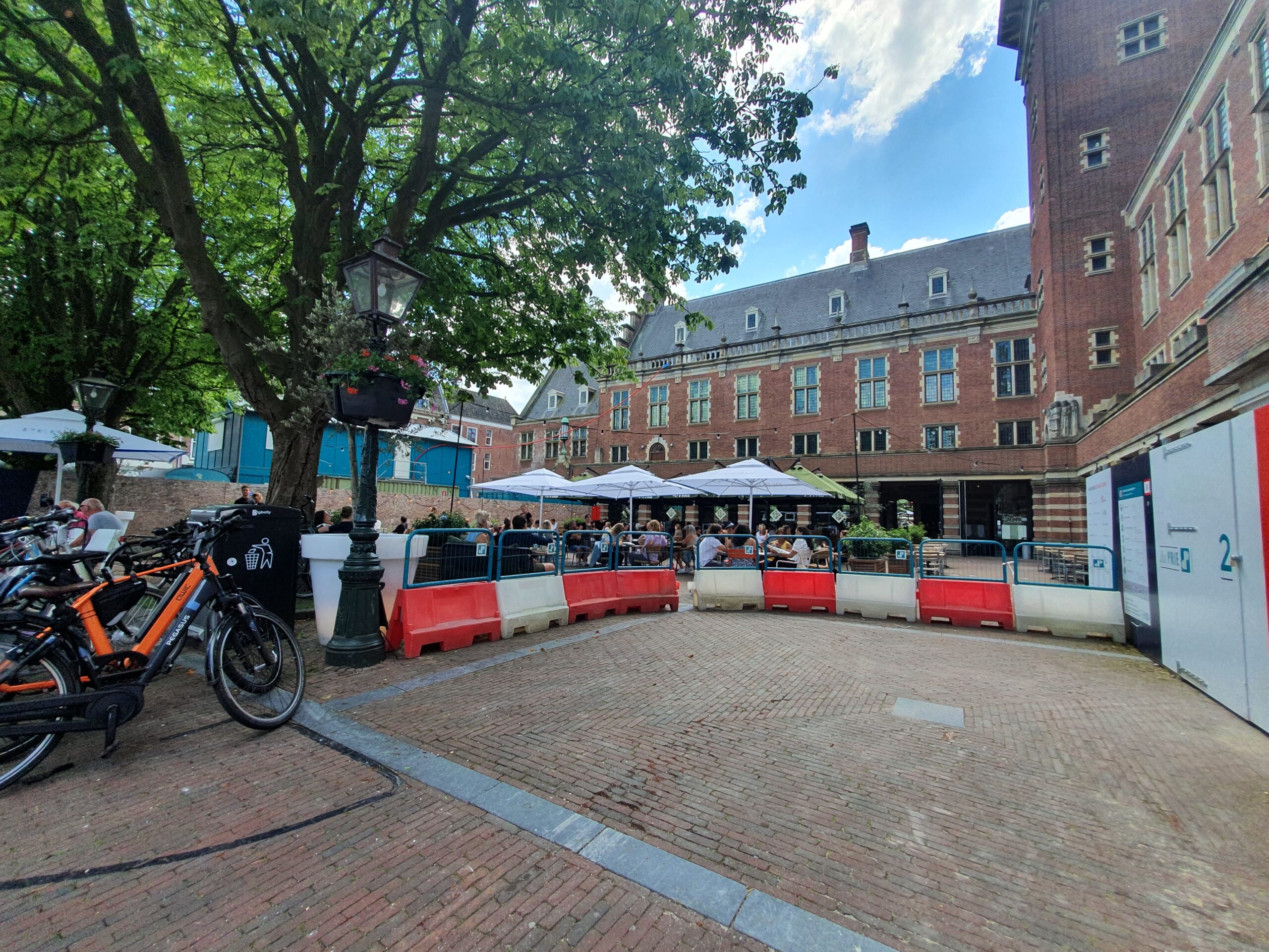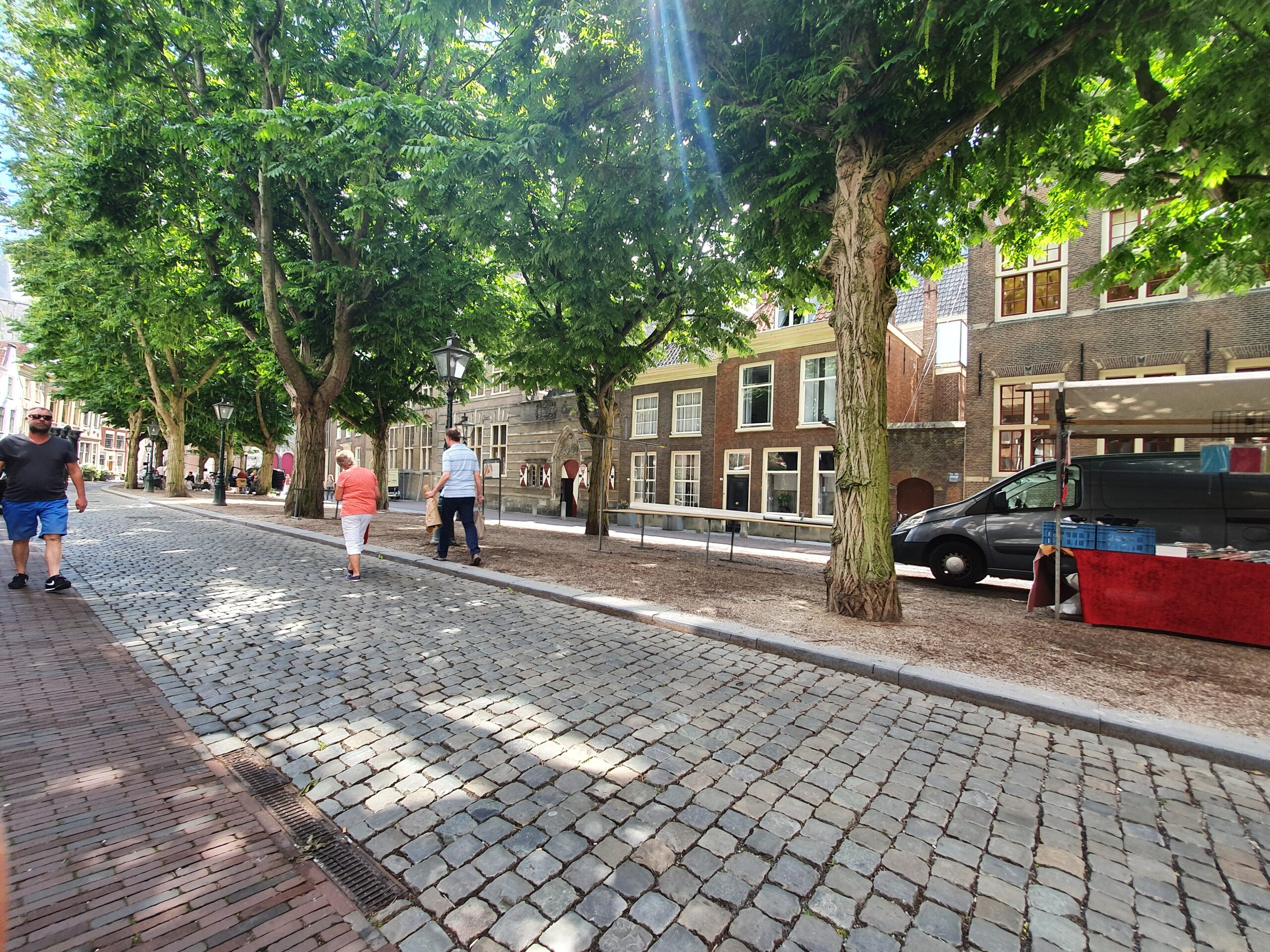 Op de Hooglandse Kerkgracht was het net als afgelopen woensdag rustig. Alleen dit keer geen lege kramen, maar gewoon weinig kramen. Die stonden gebroederlijk naast elkaar aan de ‘Haarlemmerstraatkant’ van de gracht. De marktkooplui hopen volgende week uit te kunnen breiden naar de Aalmarkt, zodat er niemand meer op de Hooglandse Kerkgracht hoeft te staan. “Het was al stukken beter”, zegt ook Paul Verschoor die verantwoordelijk is voor het neerzetten van de kramen voor de kooplui zonder eigen materiaal. “De Hooglandse Kerkgracht is gewoon niets.”