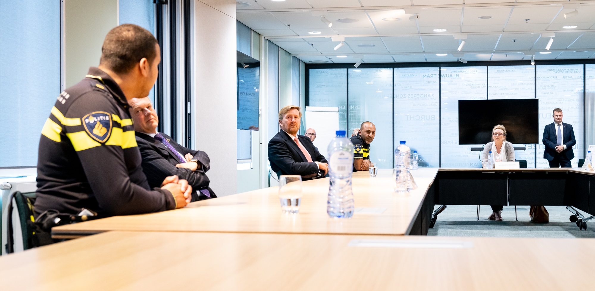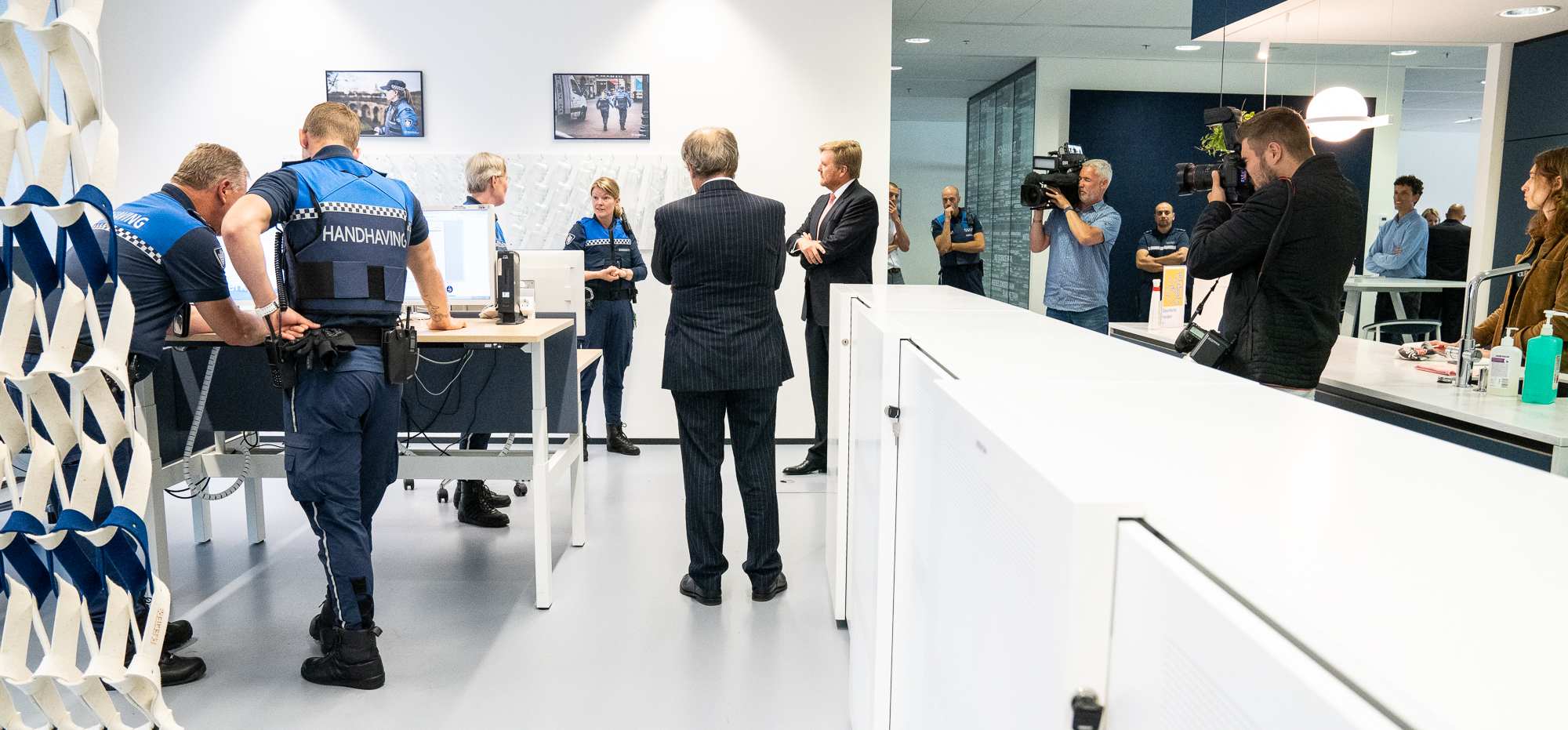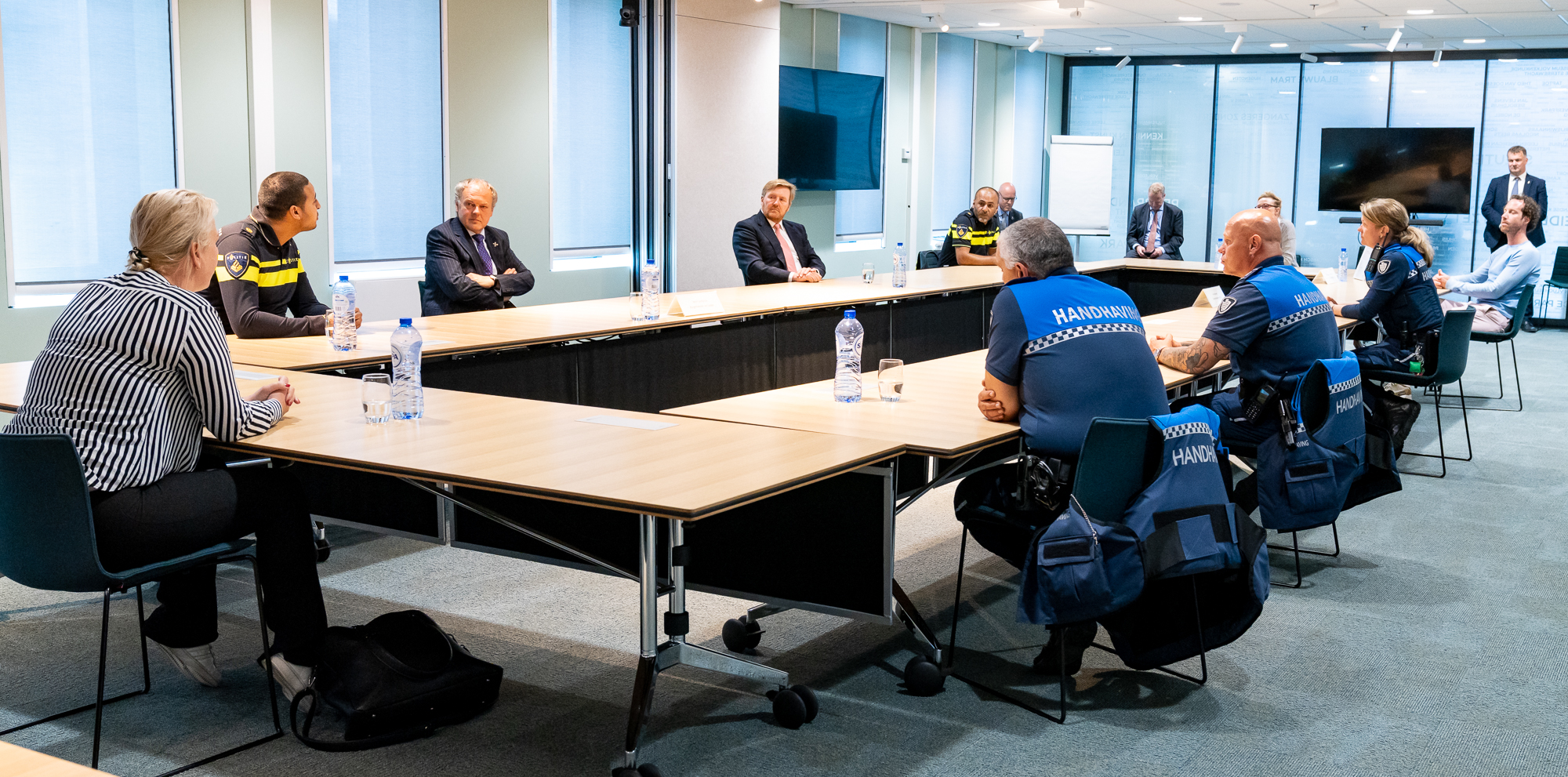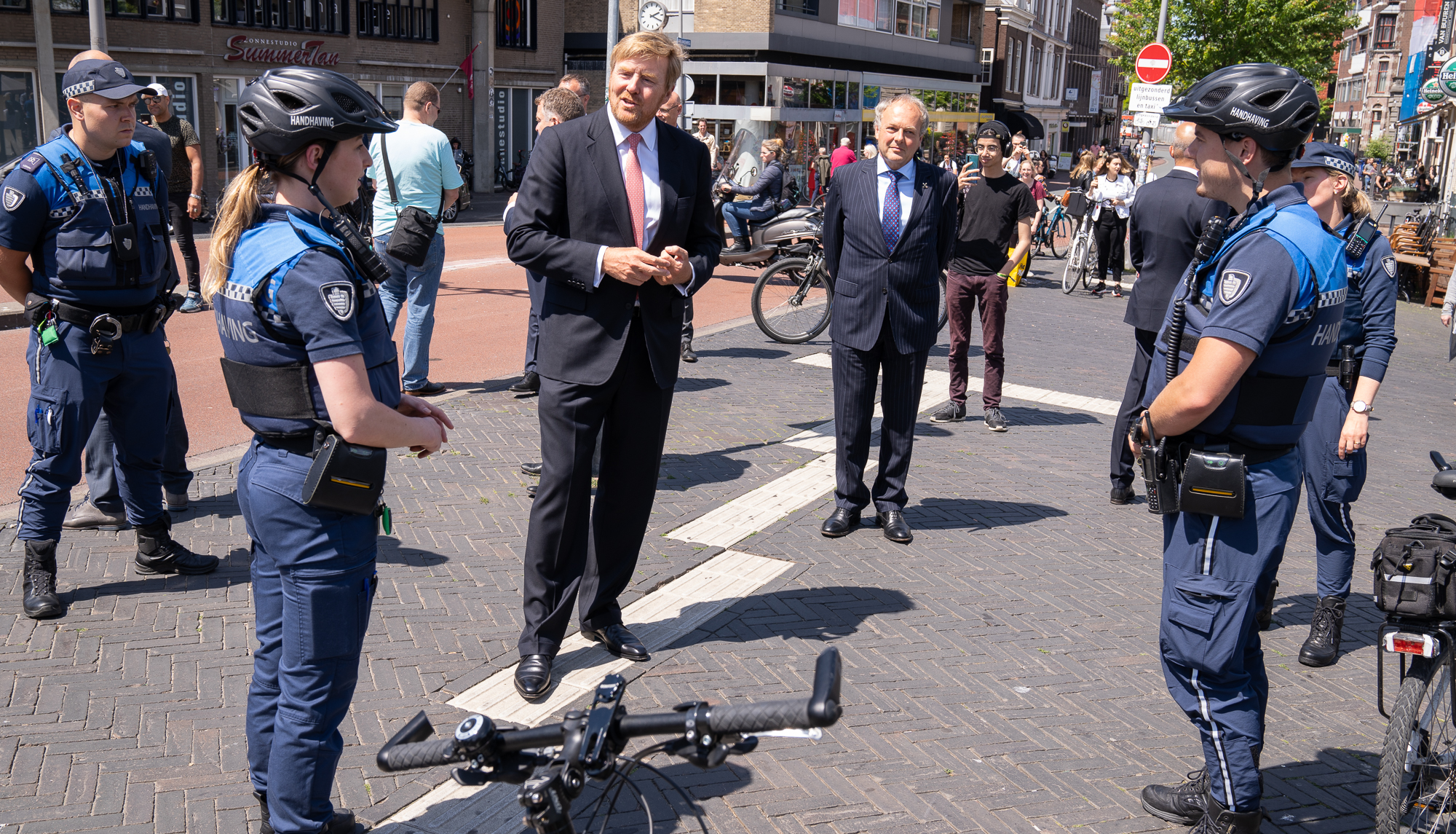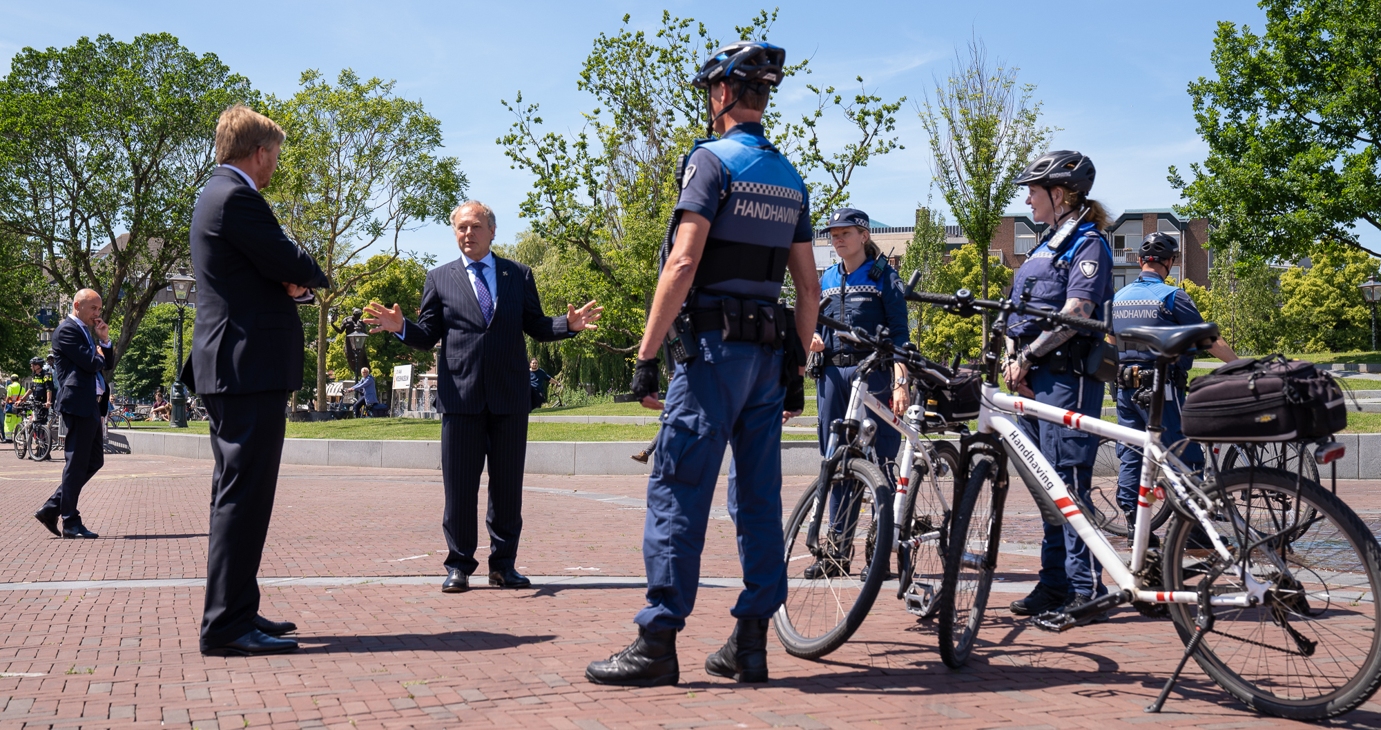 Koning Willem-Alexander was vandaag op bezoek bij de Leidse handhavers. In het nieuwe stadskantoor sprak hij met de boa’s over hun werkzaamheden en hoe die de afgelopen tijd zijn veranderd. Ook werd er gesproken over de samenwerking met de politie en ondernemers in de stad. “We hebben best een moeilijk vak en het is heel bijzonder dat de koning nu bij ons op bezoek was”, vertelt teammanager Ine Koevoet van de afdeling Handhaving.