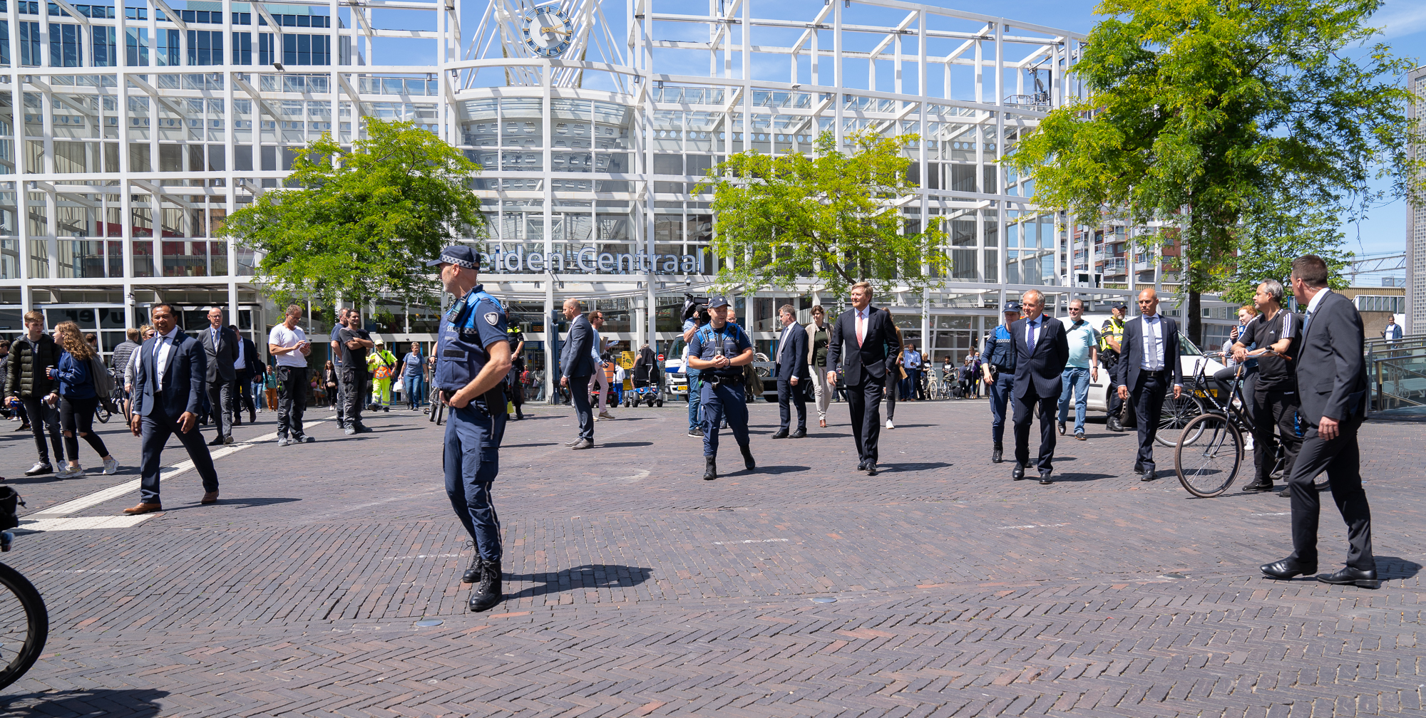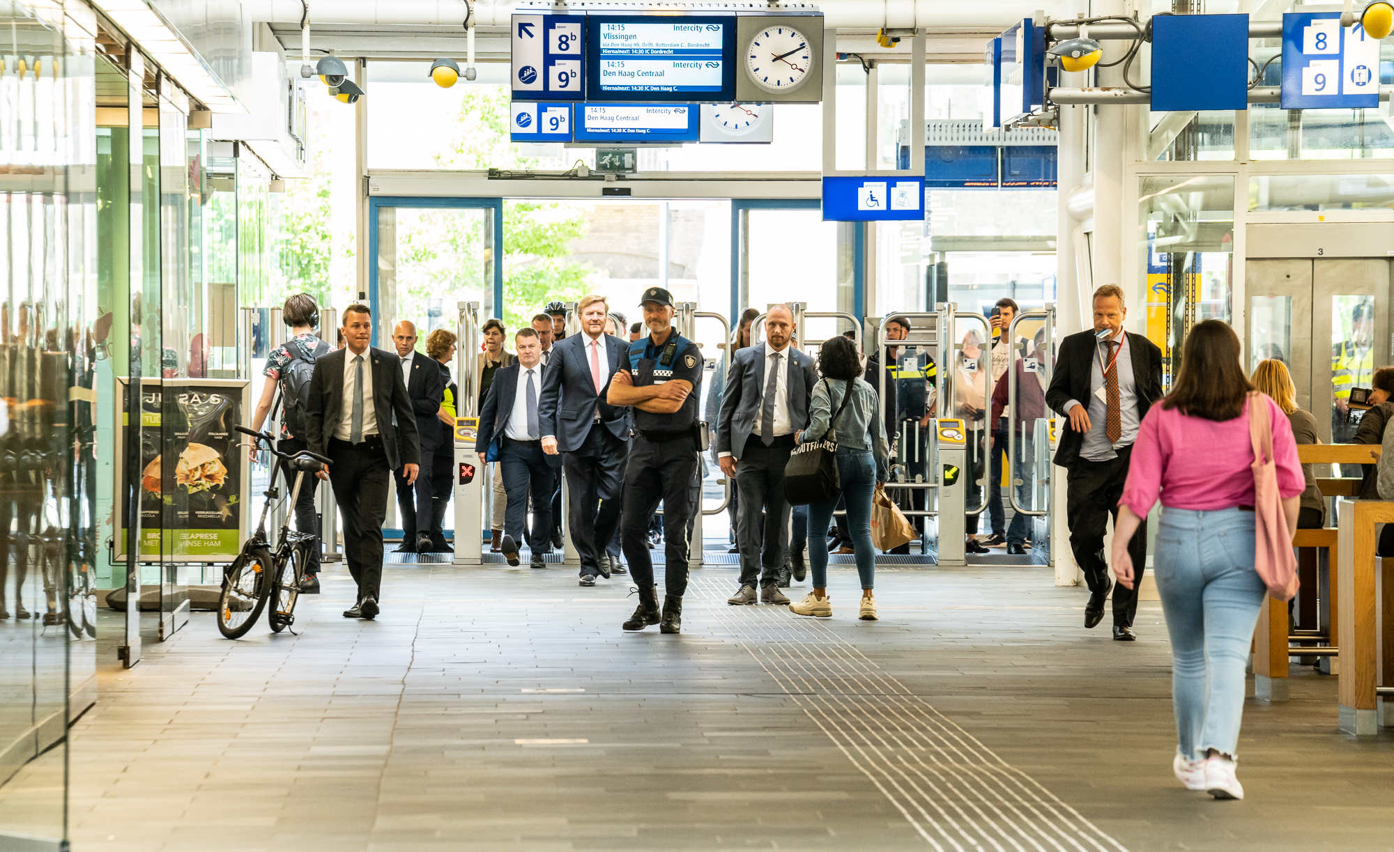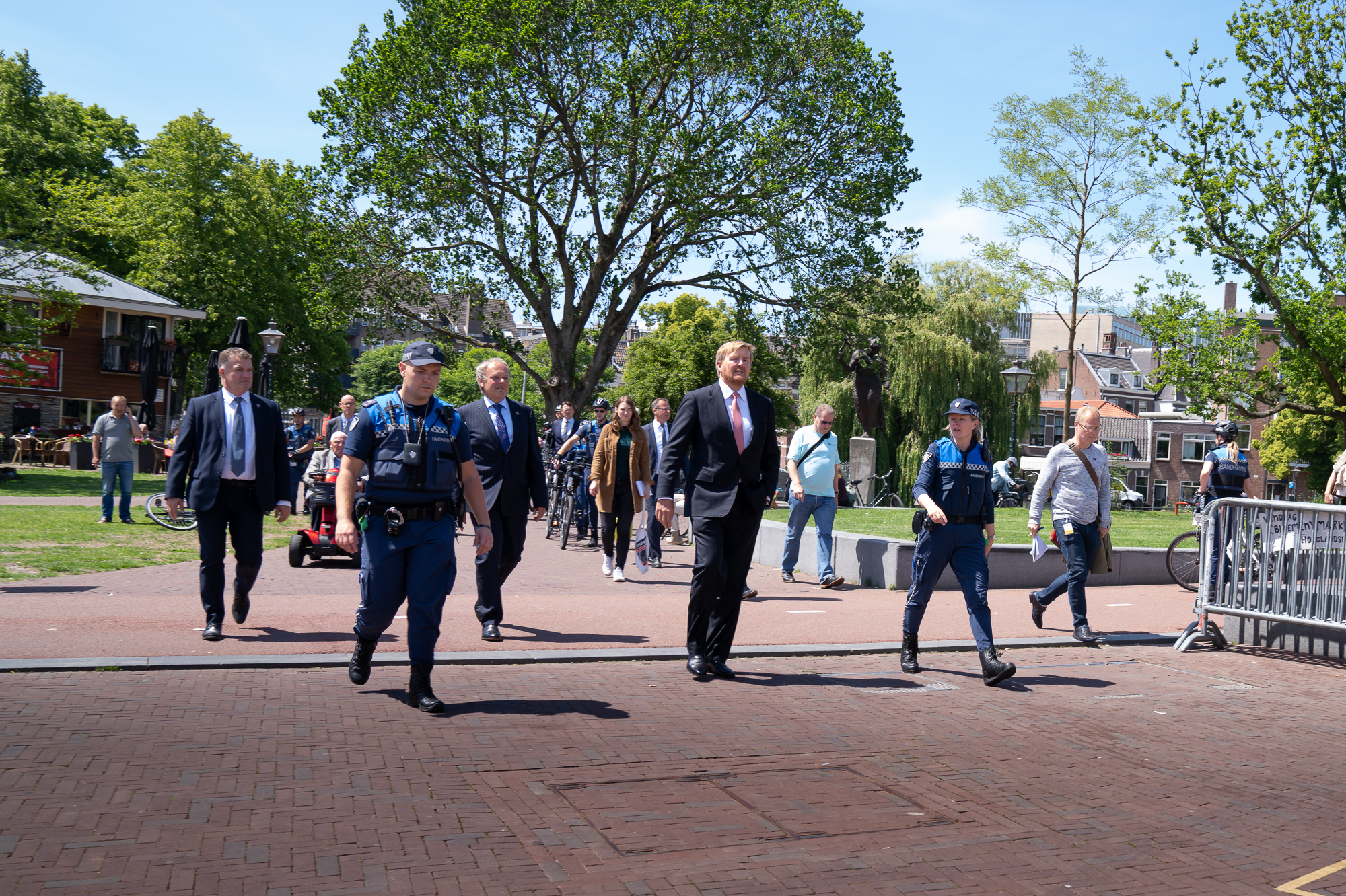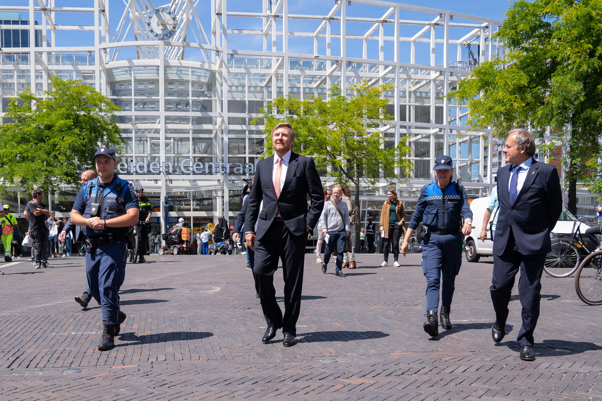 Het gaat veel over de rol van boa’s in Leiden en de samenwerking met onder andere de politie en ondernemers in de stad, die de koning ook met eigen ogen wil bekijken. Via het station vertrekt het gezelschap aan het begin van de middag naar de Lammermarkt en dat trekt veel bekijks. In de open lucht worden de laatste gesprekken met boa’s en de burgemeester gevoerd, waarna de koning de stad – waar hij ooit zelf woonde en studeerde – weer verlaat.
