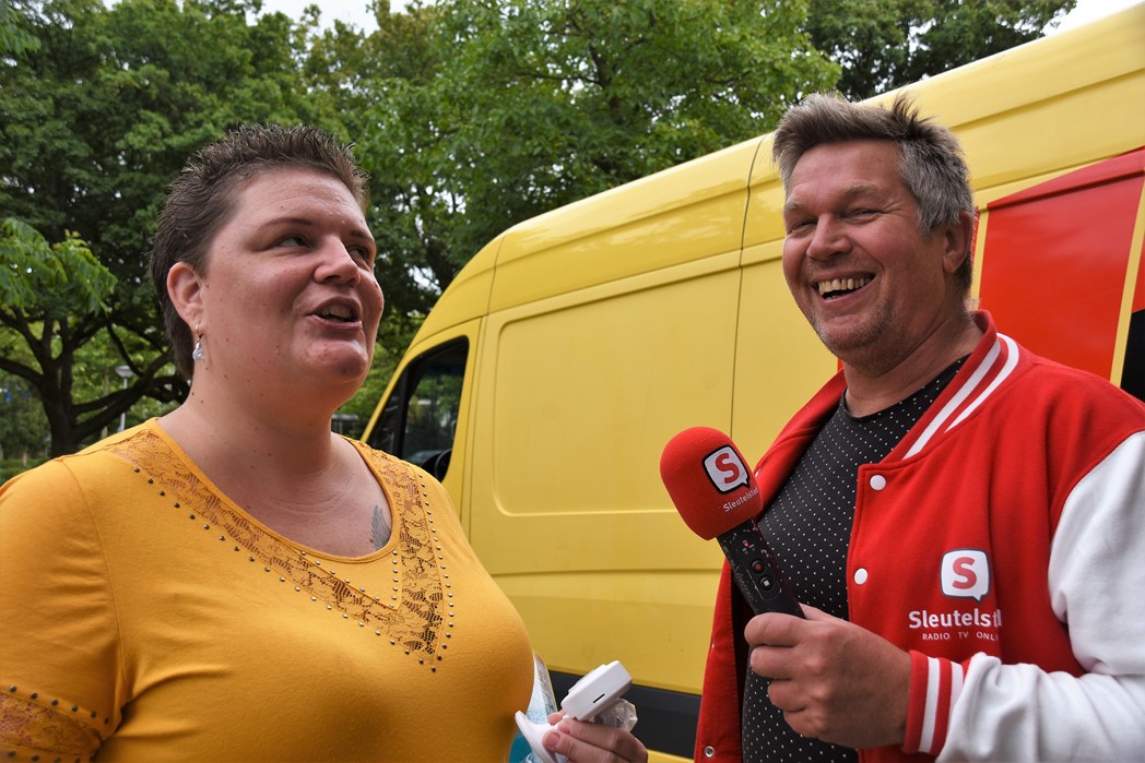 Chris de Waard in gesprek met Mirjam Ravensbergen bij de nieuwe ‘buurtsuper’ in de Van Riebeeckhof.