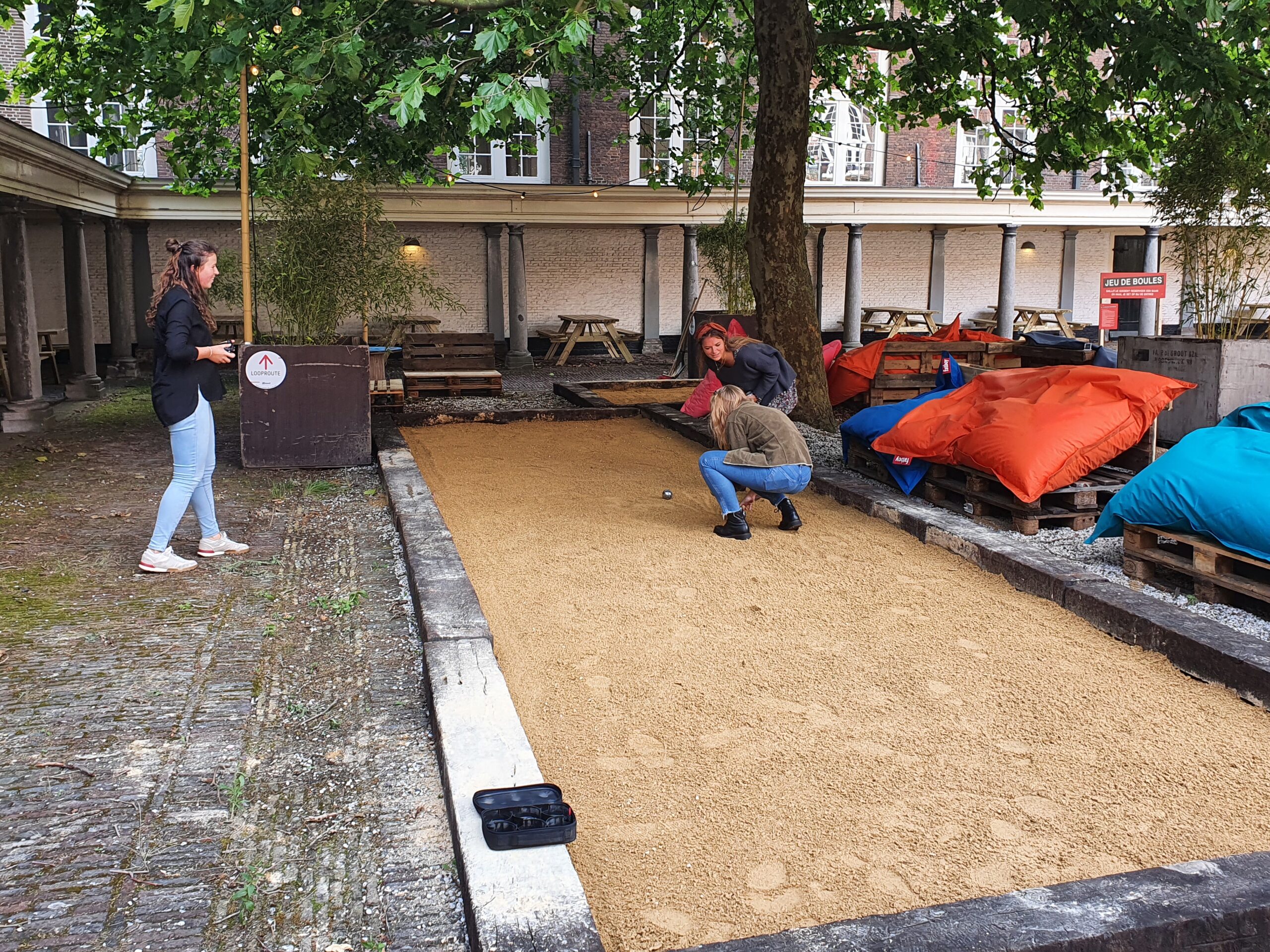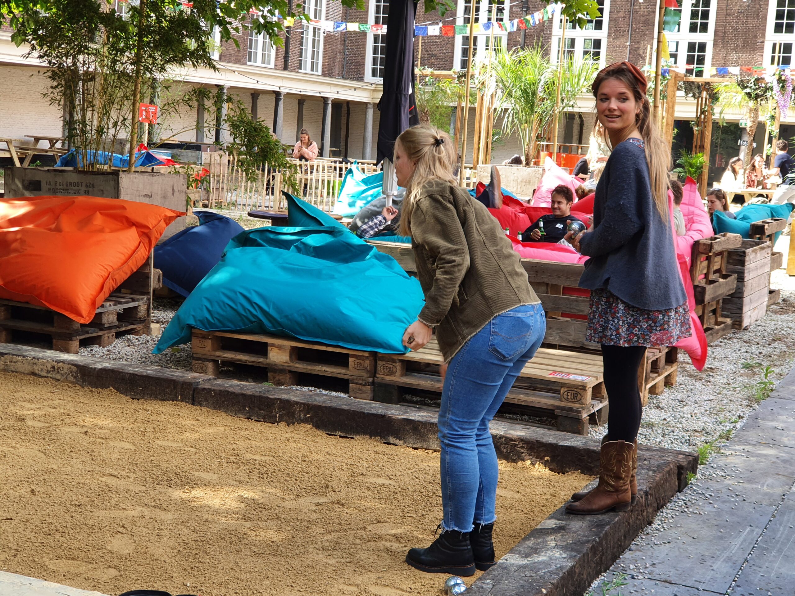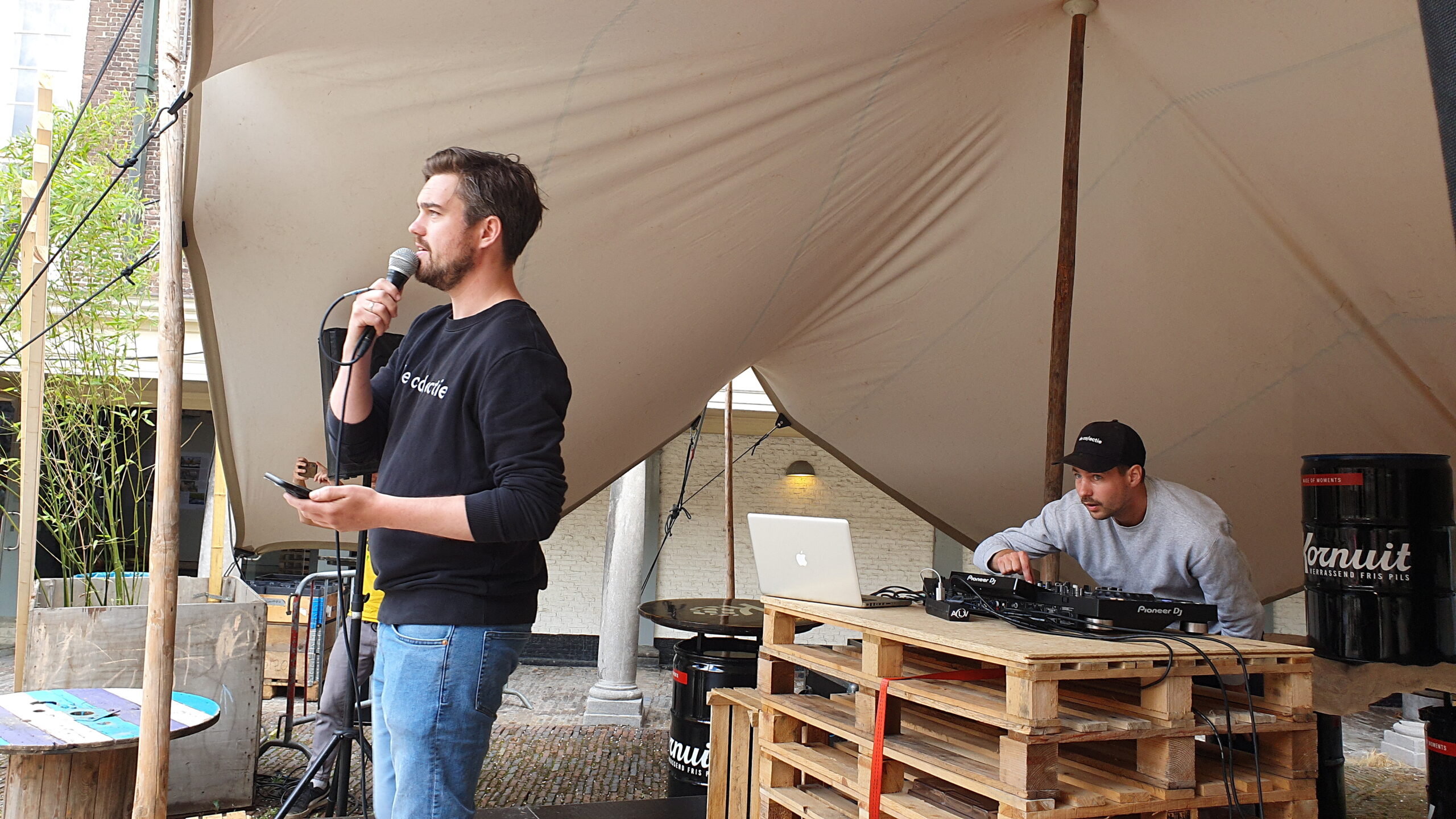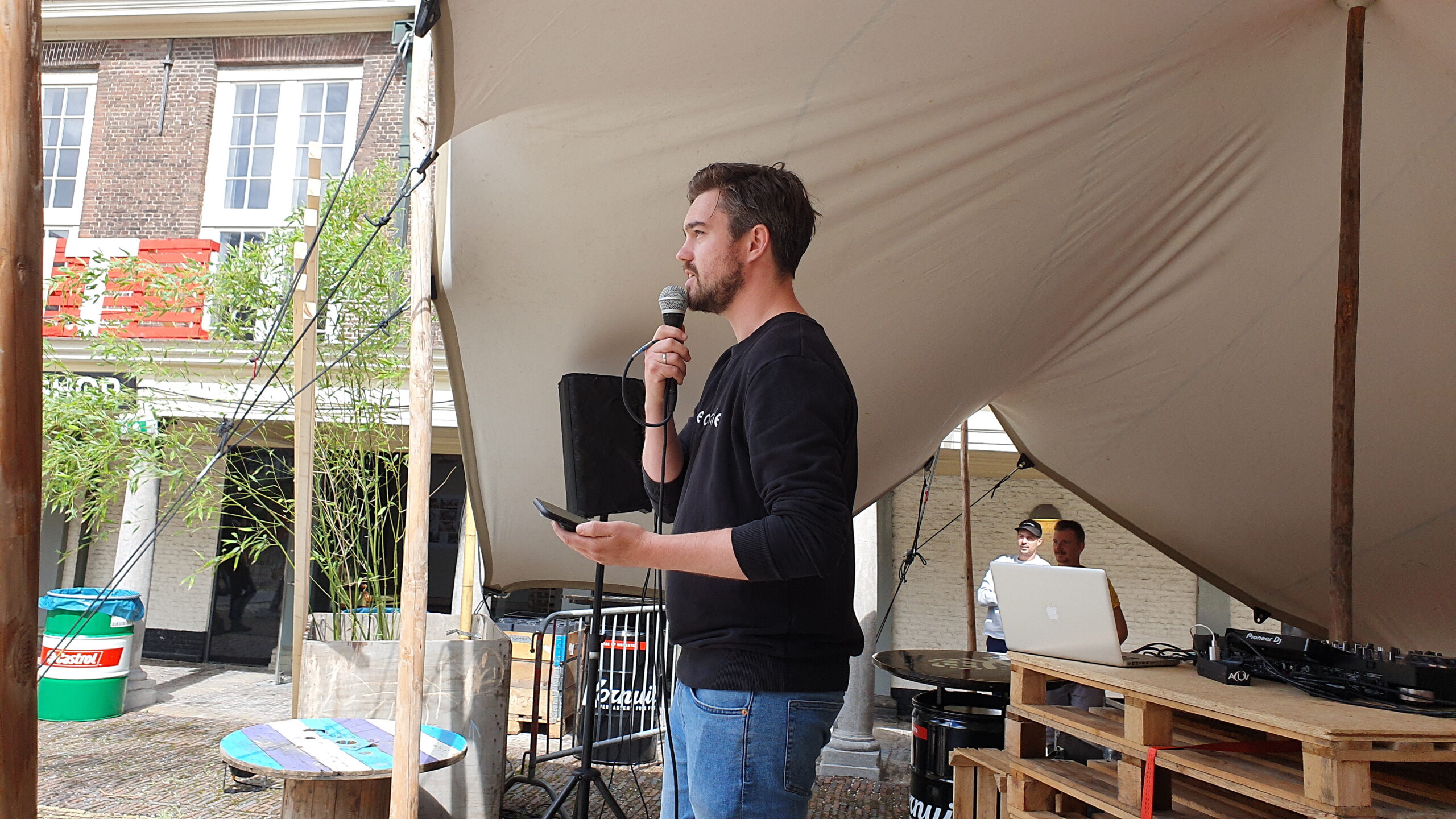 In de stralende zon opende De Buurt 1.5 vrijdagmiddag op het binnenterrein van het Pesthuis in Leiden. De Buurt was vier jaar geleden een zeer succesvolle pop-up hotspot tegenover station Leiden Centraal en beleeft nu een tweede ‘corona-proof’ editie 1.5, waarbij de anderhalve meter in acht genomen wordt.