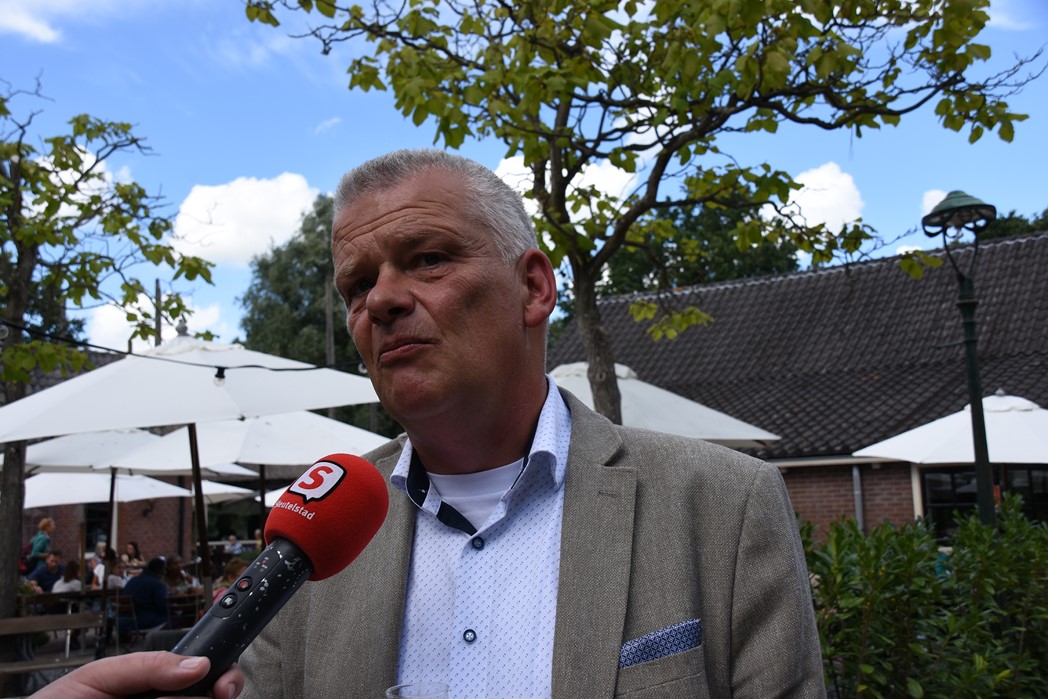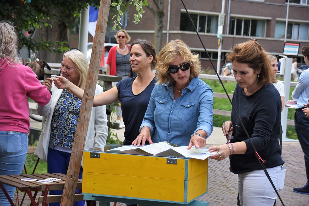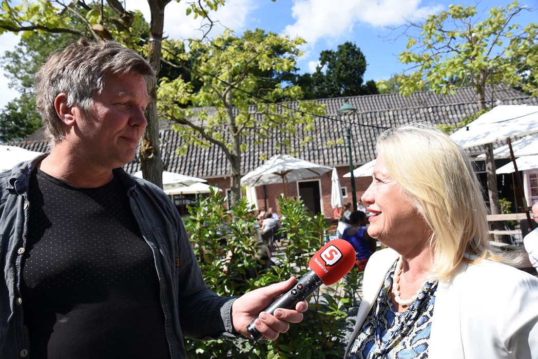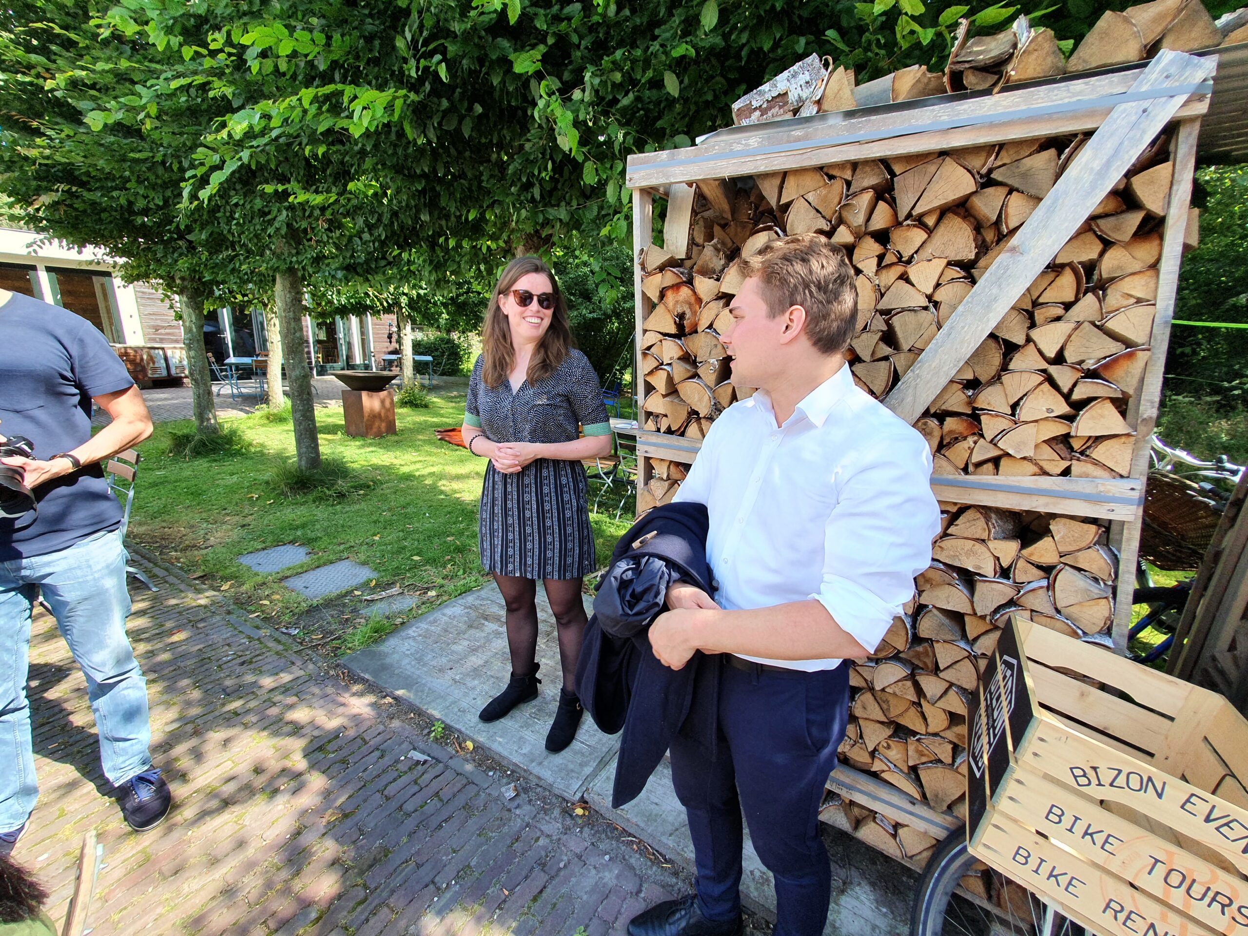 Chris de Waard in gesprek met Marjolijn van der Jagt van Dorpsmarketing Oegstgeest en de Leiderdorpse wethouder Daan Binnendijk.