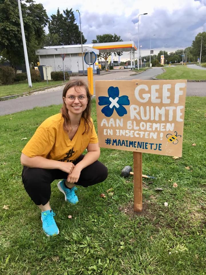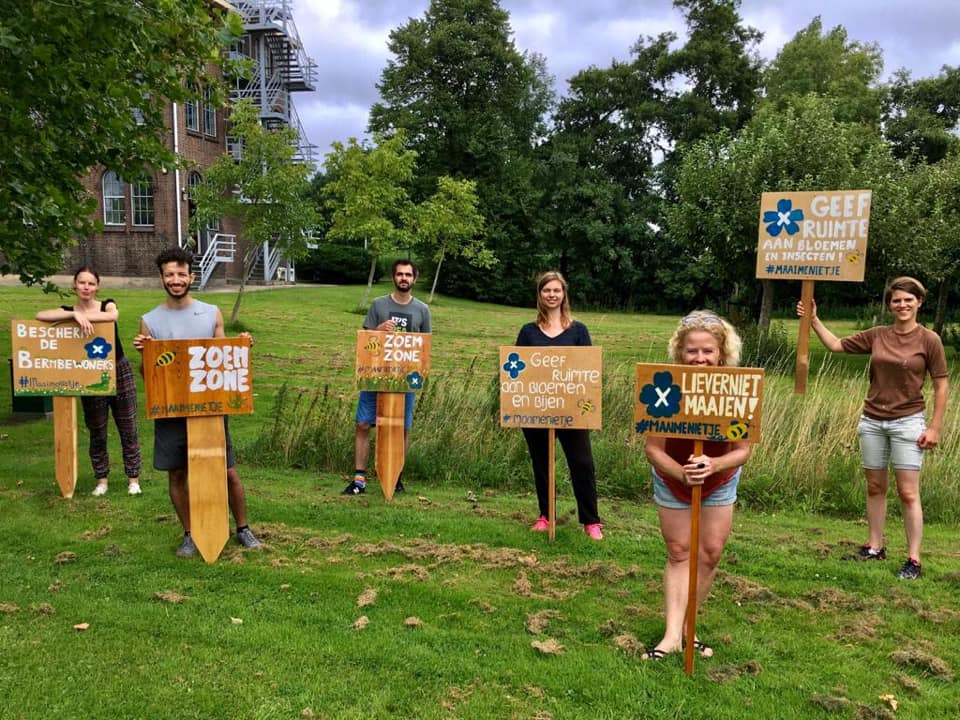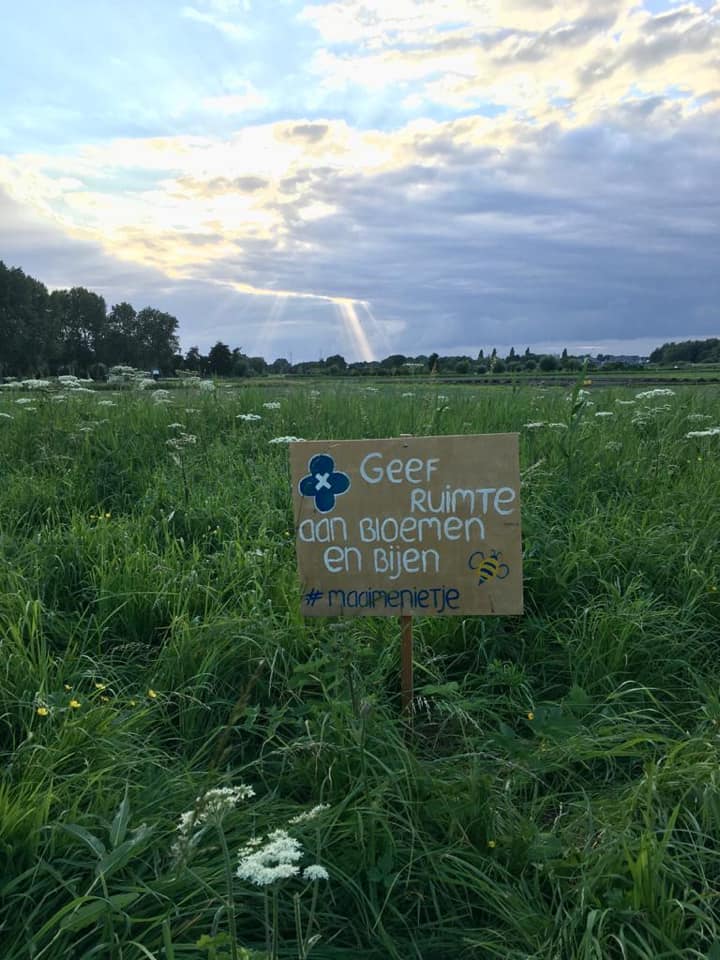 Een werkgroep van de Partij voor de Dieren in Leiden is de afgelopen weken aan de slag gegaan met de toolkit ‘maai-me-nietje‘ van de Vereniging Natuurmonumenten. Het gaat om #maaimenietje borden die iedereen kan neerzetten in bloemrijke bermen of andere plekken waar maaien (nu) niet gewenst is in het kader van de biodiversiteit.